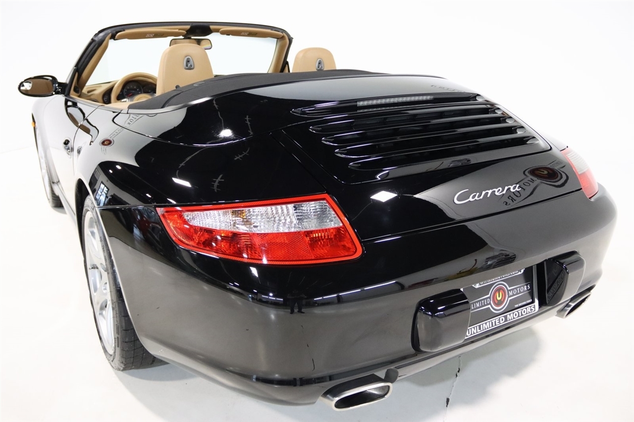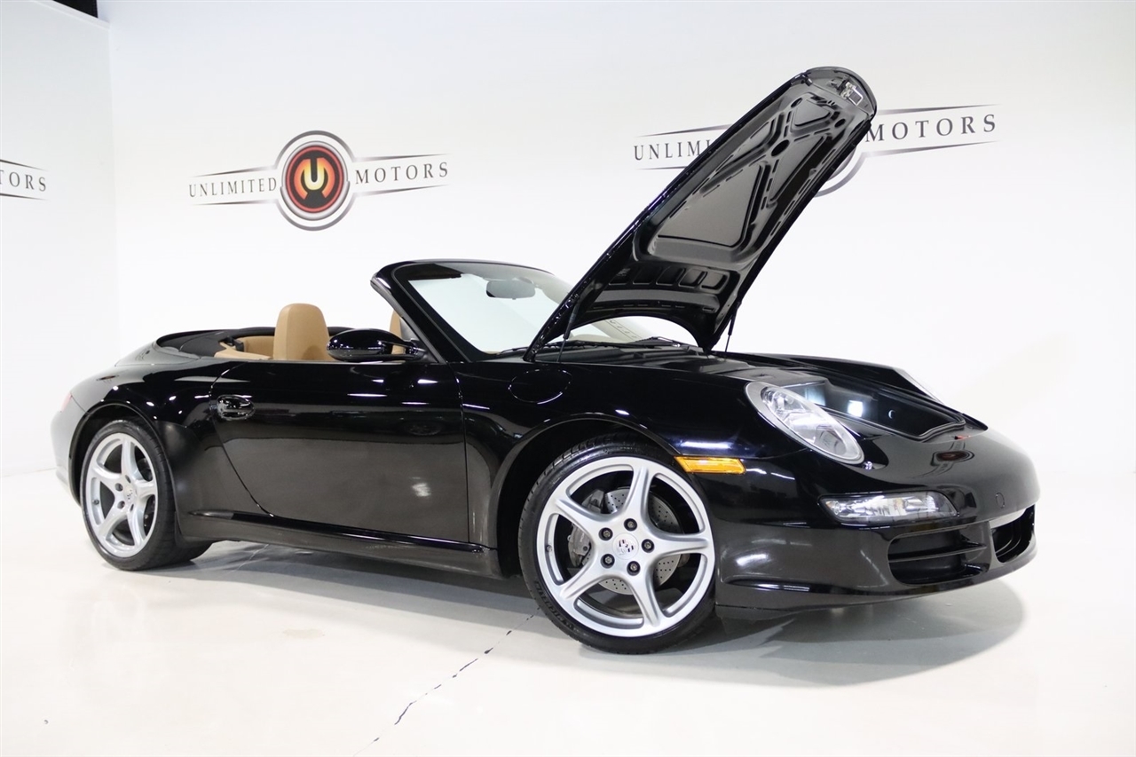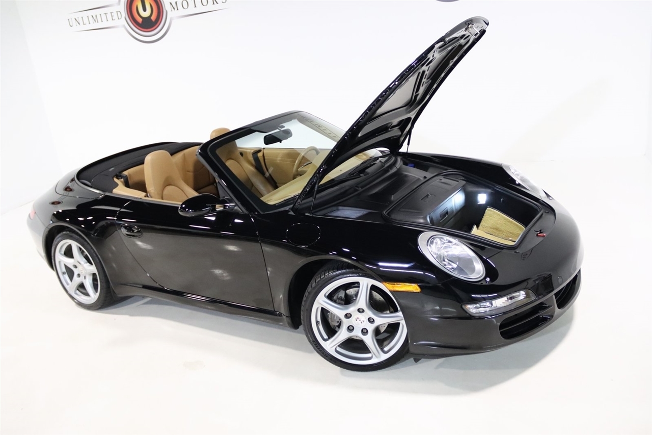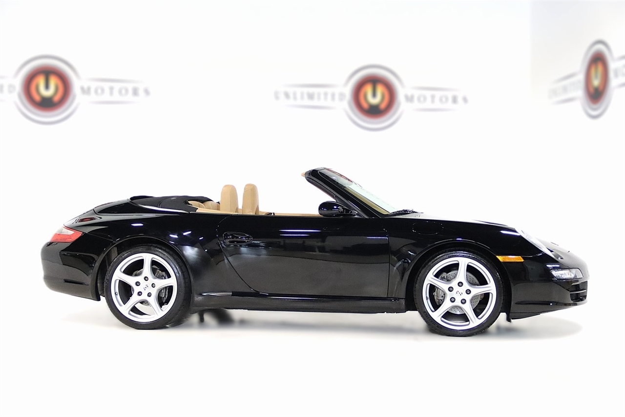 Soft Top, 18 x 8 Front & 18 x 10 Rear Carrera III Wheels, 4-Wheel Disc Brakes, 9 Speakers, ABS brakes, Air Conditioning, Alloy wheels, AM/FM radio, AM/FM Stereo w/MP3 Player, Automatic temperature control, Brake assist, Bumpers: body-color, CD player, Convertible roof lining, Convertible roof wind blocker, Delay-off headlights, Driver door bin, Driver vanity mirror, Dual front impact airbags, Dual front side impact airbags, Electronic Stability Control, Four wheel independent suspension, Front anti-roll bar, Front Bucket Seats, Front Center Armrest, Front fog lights, Front reading lights, Garage door transmitter: HomeLink, Glass rear window, Heated door mirrors, Illuminated entry, Integrated roll-over protection, Leather Seat Trim, Leather Shift Knob, Leather steering wheel, Low tire pressure warning, Occupant sensing airbag, Outside temperature display, Overhead airbag, Passenger cancellable airbag, Passenger door bin, Passenger vanity mirror, Power convertible roof, Power door mirrors, Power driver seat, Power passenger seat, Power steering, Power windows, Rain sensing wipers, Rear anti-roll bar, Rear fog lights, Rear window defroster, Remote keyless entry, Security system, Speed control, Speed-sensing steering, Split folding rear seat, Spoiler, Tachometer, Telescoping steering wheel, Tilt steering wheel, Traction control, Trip computer, Variably intermittent wipers. Clean CARFAX. 18/26 City/Highway MPG2007 Black Porsche 2D Cabriolet 911 Carrera 6-Speed Manual with Overdrive 3.6L H6 SMPI DOHC 325 hpVisit our website www.iumotors.com to view 100s of newer vehicles, more pictures and info, or to apply for financing. Rates are incredibly low for approved credit. We offer extended warranties, protection packages, and insurance. We assure you the best experience at any of our 4 locations and unbeatable prices and quality. At Unlimited Motors we believe in MARKET VALUE PRICING. We use real-time Internet price comparisons to constantly adjust prices to provide ALL BUYERS The BEST PRICE possible. We do not mark them up, to mark them down! Our entire team is committed to helping you buy a car the way we would want to buy a car! We utilize state-of-the-art technology to constantly monitor pricing trends to offer our shoppers the best competitive pricing, value, and experience. We sell and service all makes and models of Pre-owned / Used Vehicles Used Cars, Used Trucks, Used Sport Utility, Lamborghini, Ferrari, Bentley, Rolls Royce, McLaren, Maserati, Ford, Chevrolet/Chevy, Honda, Toyota, Porsche, Land Rover, Jaguar, INFINITI, Audi, Nissan, Mazda, Hyundai, Chrysler, Jeep, Dodge, Ram, SRT, Mitsubishi, Lexus, Kia, Volkswagen, Mini, BMW, Mercedes, Fiat, Volvo, GMC, Cadillac, Lincoln as well as other brands. Proudly serving these areas of Indianapolis, Fishers, Carmel, Noblesville, Greenwood, Avon, Plainfield, Zionsville, & Brownsburg, Indiana, Midwest. We also serve the entire nation with our seamless and easy online purchasing process, and offer shipping nationwide.Advertised prices DO NOT include Sales Tax, Dealer Fees, Title Processing Charges, and Dealer Pre-installed Products.