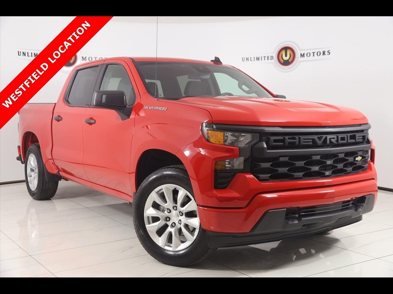 2023 Chevrolet Silverado 1500 Red Hot Now Available at Unlimited Motors Westfield! With over 20 years in business and 4 Indiana locations, Unlimited Motors is known for offering high-quality, hand-selected vehicles at excellent pricing with outstanding customer service. Our inventory of over 1,000 vehicles includes major makes such as Ford, Chevrolet, Ram, Jeep, GMC, Dodge, BMW, Mercedes-Benz, Audi, Cadillac, Porsche, Maserati, Ferrari, and Lamborghini, giving customers one of the largest selections of quality vehicles in the Midwest. Vehicle Highlights:Back Up Camera, Bluetooth, Winch, Touch Screen, Apple CarPlay/Android Auto, Silverado 1500 Custom, 4D Crew Cab, 2.7L Turbo, 8-Speed Automatic, 4WD, Red Hot, Black Cloth.CARFAX One-Owner. Clean CARFAX. Priced below KBB Fair Purchase Price!Visit www.iumotors.com to explore our full inventory of over 1,000 hand-picked vehicles across our Westfield, Fishers, Noblesville, and Elwood locations. At Unlimited Motors, we offer a premium car-buying experience with competitive financing through local credit unions and national lenders, top trade-in values, full auto repair and maintenance services for customer vehicles, and nationwide shipping to all 50 states. Youll also find many of the most searched and in-demand models, including Ford F-150, Chevrolet Silverado, Ram 1500, Jeep Wrangler, Jeep Grand Cherokee, Chevrolet Tahoe, Chevrolet Suburban, GMC Yukon, GMC Sierra, Dodge Charger, Dodge Durango, Ford Explorer, BMW X5, BMW X3, BMW 3 Series, Mercedes-Benz GLE, Mercedes-Benz GLC, Cadillac Escalade, Audi Q5, Audi Q7, Porsche Cayenne, Porsche Macan, Maserati Ghibli, and more. Whether youre visiting from Westfield, Indianapolis, Carmel, Fishers, Noblesville, Zionsville, Greenwood, Lawrence, Brownsburg, Avon, Plainfield, Lebanon, Anderson, Muncie, Kokomo, Lafayette, Bloomington, Columbus, or anywhere across Central and Northern Indiana, we are here to help you find the perfect vehicle with exceptional service and unbeatable value. Call us today at 317-896-4488 1470 W Tournament Trl, Westfield, IN 46074. Disclaimer: Advertised prices DO NOT include Sales Tax, Dealer Fees, Title Processing Charges, and Dealer Pre-installed Products.