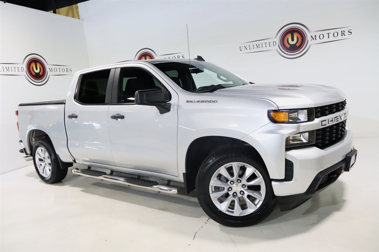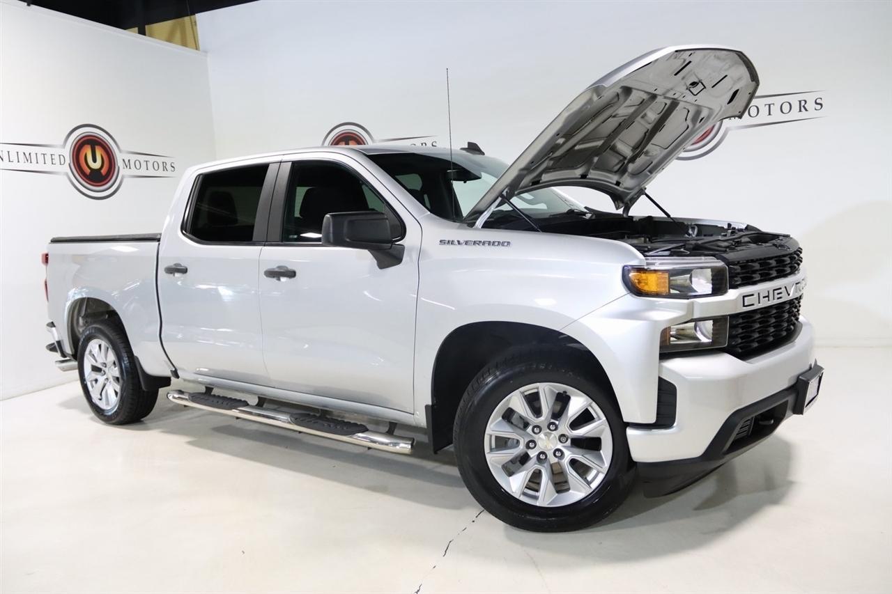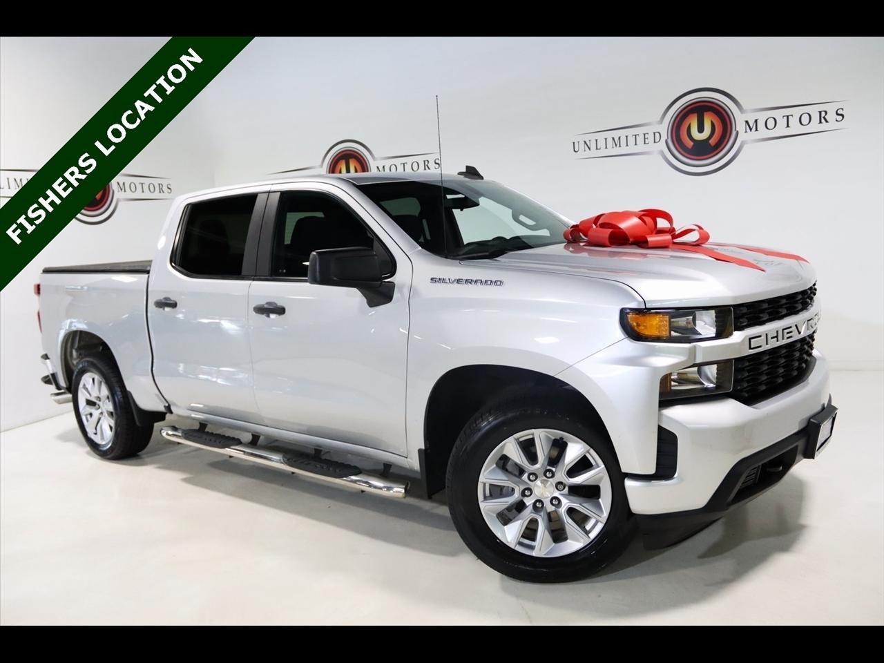 Bluetooth, Back Up Camera, Towing, Touch Screen, 170 Amps Alternator, 3.42 Rear Axle Ratio, 3.5 Diagonal Monochromatic Display, 4-Wheel Disc Brakes, 4G LTE Wi-Fi Hot Spot Capable, 6 Speakers, ABS brakes, Air Conditioning, Alloy wheels, Apple CarPlay/Android Auto, Bluetooth For Phone, Body Color Grille, Brake assist, Bumpers: body-color, Chevrolet Connected Access Capable, Cloth Seat Trim, Color-Keyed Carpeting Floor Covering, Compass, Custom Convenience Package, Custom Value Package, Deep-Tinted Glass, Delay-off headlights, Driver door bin, Driver vanity mirror, Dual front impact airbags, Dual front side impact airbags, Electric Rear-Window Defogger, Electronic Stability Control, Exterior Parking Camera Rear, EZ Lift Power Lock & Release Tailgate, Front 40/20/40 Split-Bench Seat, Front anti-roll bar, Front Black Bowtie Emblem (LPO), Front Center Armrest, Front Frame-Mounted Black Recovery Hooks, Front reading lights, Front Rubberized Vinyl Floor Mats, Front wheel independent suspension, Fully automatic headlights, Heated door mirrors, Heavy Duty Suspension, Heavy-Duty Rear Locking Differential, Hitch Guidance, Illuminated entry, Infotainment Package, LED Cargo Area Lighting, Locking Tailgate, Low tire pressure warning, Manual Tilt-Wheel Steering Column, Occupant sensing airbag, OnStar & Chevrolet Connected Services Capable, Outside temperature display, Overhead airbag, Overhead console, Panic alarm, Passenger door bin, Passenger vanity mirror, Polished Exhaust Tip, Power Door Locks, Power door mirrors, Power Front Windows w/Driver Express Up/Down, Power Front Windows w/Passenger Express Down, Power Rear Windows w/Express Down, Power steering, Power windows, Preferred Equipment Group 1CX, Radio data system, Radio: Chevrolet Infotainment 3 System, Rear 60/40 Folding Bench Seat (Folds Up), Rear reading lights, Rear Rubberized-Vinyl Floor Mats, Rear step bumper, Remote Keyless Entry, Remote keyless entry, Remote Vehicle Starter System, SiriusXM Radio, Speed control, Speed-sensing steering, Split folding rear seat, Steering Wheel Mounted Electronic Cruise Control, Tachometer, Theft Deterrent System (Unauthorized Entry), Tilt steering wheel, Traction control, Trailering Package, Trip computer, Variably intermittent wipers, Voltmeter, Wheels: 20 x 9 Bright Silver Painted Aluminum. Clean CARFAX.2020 Silver Ice Metallic Chevrolet 4D Crew Cab Silverado 1500 Custom RWD 6-Speed Automatic Electronic with Overdrive EcoTec3 4.3L V6Visit our website www.iumotors.com to view 100s of newer vehicles, more pictures and info, or to apply for financing. Rates are incredibly low for approved credit. We offer extended warranties, protection packages, and insurance. We assure you the best experience at any of our 4 locations and unbeatable prices and quality. At Unlimited Motors we believe in MARKET VALUE PRICING. We use real-time Internet price comparisons to constantly adjust prices to provide ALL BUYERS The BEST PRICE possible. We do not mark them up, to mark them down! Our entire team is committed to helping you buy a car the way we would want to buy a car! We utilize state-of-the-art technology to constantly monitor pricing trends to offer our shoppers the best competitive pricing, value, and experience. We sell and service all makes and models of Pre-owned / Used Vehicles Used Cars, Used Trucks, Used Sport Utility, Lamborghini, Ferrari, Bentley, Rolls Royce, McLaren, Maserati, Ford, Chevrolet/Chevy, Honda, Toyota, Porsche, Land Rover, Jaguar, INFINITI, Audi, Nissan, Mazda, Hyundai, Chrysler, Jeep, Dodge, Ram, SRT, Mitsubishi, Lexus, Kia, Volkswagen, Mini, BMW, Mercedes, Fiat, Volvo, GMC, Cadillac, Lincoln as well as other brands. Proudly serving these areas of Indianapolis, Fishers, Carmel, Noblesville, Greenwood, Avon, Plainfield, Zionsville, & Brownsburg, Indiana, Midwest. We also serve the entire nation with our seamless and easy online purchasing process, and offer shipping nationwide.Advertised prices