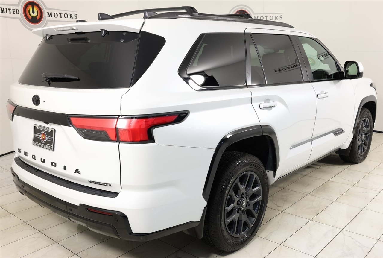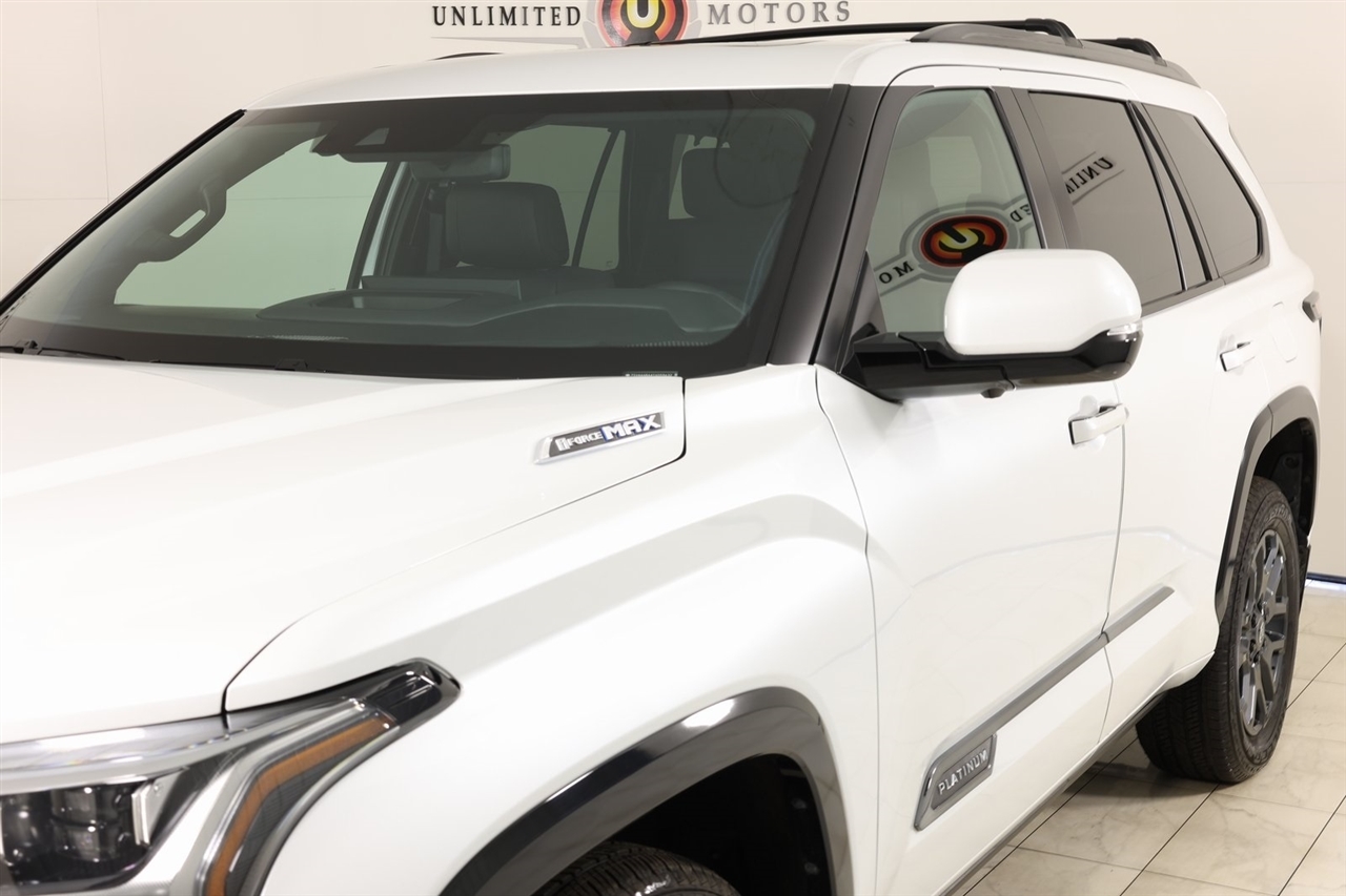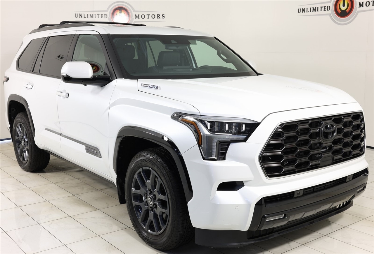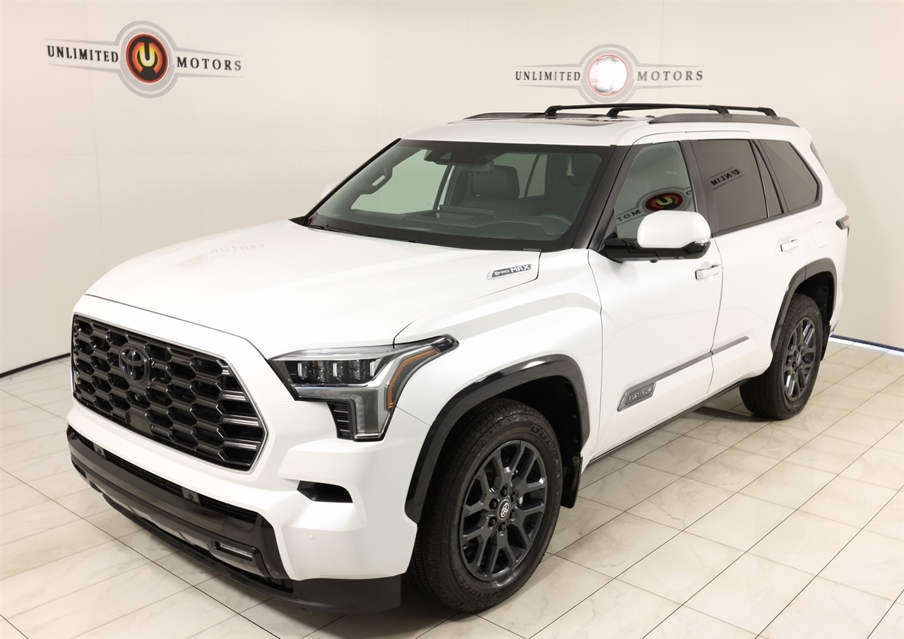 2025 Toyota Sequoia White Now Available at Unlimited Motors Elwood! With over 20 years in business and 4 Indiana locations, Unlimited Motors is known for offering high-quality, hand-selected vehicles at excellent pricing with outstanding customer service. Our inventory of over 1,000 vehicles includes major makes such as Ford, Chevrolet, Ram, Jeep, GMC, Dodge, BMW, Mercedes-Benz, Audi, Cadillac, Porsche, Maserati, Ferrari, and Lamborghini, giving customers one of the largest selections of quality vehicles in the Midwest. Vehicle Highlights:Navigation, Back Up Camera, Sunroof, Panoramic Sunroof, Bluetooth, Towing, Touch Screen, Heated Seats, Heated Steering Wheel, Heated Rear Seats, Ventilated Seats, Power Lift Gate, Apple Car Play, Android Audio, Blind Spot, Clean Carfax, Heads Up Display, Low Miles, Lane Assist, V6 Hybrid, 10-Speed Automatic, 4WD, ABS brakes, Active Cruise Control, Alloy wheels, Compass, Electronic Stability Control, Front dual zone A/C, Heated & Ventilated Front Seats, Heated door mirrors, Heated front seats, Heated rear seats, Illuminated entry, Low tire pressure warning, Power Liftgate, Power moonroof, Premium Leather Seat Trim, Remote keyless entry, Traction control.CARFAX One-Owner.Visit www.iumotors.com to explore our full inventory of over 1,000 hand-picked vehicles across our Westfield, Fishers, Noblesville, and Elwood locations. At Unlimited Motors, we offer a premium car-buying experience with competitive financing through local credit unions and national lenders, top trade-in values, full auto repair and maintenance services for customer vehicles, and nationwide shipping to all 50 states. Youll also find many of the most searched and in-demand models, including Ford F-150, Chevrolet Silverado, Ram 1500, Jeep Wrangler, Jeep Grand Cherokee, Chevrolet Tahoe, Chevrolet Suburban, GMC Yukon, GMC Sierra, Dodge Charger, Dodge Durango, Ford Explorer, BMW X5, BMW X3, BMW 3 Series, Mercedes-Benz GLE, Mercedes-Benz GLC, Cadillac Escalade, Audi Q5, Audi Q7, Porsche Cayenne, Porsche Macan, Maserati Ghibli, and more. Whether youre visiting from Westfield, Indianapolis, Carmel, Fishers, Noblesville, Zionsville, Greenwood, Lawrence, Brownsburg, Avon, Plainfield, Lebanon, Anderson, Muncie, Kokomo, Lafayette, Bloomington, Columbus, or anywhere across Central and Northern Indiana, we are here to help you find the perfect vehicle with exceptional service and unbeatable value. Call us today at 765-557-8817 10083 IN-13, Elwood, IN 46036. Disclaimer: Advertised prices DO NOT include Sales Tax, Dealer Fees, Title Processing Charges, and Dealer Pre-installed Products.