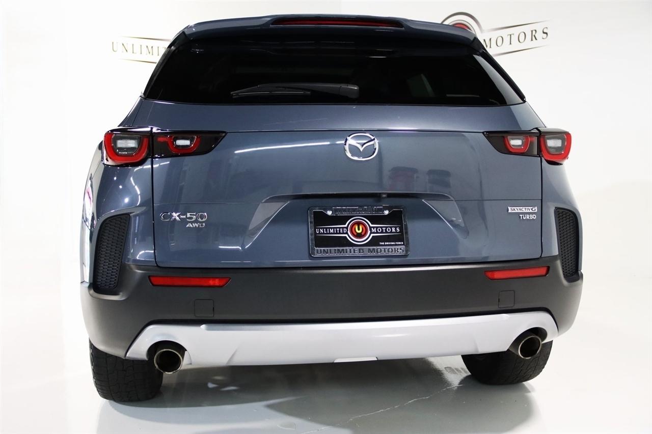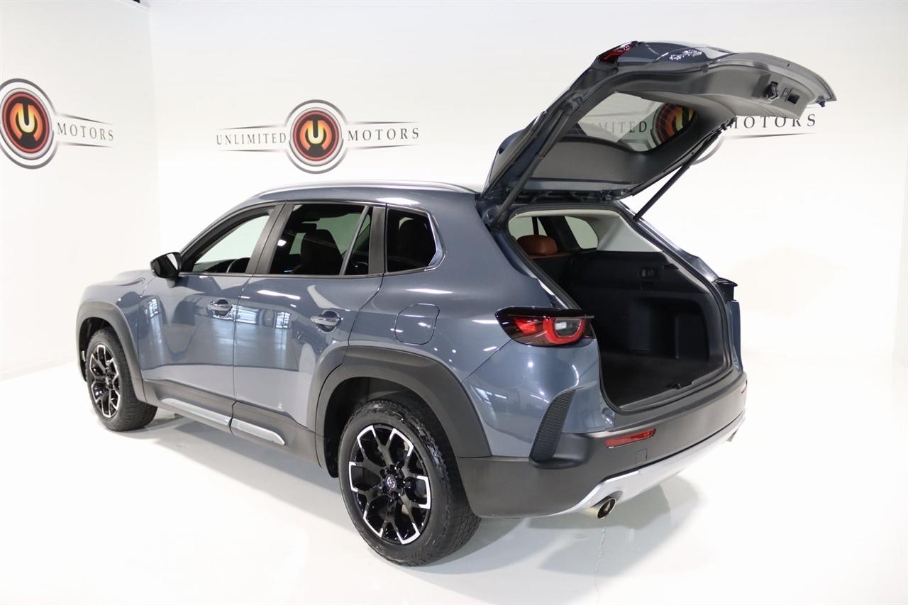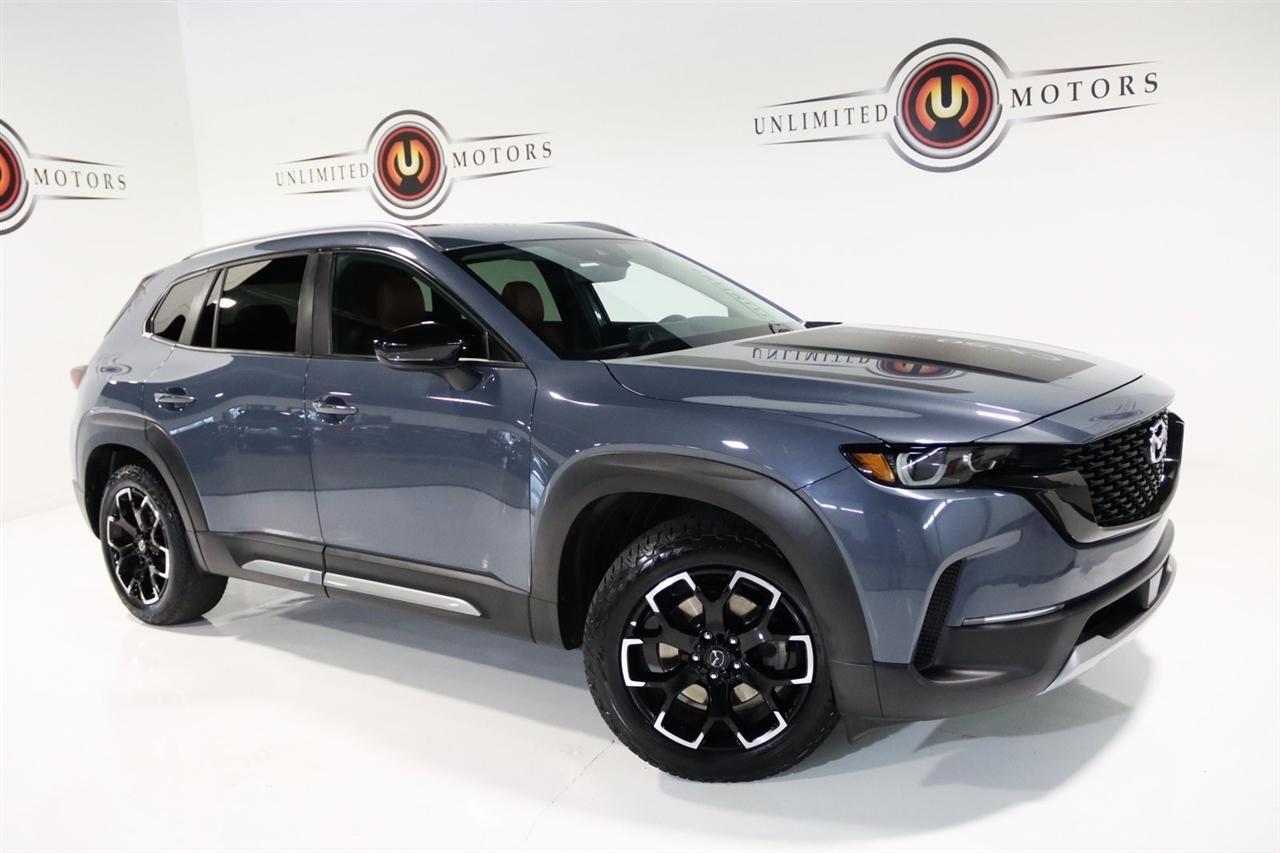 Bluetooth, Back Up Camera, Sun/Moon Roof, Touch Screen, 3.841 Axle Ratio, 4-Wheel Disc Brakes, 8 Speakers, ABS brakes, Air Conditioning, Alloy wheels, AM/FM radio, AppLink/Apple CarPlay and Android Auto, Auto High-beam Headlights, Auto-dimming Rear-View mirror, Automatic temperature control, Brake assist, Bumpers: body-color, Cargo Blocks, Cargo Net, Cargo Package, Compass, Delay-off headlights, Driver door bin, Driver vanity mirror, Dual front impact airbags, Dual front side impact airbags, Electronic Stability Control, Emergency communication system: MAZDA CONNECT, Exterior Parking Camera Rear, Front anti-roll bar, Front Bucket Seats, Front Center Armrest w/Storage, Front dual zone A/C, Front reading lights, Front wheel independent suspension, Fully automatic headlights, Garage door transmitter: HomeLink, Heated door mirrors, Heated Front Bucket Seats, Heated front seats, Illuminated entry, Knee airbag, Leather Seat Trim, Leather Shift Knob, Leather steering wheel, Low tire pressure warning, Memory seat, Occupant sensing airbag, Outside temperature display, Overhead airbag, Overhead console, Panic alarm, Passenger door bin, Passenger vanity mirror, Polymetal Gray Metallic Paint Charge, Power door mirrors, Power driver seat, Power Liftgate, Power moonroof, Power passenger seat, Power steering, Power windows, Radio data system, Radio: AM/FM/HD Audio System, Rain sensing wipers, Rear seat center armrest, Rear window defroster, Rear window wiper, Remote keyless entry, Speed control, Speed-sensing steering, Split folding rear seat, Spoiler, Steering wheel mounted audio controls, Tachometer, Telescoping steering wheel, Tilt steering wheel, Traction control, Trip computer, Turn signal indicator mirrors, Variably intermittent wipers, Wheels: 18 x 8J Aluminum Alloy. CARFAX One-Owner. Clean CARFAX. 23/29 City/Highway MPG2023 Polymetal Gray Metallic Mazda 4D Sport Utility CX-50 2.5 Turbo Meridian Edition AWD 6-Speed Automatic 2.5L I4 Turbocharged DOHC 16V LEV3-ULEV125 227hpVisit our website www.iumotors.com to view 100s of newer vehicles, more pictures and info, or to apply for financing. Rates are incredibly low for approved credit. We offer extended warranties, protection packages, and insurance. We assure you the best experience at any of our 4 locations and unbeatable prices and quality. At Unlimited Motors we believe in MARKET VALUE PRICING. We use real-time Internet price comparisons to constantly adjust prices to provide ALL BUYERS The BEST PRICE possible. We do not mark them up, to mark them down! Our entire team is committed to helping you buy a car the way we would want to buy a car! We utilize state-of-the-art technology to constantly monitor pricing trends to offer our shoppers the best competitive pricing, value, and experience. We sell and service all makes and models of Pre-owned / Used Vehicles Used Cars, Used Trucks, Used Sport Utility, Lamborghini, Ferrari, Bentley, Rolls Royce, McLaren, Maserati, Ford, Chevrolet/Chevy, Honda, Toyota, Porsche, Land Rover, Jaguar, INFINITI, Audi, Nissan, Mazda, Hyundai, Chrysler, Jeep, Dodge, Ram, SRT, Mitsubishi, Lexus, Kia, Volkswagen, Mini, BMW, Mercedes, Fiat, Volvo, GMC, Cadillac, Lincoln as well as other brands. Proudly serving these areas of Indianapolis, Fishers, Carmel, Noblesville, Greenwood, Avon, Plainfield, Zionsville, & Brownsburg, Indiana, Midwest. We also serve the entire nation with our seamless and easy online purchasing process, and offer shipping nationwide.Advertised prices DO NOT include Sales Tax, Dealer Fees, Title Processing Charges, and Dealer Pre-installed Products.