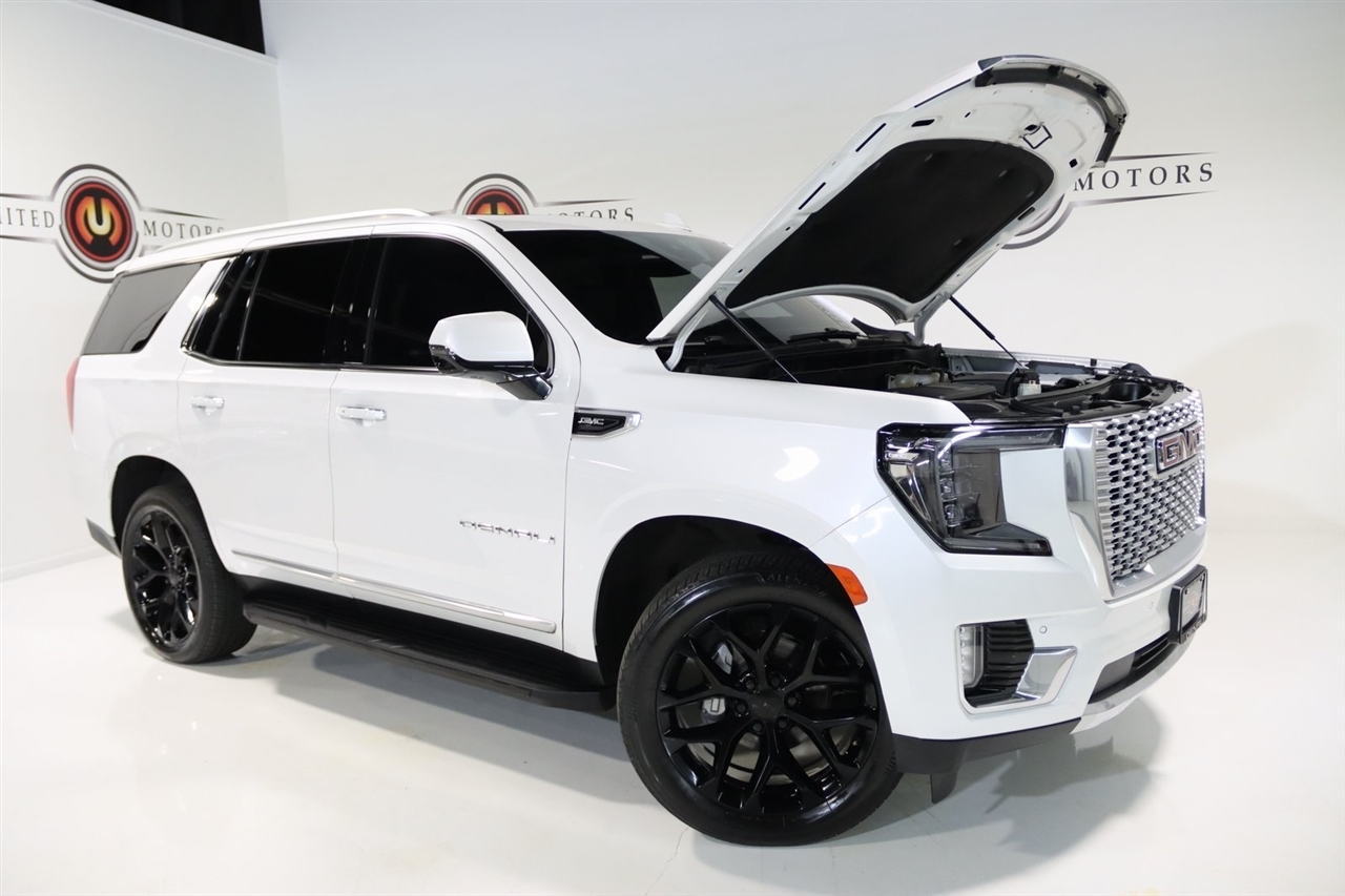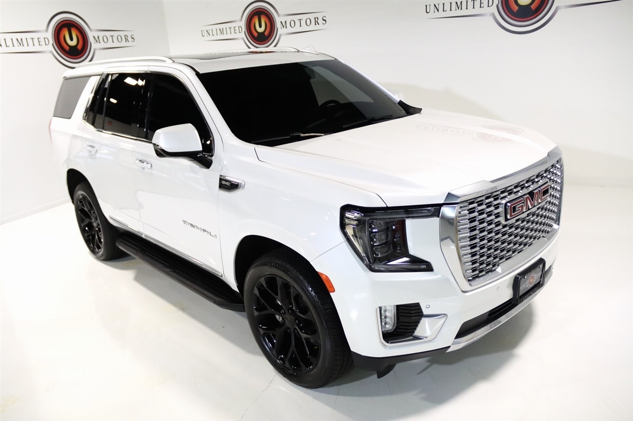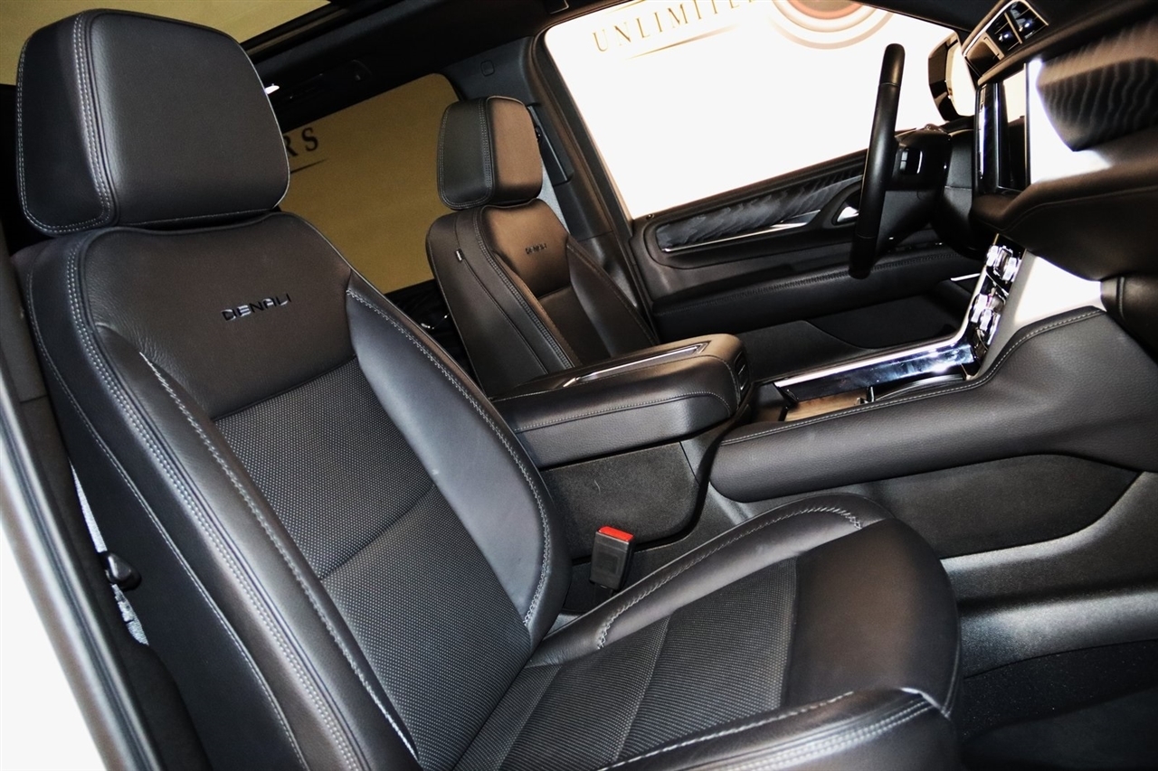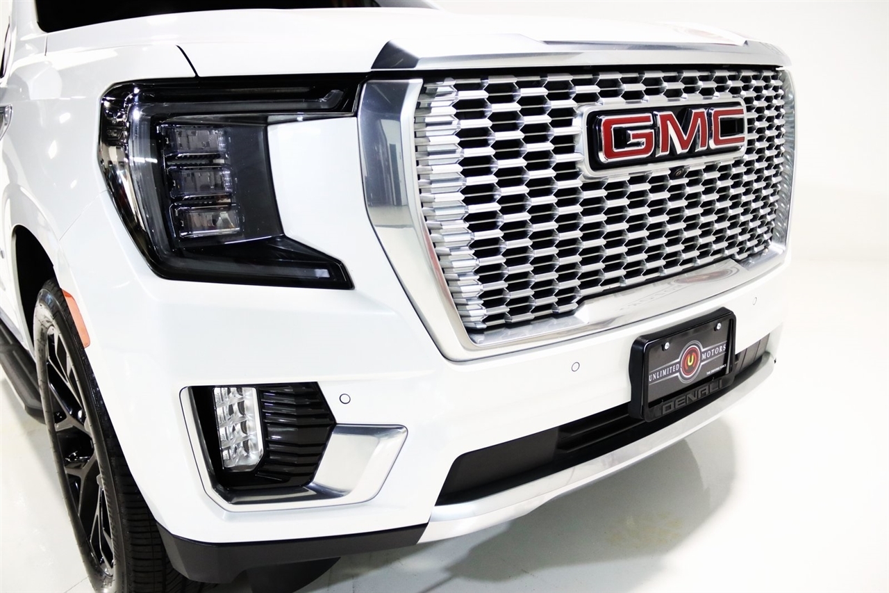 Navigation, Bluetooth, Back Up Camera, Panoramic Roof, 3rd Row, Heated Seats, Touch Screen, 14 Speakers, 15 Diagonal Multi-Color Head-Up Display, 2 Presets For Outside Rearview Mirrors, 3 Years of GMC Connected Services, 3.23 Rear Axle Ratio, 3rd Row 60/40 Power-Folding Split-Bench Seat, 3rd row seats: split-bench, 4-Wheel Disc Brakes, ABS brakes, Adaptive suspension, Air Conditioning, Alloy wheels, AM/FM radio: SiriusXM with 360L, AM/FM Stereo, Apple CarPlay/Android Auto, Auto High-beam Headlights, Auto-dimming door mirrors, Auto-dimming Rear-View mirror, Auto-leveling suspension, Automatic Emergency Braking, Automatic temperature control, Bodyside moldings, Bose 14-Speaker Surround w/CenterPoint, Brake assist, Bright Front & Rear Door Sill Plates, Bumpers: body-color, Chrome Door Handles w/Body-Color Strip, Compass, Delay-off headlights, Driver door bin, Driver vanity mirror, Dual Exhaust System, Dual front impact airbags, Dual front side impact airbags, Electronic Stability Control, Emergency communication system: OnStar and GMC connected services capable, Enhanced Automatic Emergency Braking, Floor Console, Following Distance Indicator, Forward Collision Alert, Four wheel independent suspension, Front & Rear Park Assist, Front anti-roll bar, Front Bucket Seats, Front Center Armrest, Front dual zone A/C, Front fog lights, Front Pedestrian Braking, Front reading lights, Fully automatic headlights, Galvano Bodyside Moldings, Garage door transmitter, Hands-Free Power Programmable Rear Liftgate, HD Surround Vision, Heads-Up Display, Heated & Ventilated Driver & Front Passenger Seats, Heated 2nd Row Outboard Position Seats, Heated door mirrors, Heated Driver & Front Passenger Seats, Heated front seats, Heated rear seats, Heated Steering Wheel, Heated steering wheel, Hill Descent Control, Illuminated entry, Inside Rear-View Auto-Dimming Mirror, IntelliBeam Automatic High Beam On/Off, Lane Change Alert w/Side Blind Zone Alert, Lane Keep Assist w/Lane Departure Warning, Low tire pressure warning, Magnetic Ride Control Suspension, Memory seat, Navigation System, Occupant sensing airbag, Outside Heated Power-Adjustable Mirrors, Outside temperature display, Overhead airbag, Overhead console, Panic alarm, Passenger door bin, Passenger vanity mirror, Perforated Leather Seating Surfaces, Power door mirrors, Power driver seat, Power Liftgate, Power passenger seat, Power Release 2nd Row Bucket Seats, Power steering, Power Tilt & Telescopic Steering Column, Power windows, Rain sensing wipers, Rear air conditioning, Rear anti-roll bar, Rear Cross Traffic Alert, Rear Pedestrian Alert, Rear reading lights, Rear window defroster, Rear window wiper, Remote keyless entry, Roof rack: rails only, Safety Alert Seat, Security system, SiriusXM w/360L, Speed control, Speed-sensing steering, Split folding rear seat, Spoiler, Steering wheel memory, Steering wheel mounted audio controls, Tachometer, Telescoping steering wheel, Tilt steering wheel, Traction control, Trip computer, Turn signal indicator mirrors, Universal Home Remote, Variably intermittent wipers, Ventilated front seats, Voltmeter, Wheels: 22 x 9 Bright Machined Aluminum, Wireless Charging. Clean CARFAX. Priced below KBB Fair Purchase Price!2023 White Frost Tricoat GMC 4D Sport Utility Yukon Denali 4WD 10-Speed Automatic with Overdrive EcoTec3 6.2L V8Visit our website www.iumotors.com to view 100s of newer vehicles, more pictures and info, or to apply for financing. Rates are incredibly low for approved credit. We offer extended warranties, protection packages, and insurance. We assure you the best experience at any of our 4 locations and unbeatable prices and quality. At Unlimited Motors we believe in MARKET VALUE PRICING. We use real-time Internet price comparisons to constantly adjust prices to provide ALL BUYERS The BEST PRICE possible. We do not mark them up, to mark them down! Our entire team is committed to helping you buy a car the way we would want to