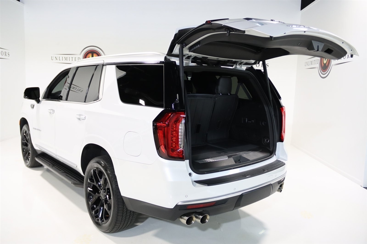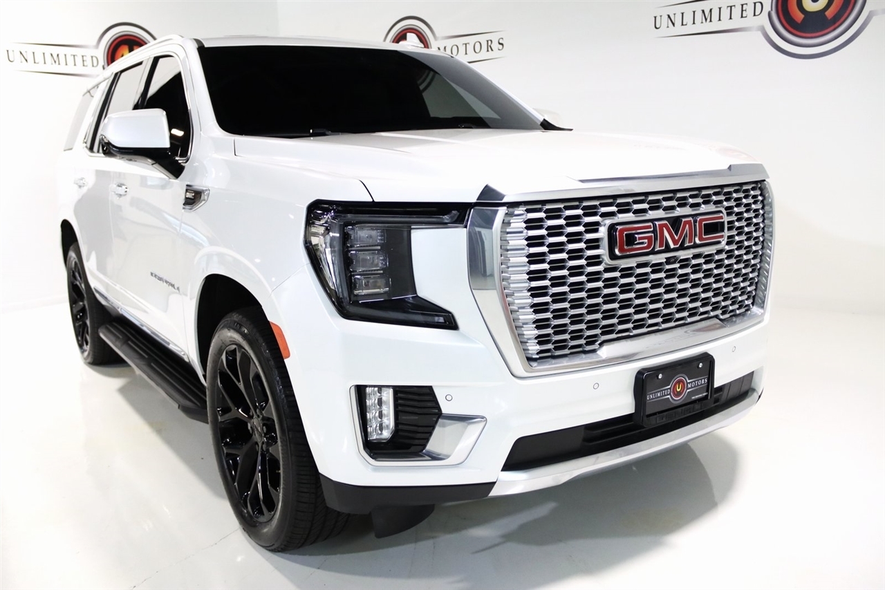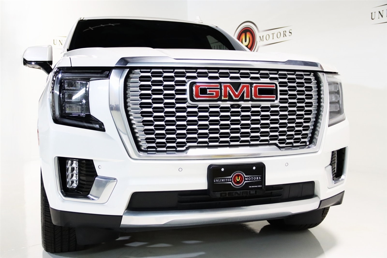 Navigation, Bluetooth, Back Up Camera, Panoramic Roof, 3rd Row, Heated Seats, Touch Screen, 14 Speakers, 15 Diagonal Multi-Color Head-Up Display, 2 Presets For Outside Rearview Mirrors, 3 Years of GMC Connected Services, 3.23 Rear Axle Ratio, 3rd Row 60/40 Power-Folding Split-Bench Seat, 3rd row seats: split-bench, 4-Wheel Disc Brakes, ABS brakes, Adaptive suspension, Air Conditioning, Alloy wheels, AM/FM radio: SiriusXM with 360L, AM/FM Stereo, Apple CarPlay/Android Auto, Auto High-beam Headlights, Auto-dimming door mirrors, Auto-dimming Rear-View mirror, Auto-leveling suspension, Automatic Emergency Braking, Automatic temperature control, Bodyside moldings, Bose 14-Speaker Surround w/CenterPoint, Brake assist, Bright Front & Rear Door Sill Plates, Bumpers: body-color, Chrome Door Handles w/Body-Color Strip, Compass, Delay-off headlights, Driver door bin, Driver vanity mirror, Dual Exhaust System, Dual front impact airbags, Dual front side impact airbags, Electronic Stability Control, Emergency communication system: OnStar and GMC connected services capable, Enhanced Automatic Emergency Braking, Floor Console, Following Distance Indicator, Forward Collision Alert, Four wheel independent suspension, Front & Rear Park Assist, Front anti-roll bar, Front Bucket Seats, Front Center Armrest, Front dual zone A/C, Front fog lights, Front Pedestrian Braking, Front reading lights, Fully automatic headlights, Galvano Bodyside Moldings, Garage door transmitter, Hands-Free Power Programmable Rear Liftgate, HD Surround Vision, Heads-Up Display, Heated & Ventilated Driver & Front Passenger Seats, Heated 2nd Row Outboard Position Seats, Heated door mirrors, Heated Driver & Front Passenger Seats, Heated front seats, Heated rear seats, Heated Steering Wheel, Heated steering wheel, Hill Descent Control, Illuminated entry, Inside Rear-View Auto-Dimming Mirror, IntelliBeam Automatic High Beam On/Off, Lane Change Alert w/Side Blind Zone Alert, Lane Keep Assist w/Lane Departure Warning, Low tire pressure warning, Magnetic Ride Control Suspension, Memory seat, Navigation System, Occupant sensing airbag, Outside Heated Power-Adjustable Mirrors, Outside temperature display, Overhead airbag, Overhead console, Panic alarm, Passenger door bin, Passenger vanity mirror, Perforated Leather Seating Surfaces, Power door mirrors, Power driver seat, Power Liftgate, Power passenger seat, Power Release 2nd Row Bucket Seats, Power steering, Power Tilt & Telescopic Steering Column, Power windows, Rain sensing wipers, Rear air conditioning, Rear anti-roll bar, Rear Cross Traffic Alert, Rear Pedestrian Alert, Rear reading lights, Rear window defroster, Rear window wiper, Remote keyless entry, Roof rack: rails only, Safety Alert Seat, Security system, SiriusXM w/360L, Speed control, Speed-sensing steering, Split folding rear seat, Spoiler, Steering wheel memory, Steering wheel mounted audio controls, Tachometer, Telescoping steering wheel, Tilt steering wheel, Traction control, Trip computer, Turn signal indicator mirrors, Universal Home Remote, Variably intermittent wipers, Ventilated front seats, Voltmeter, Wheels: 22 x 9 Bright Machined Aluminum, Wireless Charging. Clean CARFAX. Priced below KBB Fair Purchase Price!2023 White Frost Tricoat GMC 4D Sport Utility Yukon Denali 4WD 10-Speed Automatic with Overdrive EcoTec3 6.2L V8Visit our website www.iumotors.com to view 100s of newer vehicles, more pictures and info, or to apply for financing. Rates are incredibly low for approved credit. We offer extended warranties, protection packages, and insurance. We assure you the best experience at any of our 4 locations and unbeatable prices and quality. At Unlimited Motors we believe in MARKET VALUE PRICING. We use real-time Internet price comparisons to constantly adjust prices to provide ALL BUYERS The BEST PRICE possible. We do not mark them up, to mark them down! Our entire team is committed to helping you buy a car the way we would want to