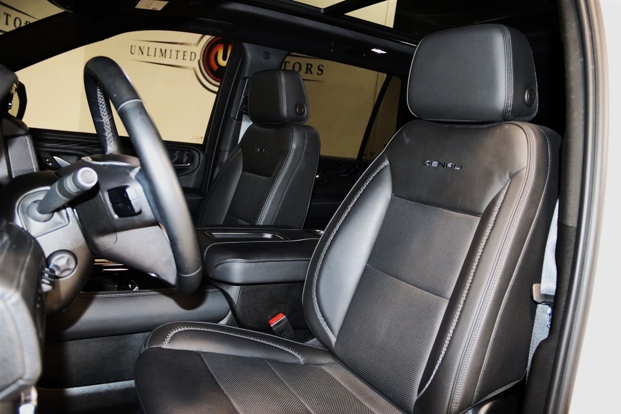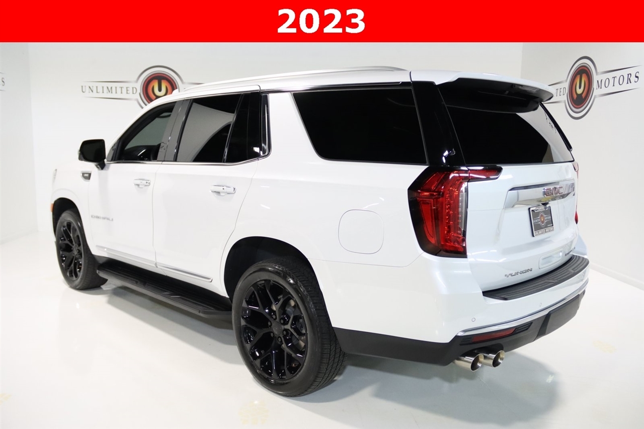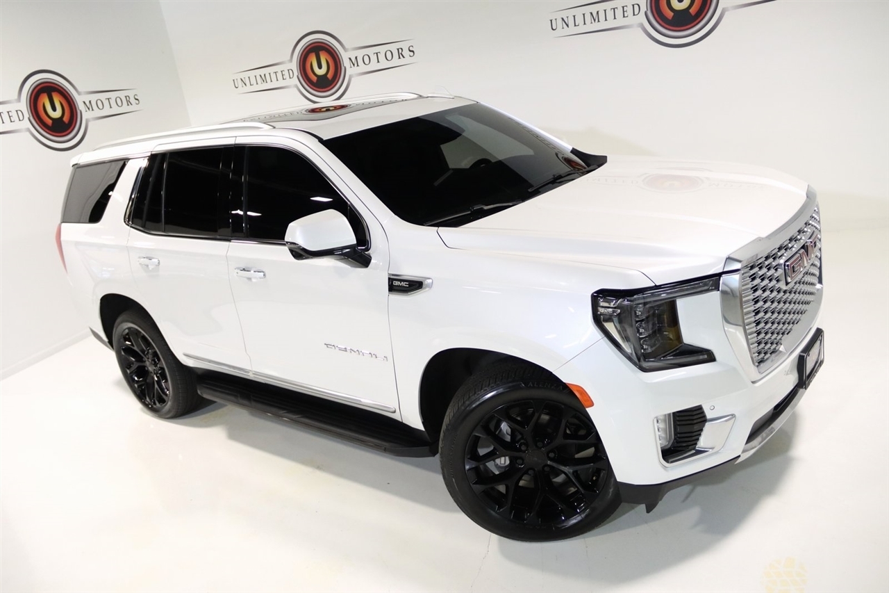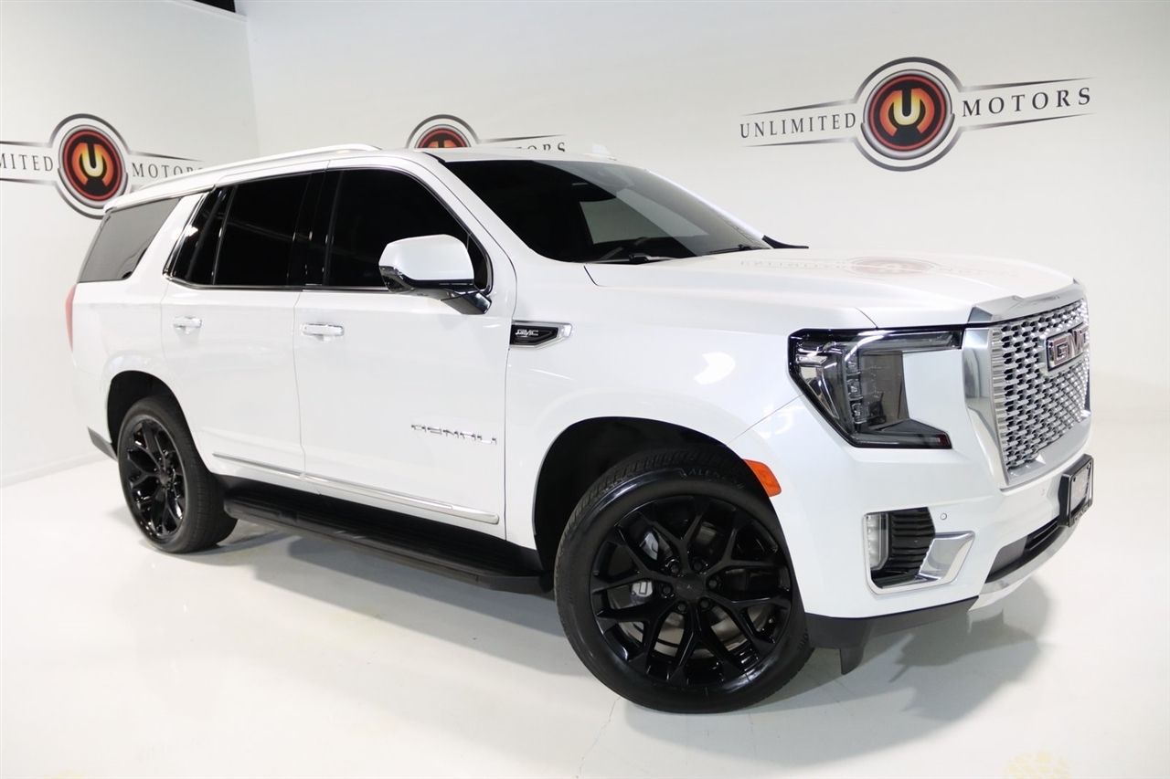 Navigation, Bluetooth, Back Up Camera, Panoramic Roof, 3rd Row, Heated Seats, Touch Screen, 14 Speakers, 15 Diagonal Multi-Color Head-Up Display, 2 Presets For Outside Rearview Mirrors, 3 Years of GMC Connected Services, 3.23 Rear Axle Ratio, 3rd Row 60/40 Power-Folding Split-Bench Seat, 3rd row seats: split-bench, 4-Wheel Disc Brakes, ABS brakes, Adaptive suspension, Air Conditioning, Alloy wheels, AM/FM radio: SiriusXM with 360L, AM/FM Stereo, Apple CarPlay/Android Auto, Auto High-beam Headlights, Auto-dimming door mirrors, Auto-dimming Rear-View mirror, Auto-leveling suspension, Automatic Emergency Braking, Automatic temperature control, Bodyside moldings, Bose 14-Speaker Surround w/CenterPoint, Brake assist, Bright Front & Rear Door Sill Plates, Bumpers: body-color, Chrome Door Handles w/Body-Color Strip, Compass, Delay-off headlights, Driver door bin, Driver vanity mirror, Dual Exhaust System, Dual front impact airbags, Dual front side impact airbags, Electronic Stability Control, Emergency communication system: OnStar and GMC connected services capable, Enhanced Automatic Emergency Braking, Floor Console, Following Distance Indicator, Forward Collision Alert, Four wheel independent suspension, Front & Rear Park Assist, Front anti-roll bar, Front Bucket Seats, Front Center Armrest, Front dual zone A/C, Front fog lights, Front Pedestrian Braking, Front reading lights, Fully automatic headlights, Galvano Bodyside Moldings, Garage door transmitter, Hands-Free Power Programmable Rear Liftgate, HD Surround Vision, Heads-Up Display, Heated & Ventilated Driver & Front Passenger Seats, Heated 2nd Row Outboard Position Seats, Heated door mirrors, Heated Driver & Front Passenger Seats, Heated front seats, Heated rear seats, Heated Steering Wheel, Heated steering wheel, Hill Descent Control, Illuminated entry, Inside Rear-View Auto-Dimming Mirror, IntelliBeam Automatic High Beam On/Off, Lane Change Alert w/Side Blind Zone Alert, Lane Keep Assist w/Lane Departure Warning, Low tire pressure warning, Magnetic Ride Control Suspension, Memory seat, Navigation System, Occupant sensing airbag, Outside Heated Power-Adjustable Mirrors, Outside temperature display, Overhead airbag, Overhead console, Panic alarm, Passenger door bin, Passenger vanity mirror, Perforated Leather Seating Surfaces, Power door mirrors, Power driver seat, Power Liftgate, Power passenger seat, Power Release 2nd Row Bucket Seats, Power steering, Power Tilt & Telescopic Steering Column, Power windows, Rain sensing wipers, Rear air conditioning, Rear anti-roll bar, Rear Cross Traffic Alert, Rear Pedestrian Alert, Rear reading lights, Rear window defroster, Rear window wiper, Remote keyless entry, Roof rack: rails only, Safety Alert Seat, Security system, SiriusXM w/360L, Speed control, Speed-sensing steering, Split folding rear seat, Spoiler, Steering wheel memory, Steering wheel mounted audio controls, Tachometer, Telescoping steering wheel, Tilt steering wheel, Traction control, Trip computer, Turn signal indicator mirrors, Universal Home Remote, Variably intermittent wipers, Ventilated front seats, Voltmeter, Wheels: 22 x 9 Bright Machined Aluminum, Wireless Charging. Clean CARFAX. Priced below KBB Fair Purchase Price!2023 White Frost Tricoat GMC 4D Sport Utility Yukon Denali 4WD 10-Speed Automatic with Overdrive EcoTec3 6.2L V8Visit our website www.iumotors.com to view 100s of newer vehicles, more pictures and info, or to apply for financing. Rates are incredibly low for approved credit. We offer extended warranties, protection packages, and insurance. We assure you the best experience at any of our 4 locations and unbeatable prices and quality. At Unlimited Motors we believe in MARKET VALUE PRICING. We use real-time Internet price comparisons to constantly adjust prices to provide ALL BUYERS The BEST PRICE possible. We do not mark them up, to mark them down! Our entire team is committed to helping you buy a car the way we would want to