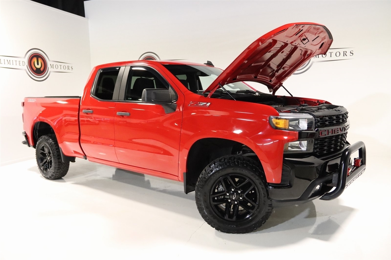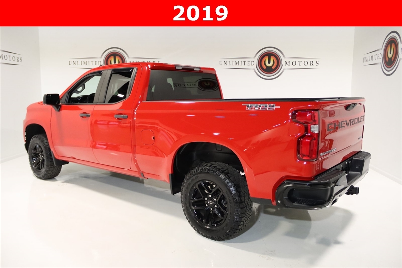 Bluetooth, Back Up Camera, Touch Screen, 170 Amp Alternator, 3.42 Rear Axle Ratio, 3.5 Diagonal Monochromatic Display, 4-Wheel Disc Brakes, 6 Speakers, ABS brakes, Air Conditioning, All-Weather Floor Liner (LPO) (AAK), Alloy wheels, AM/FM radio, Apple CarPlay/Android Auto, Auxiliary External Transmission Oil Cooler, Bed-Mounted Tubular Sport Bar (LPO), Bluetooth For Phone, Brake assist, Chevrolet Connected Access, Chevrolet w/4G LTE, Chevytec Spray-On Black Bedliner, Cloth Seat Trim, Color-Keyed Carpeting Floor Covering, Compass, Custom Convenience Package, Deep-Tinted Glass, Delay-off headlights, Driver door bin, Driver vanity mirror, Dual Exhaust w/Polished Outlets, Dual front impact airbags, Dual front side impact airbags, Electric Rear-Window Defogger, Electronic Cruise Control, Electronic Stability Control, Exterior Parking Camera Rear, EZ Lift Power Lock & Release Tailgate, Front 40/20/40 Split-Bench Seat, Front anti-roll bar, Front Center Armrest, Front reading lights, Front Rubberized Vinyl Floor Mats, Fully automatic headlights, Heated door mirrors, Heavy-Duty Rear Locking Differential, High Capacity Air Filter, High Gloss Black Grille, Hill Descent Control, Hitch Guidance, Illuminated entry, Infotainment Package, Integrated Trailer Brake Controller, LED Cargo Area Lighting, Locking Tailgate, Low tire pressure warning, Manual Tilt Wheel Steering Column, Occupant sensing airbag, Off-Road Appearance Package (LPO), Off-Road Assist Steps (LPO), Off-Road Suspension w/2 Lift, OnStar & Chevrolet Connected Services Capable, Outside temperature display, Overhead airbag, Overhead console, Panic alarm, Passenger door bin, Passenger vanity mirror, Performance Red Recovery Hooks, Polished Exhaust Tip, Power Door Locks, Power door mirrors, Power Front Windows w/Driver Express Up/Down, Power Front Windows w/Passenger Express Down, Power Rear Windows w/Express Down, Power steering, Power windows, Preferred Equipment Group 2CX, Premium audio system: Chevrolet Infotainment System 3, Premium Soft Roll-Up Tonneau Cover (LPO), Radio data system, Radio: Chevrolet Infotainment 3 System, Rear 60/40 Folding Bench Seat (Folds Up), Rear reading lights, Rear Rubberized-Vinyl Floor Mats, Rear step bumper, Remote Keyless Entry, Remote keyless entry, Remote Vehicle Starter System, SiriusXM Radio, Speed control, Speed-sensing steering, Split folding rear seat, Suspension Package, Tachometer, Theft Deterrent System (Unauthorized Entry), Tilt steering wheel, Traction control, Trailering Package, Trip computer, Variably intermittent wipers, Voltmeter, Wheels: 18 x 8.5 Black Painted Aluminum. CARFAX One-Owner. Clean CARFAX. Odometer is 65808 miles below market average!2019 Red Hot Chevrolet 4D Double Cab Silverado 1500 Custom Trail Boss 4WD 6-Speed Automatic Electronic with Overdrive EcoTec3 5.3L V8Awards: * Ward's 10 Best EnginesVisit our website www.iumotors.com to view 100s of newer vehicles, more pictures and info, or to apply for financing. Rates are incredibly low for approved credit. We offer extended warranties, protection packages, and insurance. We assure you the best experience at any of our 4 locations and unbeatable prices and quality. At Unlimited Motors we believe in MARKET VALUE PRICING. We use real-time Internet price comparisons to constantly adjust prices to provide ALL BUYERS The BEST PRICE possible. We do not mark them up, to mark them down! Our entire team is committed to helping you buy a car the way we would want to buy a car! We utilize state-of-the-art technology to constantly monitor pricing trends to offer our shoppers the best competitive pricing, value, and experience. We sell and service all makes and models of Pre-owned / Used Vehicles Used Cars, Used Trucks, Used Sport Utility, Lamborghini, Ferrari, Bentley, Rolls Royce, McLaren, Maserati, Ford, Chevrolet/Chevy, Honda, Toyota, Porsche, Land Rover, Jaguar, INFINITI, Audi, Nissan, Mazda, Hyundai, Chrysler, Jeep, Dodge, Ram, SRT, Mi