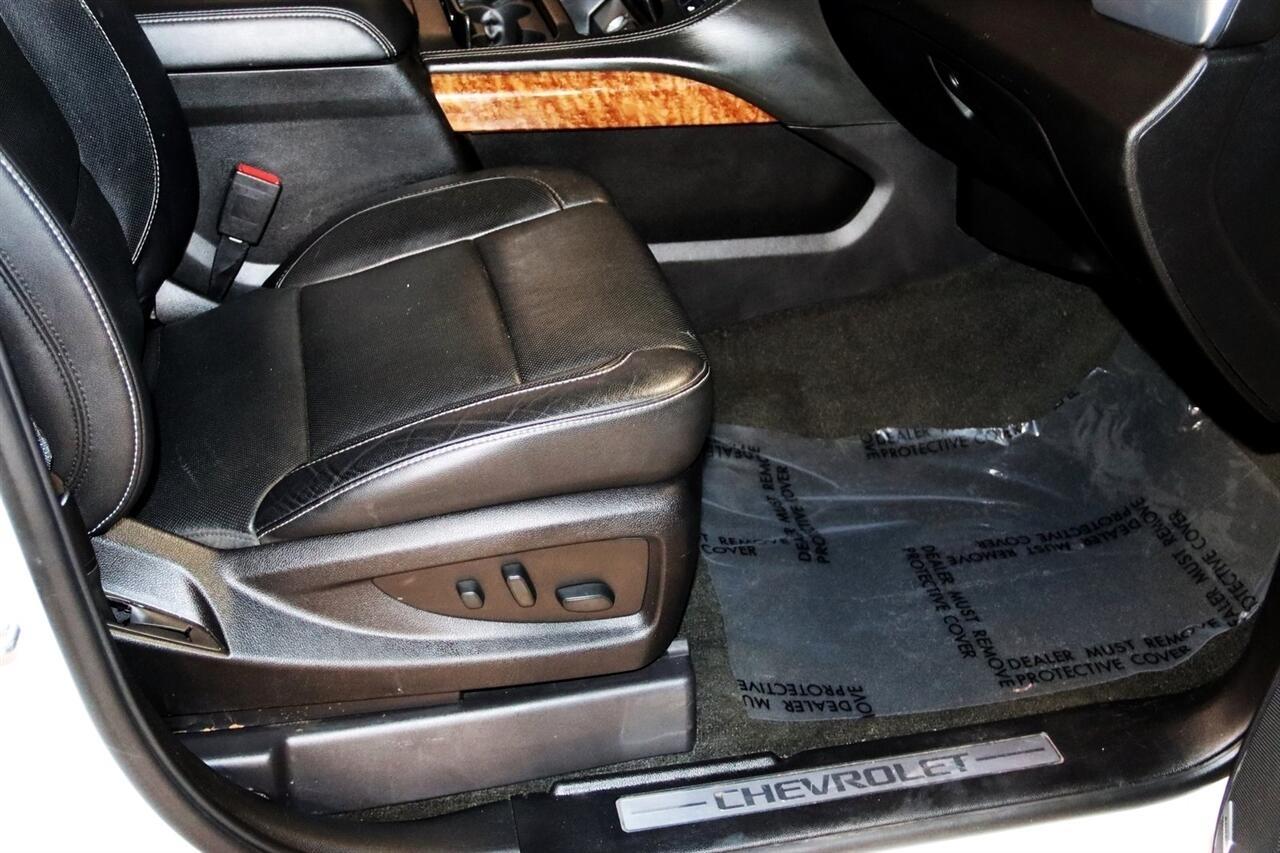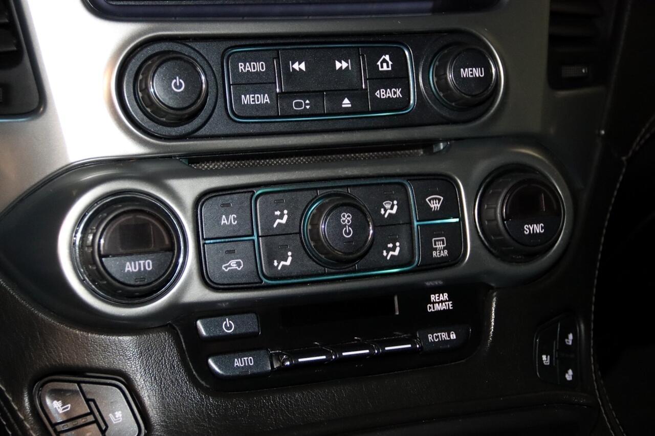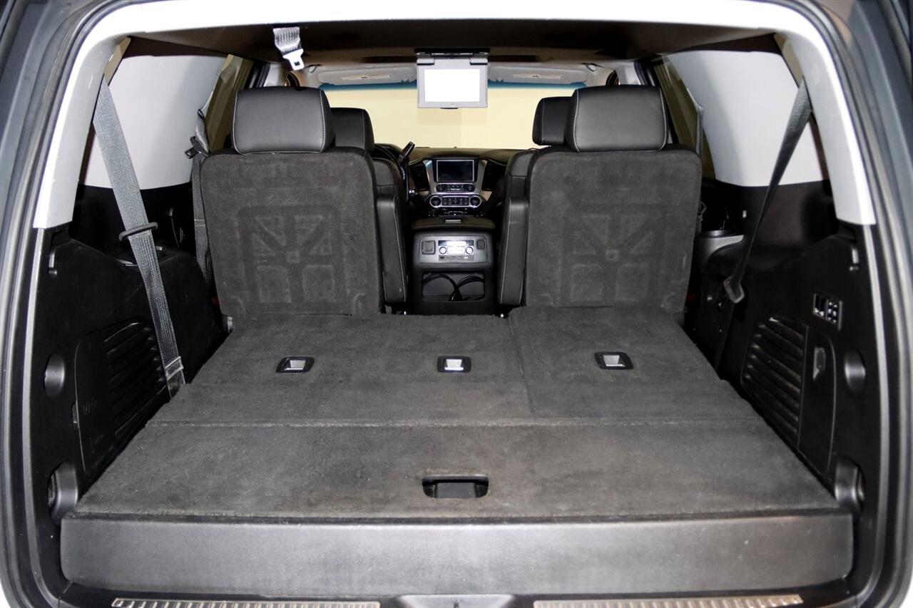 Navigation, Bluetooth, Back Up Camera, Entertainment, 3rd Row, Heated Seats, Touch Screen, 10 Speakers, 1st & 2nd Row Color-Keyed Carpeted Floor Mats, 3.42 Rear Axle Ratio, 3rd Row 60/40 Power Fold Split-Bench, 3rd row seats: split-bench, 4-Wheel Antilock Disc Brakes w/Brake Assist, 4-Wheel Disc Brakes, 5 12-Volt Auxiliary Power Outlets, ABS brakes, Adaptive Cruise Control, Adaptive suspension, Adjustable pedals, Air Conditioning, Alloy wheels, AM/FM radio: SiriusXM, Apple CarPlay/Android Auto, Auto High-beam Headlights, Auto-dimming door mirrors, Auto-Dimming Inside Rear-View Mirror, Auto-dimming Rear-View mirror, Automatic temperature control, Black Assist Steps w/Chrome Accent Strip, Black Beltline Moldings, Black Mirror Caps, Black Roof Rails, Bluetooth For Phone, Body-Color Door Handles & Headlamp Accents, Bodyside moldings, Bose Centerpoint Premium 10-Speaker Surround Sound, Brake assist, Bumpers: body-color, Cargo Net, CD player, Color-Keyed Carpeting Floor Covering, Compass, Delay-off headlights, Driver door bin, Driver Inboard & Front Passenger Airbags, Driver vanity mirror, Dual front impact airbags, Dual front side impact airbags, Electronic Cruise Control w/Set & Resume Speed, Electronic Stability Control, Emergency communication system: OnStar Guidance, Enhanced Driver Alert Package (Y86), Enhanced Driver Information Center, Exterior Parking Camera Rear, Floor Console, Fog Lamps, Forward Automatic Braking, Forward Collision Alert, Front & Rear Black Bowties, Front & Rear Park Assist, Front anti-roll bar, Front Bucket Seats, Front Center Armrest, Front dual zone A/C, Front fog lights, Front Heated Reclining Bucket Seats, Front Passenger 6-Way Power Seat Adjuster, Front reading lights, Front wheel independent suspension, Fully automatic headlights, Garage door transmitter, Hands Free Power Liftgate, HD Radio, Head-Up Display, Heated & Ventilated Driver & Front Passenger Seats, Heated 2nd Row Seats, Heated door mirrors, Heated front seats, Heated Leather Wrapped Steering Wheel, Heated rear seats, Heated steering wheel, High-Intensity Discharge Headlights, Illuminated entry, Integrated Trailer Brake Controller, IntelliBeam Headlamps, Lane Change Alert w/Side Blind Zone Alert, Lane Keep Assist w/Lane Departure Warning, License Plate Front Mounting Package, Low Speed Forward Automatic Braking, Low tire pressure warning, Magnetic Ride Control Suspension Package, Max Trailering Package, Memory seat, Memory Settings, Navigation System, Occupant sensing airbag, OnStar Basic Plan For 5 Years, Outside temperature display, Overhead airbag, Overhead console, Panic alarm, Passenger door bin, Passenger vanity mirror, Passive Entry System, Pedal memory, Perforated Leather-Appointed Seat Trim, Power door mirrors, Power driver seat, Power Liftgate, Power passenger seat, Power Release 2nd Row Bucket Seats, Power steering, Power Sunroof, Power Tilt & Telescopic Steering Column, Power windows, Power-Adjustable Accelerator & Brake Pedals, Power-Folding Heated Outside Mirrors, Preferred Equipment Group 1LZ, Premium audio system: Chevrolet MyLink, Push Button Keyless Start, Radio: Chevrolet MyLink w/Nav/AM/FM Stereo, Rain sensing wipers, Rear air conditioning, Rear anti-roll bar, Rear Cross-Traffic Alert, Rear reading lights, Rear Seat Blu-Ray/DVD Entertainment System, Rear window defroster, Rear window wiper, Remote Keyless Entry, Remote keyless entry, Remote Vehicle Start, Roof rack: rails only, Roof-Mounted Luggage Rack Side Rails, RST Edition, Security system, Single-Slot CD/MP3 Player, SiriusXM NavTraffic, SiriusXM Satellite Radio, Speed control, Speed-sensing steering, Split folding rear seat, Spoiler, Steering wheel memory, Steering wheel mounted audio controls, Sun, Entertainment & Destinations Package, Tachometer, Telescoping steering wheel, Tilt steering wheel, Traction control, Trip computer, Turn signal indicator mirrors, Unique Gloss Black Sport Grille, Universal Home Remote, VAC Power 4-Wheel Disc & 4-Wheel Antilock Brakes