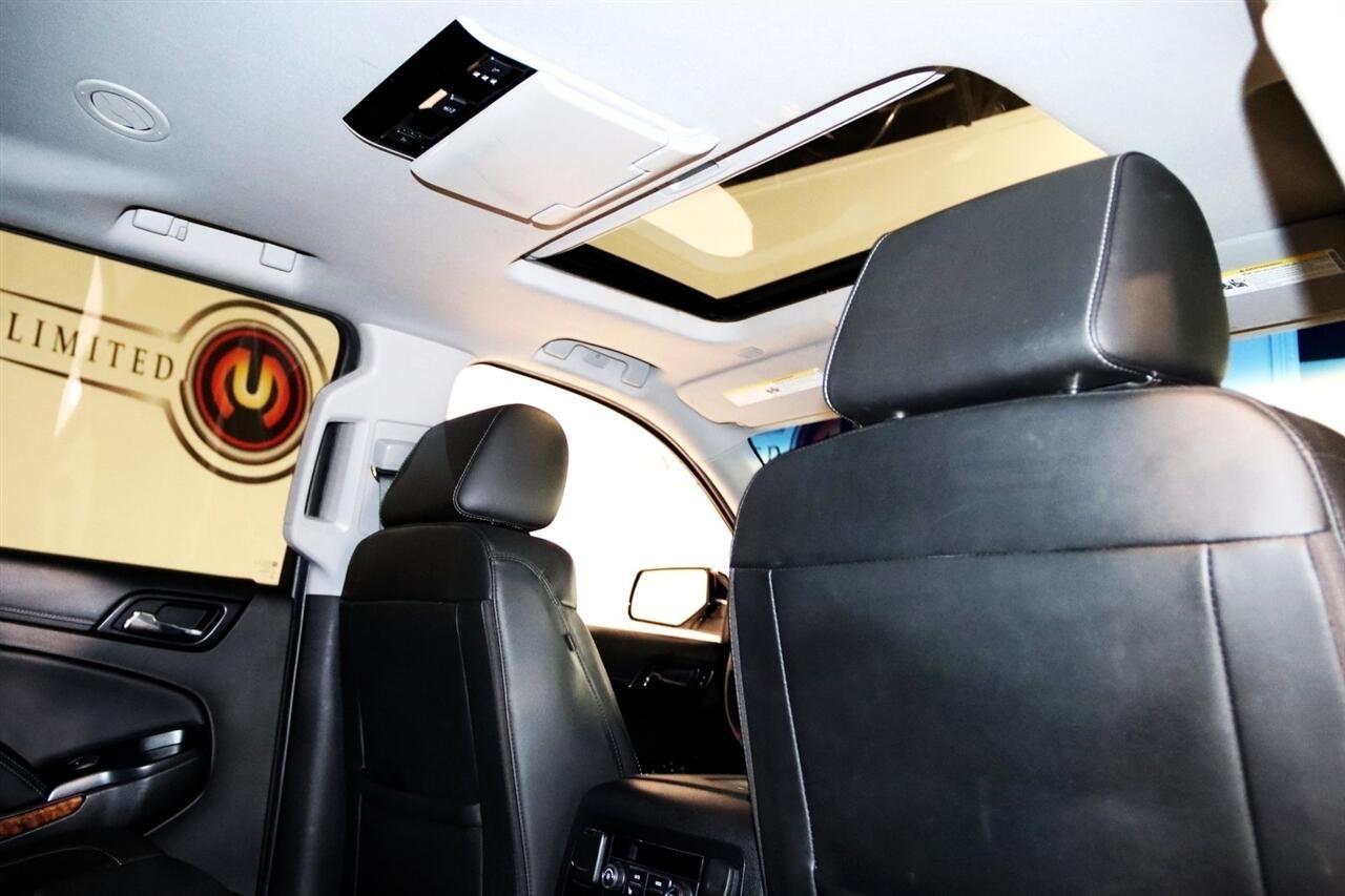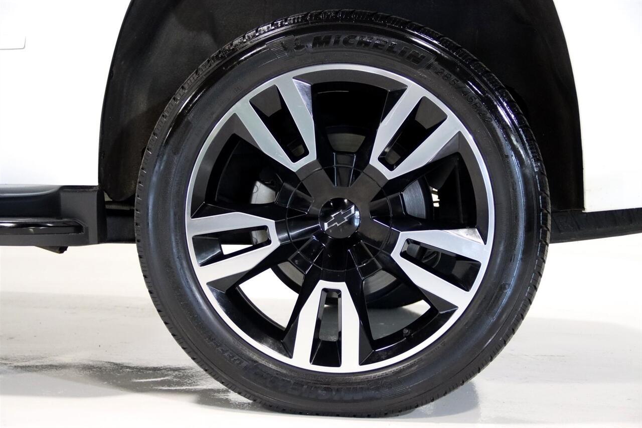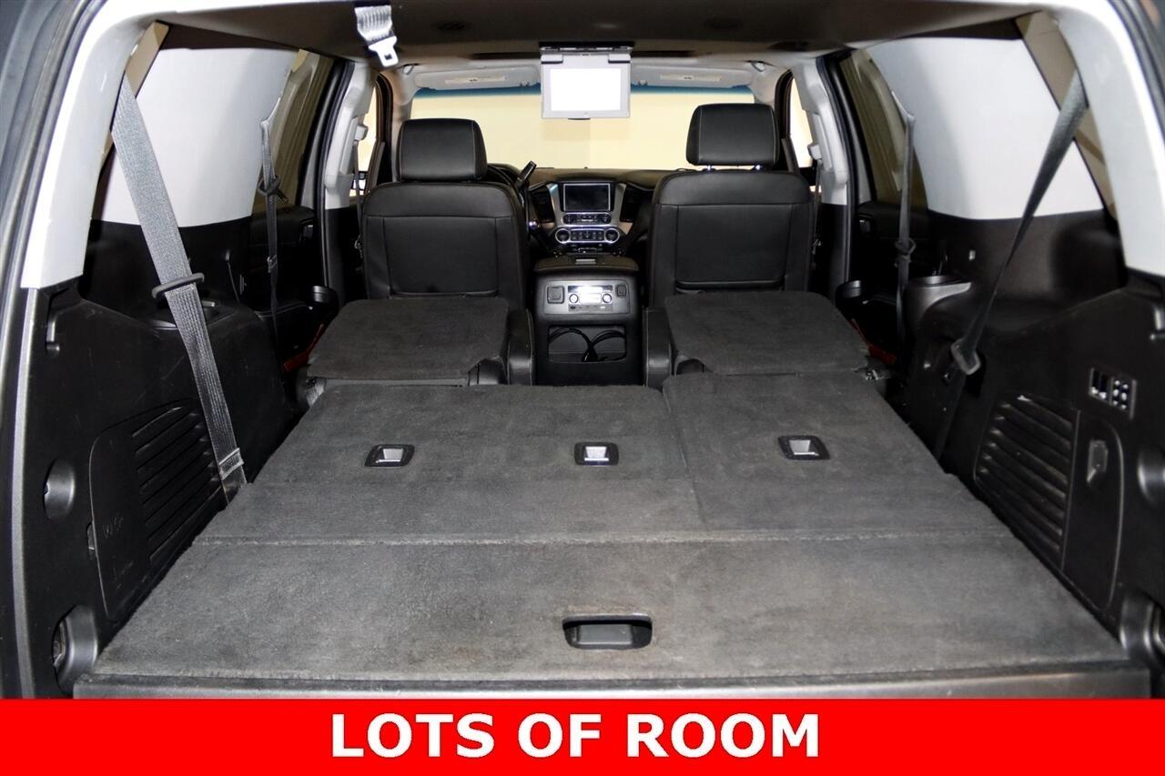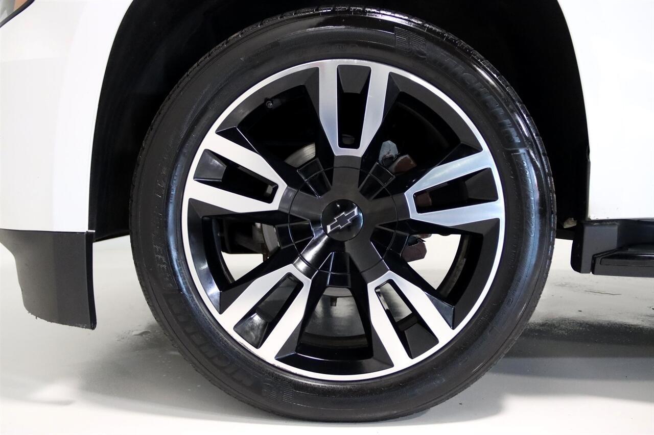 Navigation, Bluetooth, Back Up Camera, Entertainment, 3rd Row, Heated Seats, Touch Screen, 10 Speakers, 1st & 2nd Row Color-Keyed Carpeted Floor Mats, 3.42 Rear Axle Ratio, 3rd Row 60/40 Power Fold Split-Bench, 3rd row seats: split-bench, 4-Wheel Antilock Disc Brakes w/Brake Assist, 4-Wheel Disc Brakes, 5 12-Volt Auxiliary Power Outlets, ABS brakes, Adaptive Cruise Control, Adaptive suspension, Adjustable pedals, Air Conditioning, Alloy wheels, AM/FM radio: SiriusXM, Apple CarPlay/Android Auto, Auto High-beam Headlights, Auto-dimming door mirrors, Auto-Dimming Inside Rear-View Mirror, Auto-dimming Rear-View mirror, Automatic temperature control, Black Assist Steps w/Chrome Accent Strip, Black Beltline Moldings, Black Mirror Caps, Black Roof Rails, Bluetooth For Phone, Body-Color Door Handles & Headlamp Accents, Bodyside moldings, Bose Centerpoint Premium 10-Speaker Surround Sound, Brake assist, Bumpers: body-color, Cargo Net, CD player, Color-Keyed Carpeting Floor Covering, Compass, Delay-off headlights, Driver door bin, Driver Inboard & Front Passenger Airbags, Driver vanity mirror, Dual front impact airbags, Dual front side impact airbags, Electronic Cruise Control w/Set & Resume Speed, Electronic Stability Control, Emergency communication system: OnStar Guidance, Enhanced Driver Alert Package (Y86), Enhanced Driver Information Center, Exterior Parking Camera Rear, Floor Console, Fog Lamps, Forward Automatic Braking, Forward Collision Alert, Front & Rear Black Bowties, Front & Rear Park Assist, Front anti-roll bar, Front Bucket Seats, Front Center Armrest, Front dual zone A/C, Front fog lights, Front Heated Reclining Bucket Seats, Front Passenger 6-Way Power Seat Adjuster, Front reading lights, Front wheel independent suspension, Fully automatic headlights, Garage door transmitter, Hands Free Power Liftgate, HD Radio, Head-Up Display, Heated & Ventilated Driver & Front Passenger Seats, Heated 2nd Row Seats, Heated door mirrors, Heated front seats, Heated Leather Wrapped Steering Wheel, Heated rear seats, Heated steering wheel, High-Intensity Discharge Headlights, Illuminated entry, Integrated Trailer Brake Controller, IntelliBeam Headlamps, Lane Change Alert w/Side Blind Zone Alert, Lane Keep Assist w/Lane Departure Warning, License Plate Front Mounting Package, Low Speed Forward Automatic Braking, Low tire pressure warning, Magnetic Ride Control Suspension Package, Max Trailering Package, Memory seat, Memory Settings, Navigation System, Occupant sensing airbag, OnStar Basic Plan For 5 Years, Outside temperature display, Overhead airbag, Overhead console, Panic alarm, Passenger door bin, Passenger vanity mirror, Passive Entry System, Pedal memory, Perforated Leather-Appointed Seat Trim, Power door mirrors, Power driver seat, Power Liftgate, Power passenger seat, Power Release 2nd Row Bucket Seats, Power steering, Power Sunroof, Power Tilt & Telescopic Steering Column, Power windows, Power-Adjustable Accelerator & Brake Pedals, Power-Folding Heated Outside Mirrors, Preferred Equipment Group 1LZ, Premium audio system: Chevrolet MyLink, Push Button Keyless Start, Radio: Chevrolet MyLink w/Nav/AM/FM Stereo, Rain sensing wipers, Rear air conditioning, Rear anti-roll bar, Rear Cross-Traffic Alert, Rear reading lights, Rear Seat Blu-Ray/DVD Entertainment System, Rear window defroster, Rear window wiper, Remote Keyless Entry, Remote keyless entry, Remote Vehicle Start, Roof rack: rails only, Roof-Mounted Luggage Rack Side Rails, RST Edition, Security system, Single-Slot CD/MP3 Player, SiriusXM NavTraffic, SiriusXM Satellite Radio, Speed control, Speed-sensing steering, Split folding rear seat, Spoiler, Steering wheel memory, Steering wheel mounted audio controls, Sun, Entertainment & Destinations Package, Tachometer, Telescoping steering wheel, Tilt steering wheel, Traction control, Trip computer, Turn signal indicator mirrors, Unique Gloss Black Sport Grille, Universal Home Remote, VAC Power 4-Wheel Disc & 4-Wheel Antilock Brakes