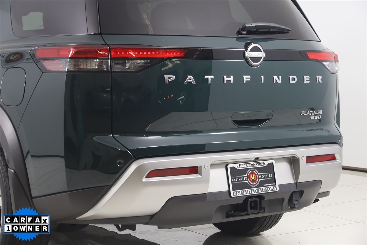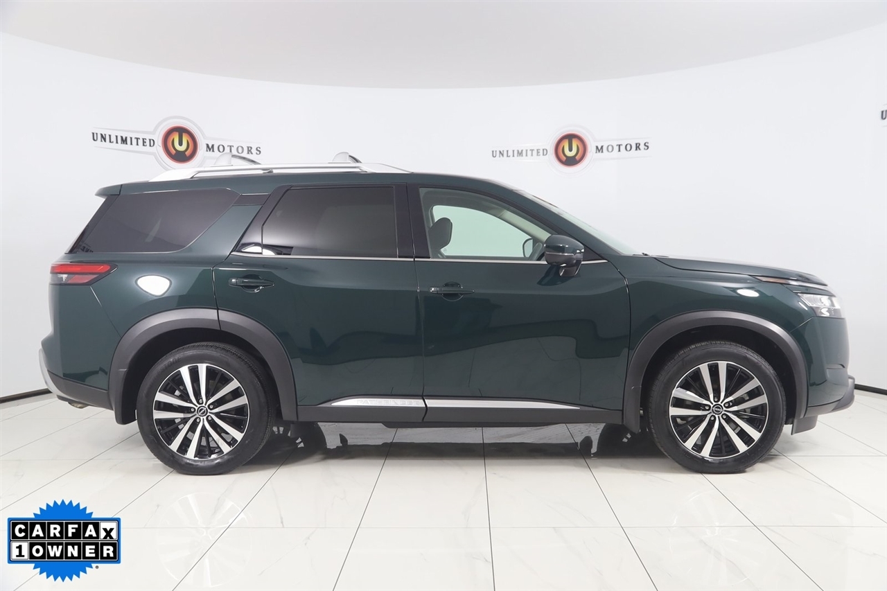 2024 Nissan Pathfinder Obsidian Green Pearl Now Available at Unlimited Motors Noblesville! With over 20 years in business and 4 Indiana locations, Unlimited Motors is known for offering high-quality, hand-selected vehicles at excellent pricing with outstanding customer service. Our inventory of over 1,000 vehicles includes major makes such as Ford, Chevrolet, Ram, Jeep, GMC, Dodge, BMW, Mercedes-Benz, Audi, Cadillac, Porsche, Maserati, Ferrari, and Lamborghini, giving customers one of the largest selections of quality vehicles in the Midwest. Vehicle Highlights:4x4, AWD, Back Up Camera, Bluetooth, Heated Seats, Navigation/GPS, Push Button Start, Panoramic Roof, and much more ..., Touch Screen, Pathfinder Platinum, 4D Sport Utility, 3.5L V6 DOHC, 9-Speed Automatic, 4WD, Obsidian Green Pearl, Charcoal Leather, Cargo Area Protector, Cargo Net, Cargo Package, First Aid Kit, Navigation System, Navigation system: NissanConnect with Navigation and Services.CARFAX One-Owner. Clean CARFAX. Priced below KBB Fair Purchase Price! Odometer is 12525 miles below market average!Visit www.iumotors.com to explore our full inventory of over 1,000 hand-picked vehicles across our Westfield, Fishers, Noblesville, and Elwood locations. At Unlimited Motors, we offer a premium car-buying experience with competitive financing through local credit unions and national lenders, top trade-in values, full auto repair and maintenance services for customer vehicles, and nationwide shipping to all 50 states. Youll also find many of the most searched and in-demand models, including Ford F-150, Chevrolet Silverado, Ram 1500, Jeep Wrangler, Jeep Grand Cherokee, Chevrolet Tahoe, Chevrolet Suburban, GMC Yukon, GMC Sierra, Dodge Charger, Dodge Durango, Ford Explorer, BMW X5, BMW X3, BMW 3 Series, Mercedes-Benz GLE, Mercedes-Benz GLC, Cadillac Escalade, Audi Q5, Audi Q7, Porsche Cayenne, Porsche Macan, Maserati Ghibli, and more. Whether youre visiting from Westfield, Indianapolis, Carmel, Fishers, Noblesville, Zionsville, Greenwood, Lawrence, Brownsburg, Avon, Plainfield, Lebanon, Anderson, Muncie, Kokomo, Lafayette, Bloomington, Columbus, or anywhere across Central and Northern Indiana, we are here to help you find the perfect vehicle with exceptional service and unbeatable value. Call us today at 317-219-5325 60 N Mill Creek Rd, Noblesville, IN 46062. Disclaimer: Advertised prices DO NOT include Sales Tax, Dealer Fees, Title Processing Charges, and Dealer Pre-installed Products.