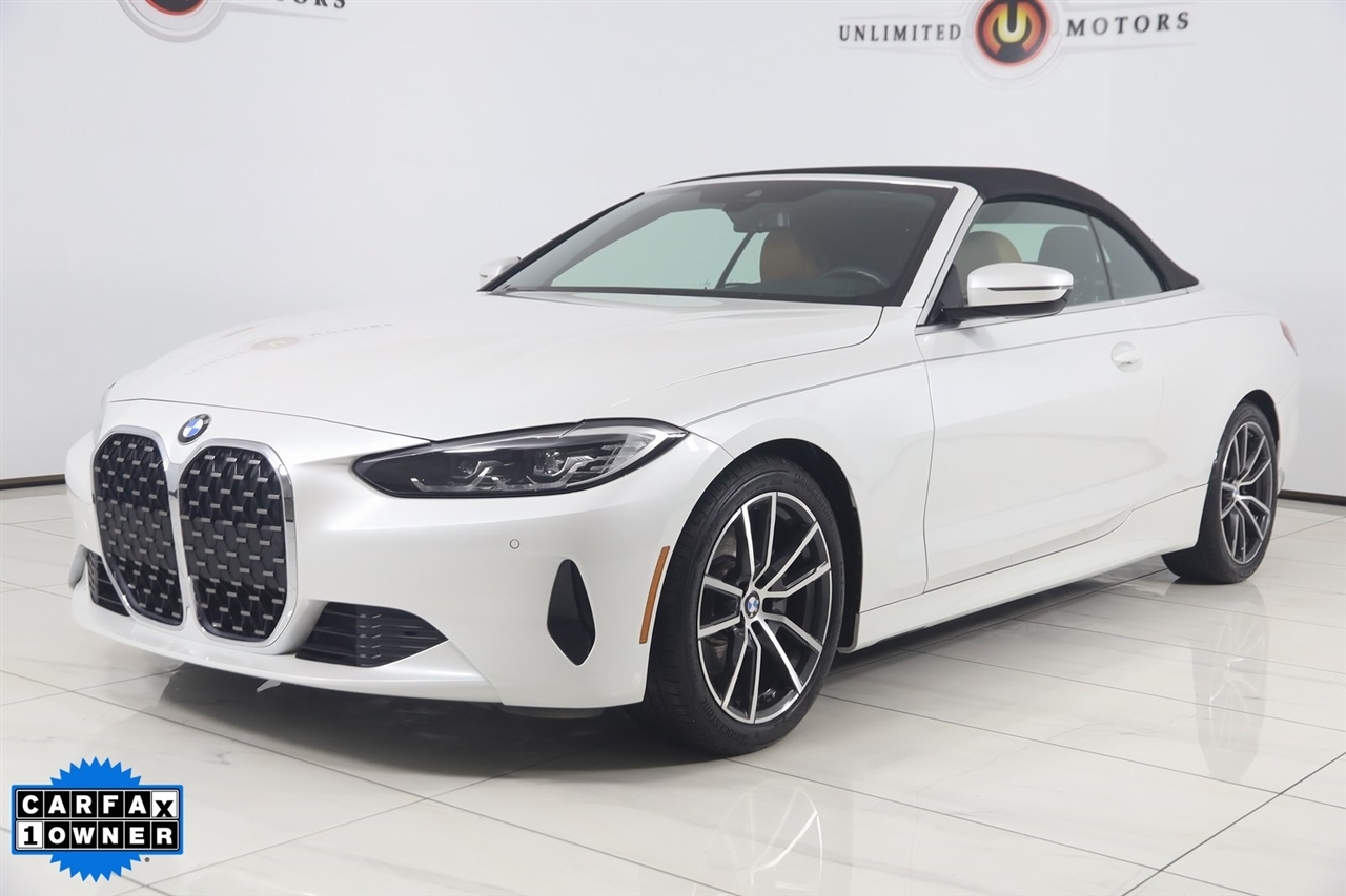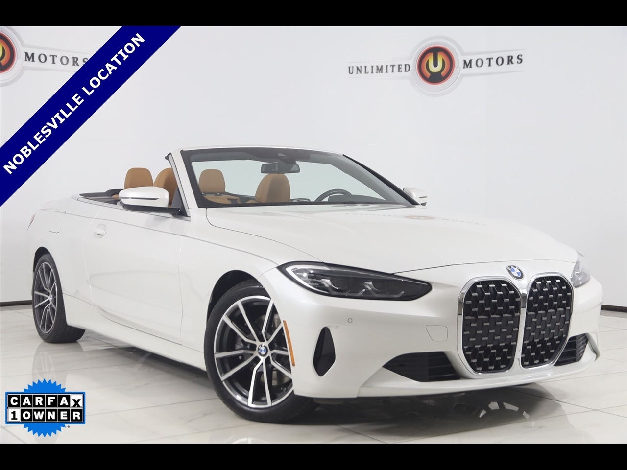 2022 BMW 4 Series Mineral White Metallic Now Available at Unlimited Motors Noblesville! With over 20 years in business and 4 Indiana locations, Unlimited Motors is known for offering high-quality, hand-selected vehicles at excellent pricing with outstanding customer service. Our inventory of over 1,000 vehicles includes major makes such as Ford, Chevrolet, Ram, Jeep, GMC, Dodge, BMW, Mercedes-Benz, Audi, Cadillac, Porsche, Maserati, Ferrari, and Lamborghini, giving customers one of the largest selections of quality vehicles in the Midwest. Vehicle Highlights:4x4, AWD, Back Up Camera, Bluetooth, Heated Seats, Navigation/GPS, Push Button Start, and much more ..., Touch Screen, 430i, 2D Convertible, 2.0L 4-Cylinder TwinPower Turbo, 8-Speed Automatic Sport, RWD, Mineral White Metallic, Cognac Artificial Leather, Comfort Access Keyless Entry, Heated Front Seats, Heated Steering Wheel, Lumbar Support, Navigation, Navigation System, Premium Package 2.CARFAX One-Owner. Clean CARFAX. Priced below KBB Fair Purchase Price! Odometer is 20348 miles below market average!Visit www.iumotors.com to explore our full inventory of over 1,000 hand-picked vehicles across our Westfield, Fishers, Noblesville, and Elwood locations. At Unlimited Motors, we offer a premium car-buying experience with competitive financing through local credit unions and national lenders, top trade-in values, full auto repair and maintenance services for customer vehicles, and nationwide shipping to all 50 states. Youll also find many of the most searched and in-demand models, including Ford F-150, Chevrolet Silverado, Ram 1500, Jeep Wrangler, Jeep Grand Cherokee, Chevrolet Tahoe, Chevrolet Suburban, GMC Yukon, GMC Sierra, Dodge Charger, Dodge Durango, Ford Explorer, BMW X5, BMW X3, BMW 3 Series, Mercedes-Benz GLE, Mercedes-Benz GLC, Cadillac Escalade, Audi Q5, Audi Q7, Porsche Cayenne, Porsche Macan, Maserati Ghibli, and more. Whether youre visiting from Westfield, Indianapolis, Carmel, Fishers, Noblesville, Zionsville, Greenwood, Lawrence, Brownsburg, Avon, Plainfield, Lebanon, Anderson, Muncie, Kokomo, Lafayette, Bloomington, Columbus, or anywhere across Central and Northern Indiana, we are here to help you find the perfect vehicle with exceptional service and unbeatable value. Call us today at 317-219-5325 60 N Mill Creek Rd, Noblesville, IN 46062. Disclaimer: Advertised prices DO NOT include Sales Tax, Dealer Fees, Title Processing Charges, and Dealer Pre-installed Products.