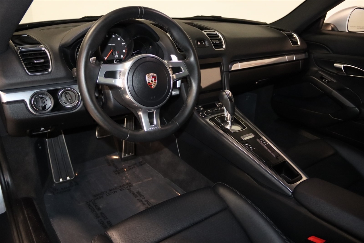 Bluetooth, Back Up Camera, Heated Seats, Touch Screen, 4 Speakers, 4-Wheel Disc Brakes, ABS brakes, Air Conditioning, Alloy wheels, AM/FM radio, Brake assist, Bumpers: body-color, CD player, Driver door bin, Driver vanity mirror, Dual front impact airbags, Dual front side impact airbags, Electronic Stability Control, Four wheel independent suspension, Front anti-roll bar, Front Bucket Seats, Front Center Armrest, Front fog lights, Front reading lights, Garage door transmitter: HomeLink, Heated door mirrors, Illuminated entry, Leather Shift Knob, Leather steering wheel, Low tire pressure warning, Occupant sensing airbag, Outside temperature display, Overhead airbag, Partial Leather Seat Trim, Passenger door bin, Passenger vanity mirror, Power door mirrors, Power driver seat, Power passenger seat, Power steering, Power windows, Radio data system, Radio: CDR Audio System w/Single CD/MP3, Rain sensing wipers, Rear anti-roll bar, Rear fog lights, Rear window defroster, Remote keyless entry, Security system, Speed control, Spoiler, Sport Seats, Tachometer, Telescoping steering wheel, Tilt steering wheel, Traction control, Trip computer, Variably intermittent wipers, Wheels: 8J x 18 Fr & 9J x 18 Rr Cayman Alloy. Clean CARFAX. 20/30 City/Highway MPG Odometer is 46697 miles below market average!2014 GT Silver Metallic Porsche 2D Coupe Cayman RWD 7-Speed Porsche Doppelkupplung (PDK) 2.7L H6 DOHCAwards: * 2014 KBB.com Brand Image AwardsVisit our website www.iumotors.com to view 100s of newer vehicles, more pictures and info, or to apply for financing. Rates are incredibly low for approved credit. We offer extended warranties, protection packages, and insurance. We assure you the best experience at any of our 4 locations and unbeatable prices and quality. At Unlimited Motors we believe in MARKET VALUE PRICING. We use real-time Internet price comparisons to constantly adjust prices to provide ALL BUYERS The BEST PRICE possible. We do not mark them up, to mark them down! Our entire team is committed to helping you buy a car the way we would want to buy a car! We utilize state-of-the-art technology to constantly monitor pricing trends to offer our shoppers the best competitive pricing, value, and experience. We sell and service all makes and models of Pre-owned / Used Vehicles Used Cars, Used Trucks, Used Sport Utility, Lamborghini, Ferrari, Bentley, Rolls Royce, McLaren, Maserati, Ford, Chevrolet/Chevy, Honda, Toyota, Porsche, Land Rover, Jaguar, INFINITI, Audi, Nissan, Mazda, Hyundai, Chrysler, Jeep, Dodge, Ram, SRT, Mitsubishi, Lexus, Kia, Volkswagen, Mini, BMW, Mercedes, Fiat, Volvo, GMC, Cadillac, Lincoln as well as other brands. Proudly serving these areas of Indianapolis, Fishers, Carmel, Noblesville, Greenwood, Avon, Plainfield, Zionsville, & Brownsburg, Indiana, Midwest. We also serve the entire nation with our seamless and easy online purchasing process, and offer shipping nationwide.Advertised prices DO NOT include Sales Tax, Dealer Fees, Title Processing Charges, and Dealer Pre-installed Products.