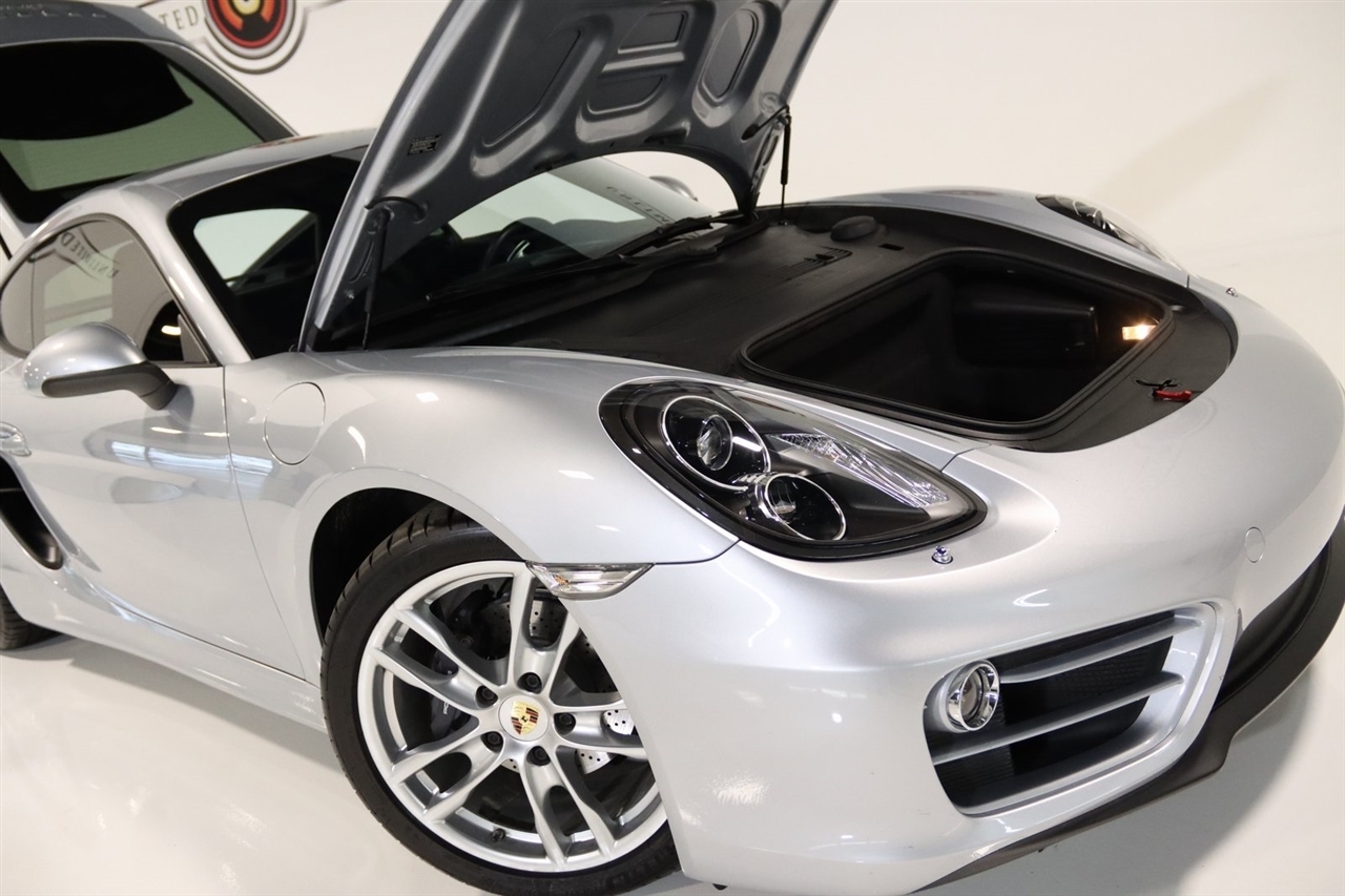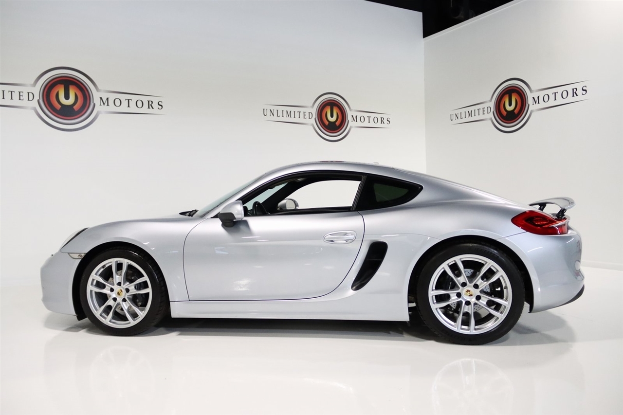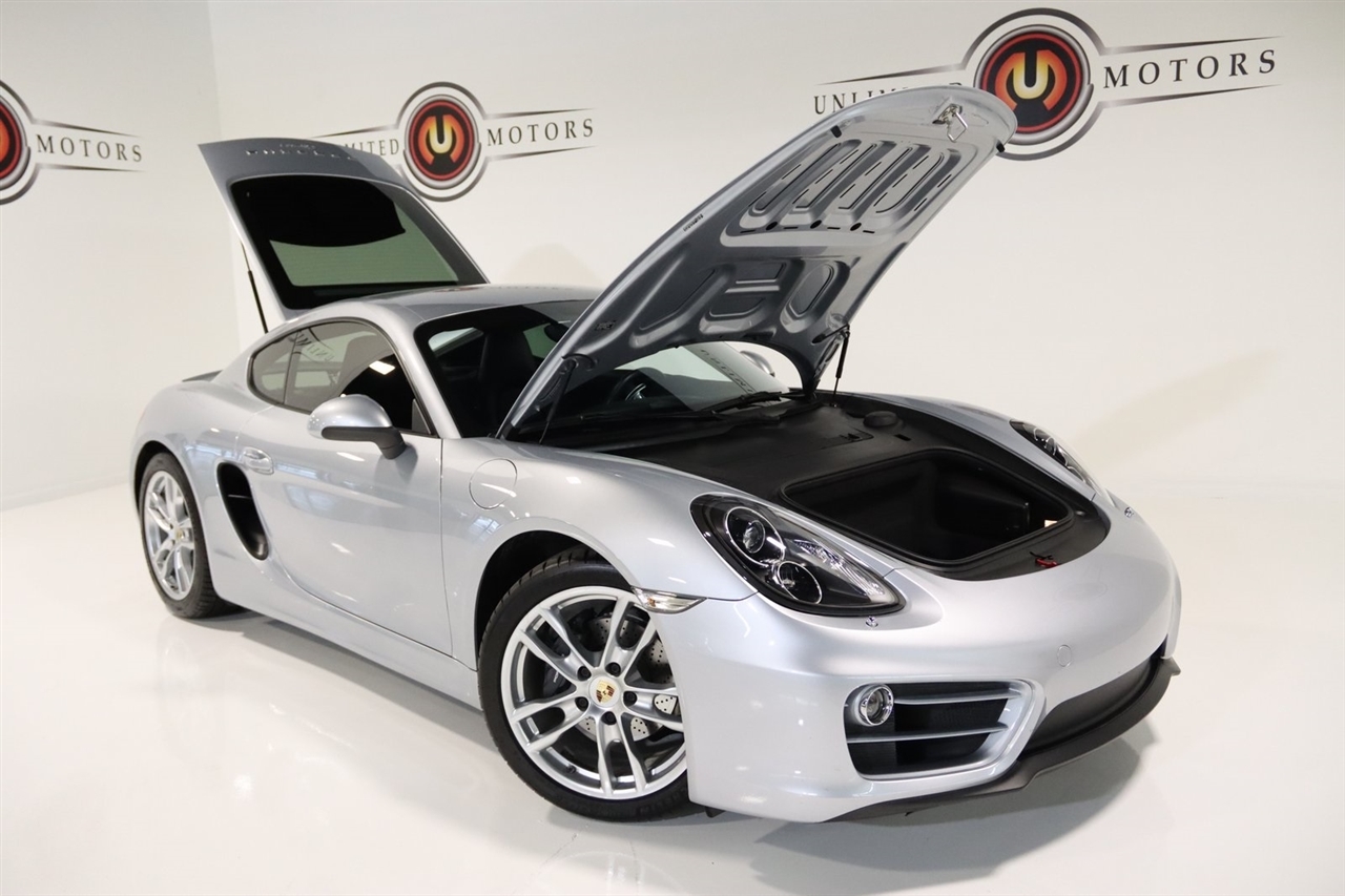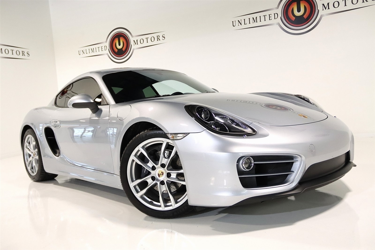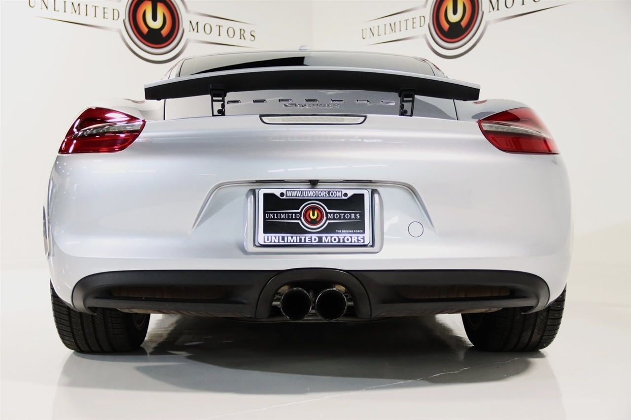 Bluetooth, Back Up Camera, Heated Seats, Touch Screen, 4 Speakers, 4-Wheel Disc Brakes, ABS brakes, Air Conditioning, Alloy wheels, AM/FM radio, Brake assist, Bumpers: body-color, CD player, Driver door bin, Driver vanity mirror, Dual front impact airbags, Dual front side impact airbags, Electronic Stability Control, Four wheel independent suspension, Front anti-roll bar, Front Bucket Seats, Front Center Armrest, Front fog lights, Front reading lights, Garage door transmitter: HomeLink, Heated door mirrors, Illuminated entry, Leather Shift Knob, Leather steering wheel, Low tire pressure warning, Occupant sensing airbag, Outside temperature display, Overhead airbag, Partial Leather Seat Trim, Passenger door bin, Passenger vanity mirror, Power door mirrors, Power driver seat, Power passenger seat, Power steering, Power windows, Radio data system, Radio: CDR Audio System w/Single CD/MP3, Rain sensing wipers, Rear anti-roll bar, Rear fog lights, Rear window defroster, Remote keyless entry, Security system, Speed control, Spoiler, Sport Seats, Tachometer, Telescoping steering wheel, Tilt steering wheel, Traction control, Trip computer, Variably intermittent wipers, Wheels: 8J x 18 Fr & 9J x 18 Rr Cayman Alloy. Clean CARFAX. 20/30 City/Highway MPG Odometer is 46697 miles below market average!2014 GT Silver Metallic Porsche 2D Coupe Cayman RWD 7-Speed Porsche Doppelkupplung (PDK) 2.7L H6 DOHCAwards: * 2014 KBB.com Brand Image AwardsVisit our website www.iumotors.com to view 100s of newer vehicles, more pictures and info, or to apply for financing. Rates are incredibly low for approved credit. We offer extended warranties, protection packages, and insurance. We assure you the best experience at any of our 4 locations and unbeatable prices and quality. At Unlimited Motors we believe in MARKET VALUE PRICING. We use real-time Internet price comparisons to constantly adjust prices to provide ALL BUYERS The BEST PRICE possible. We do not mark them up, to mark them down! Our entire team is committed to helping you buy a car the way we would want to buy a car! We utilize state-of-the-art technology to constantly monitor pricing trends to offer our shoppers the best competitive pricing, value, and experience. We sell and service all makes and models of Pre-owned / Used Vehicles Used Cars, Used Trucks, Used Sport Utility, Lamborghini, Ferrari, Bentley, Rolls Royce, McLaren, Maserati, Ford, Chevrolet/Chevy, Honda, Toyota, Porsche, Land Rover, Jaguar, INFINITI, Audi, Nissan, Mazda, Hyundai, Chrysler, Jeep, Dodge, Ram, SRT, Mitsubishi, Lexus, Kia, Volkswagen, Mini, BMW, Mercedes, Fiat, Volvo, GMC, Cadillac, Lincoln as well as other brands. Proudly serving these areas of Indianapolis, Fishers, Carmel, Noblesville, Greenwood, Avon, Plainfield, Zionsville, & Brownsburg, Indiana, Midwest. We also serve the entire nation with our seamless and easy online purchasing process, and offer shipping nationwide.Advertised prices DO NOT include Sales Tax, Dealer Fees, Title Processing Charges, and Dealer Pre-installed Products.