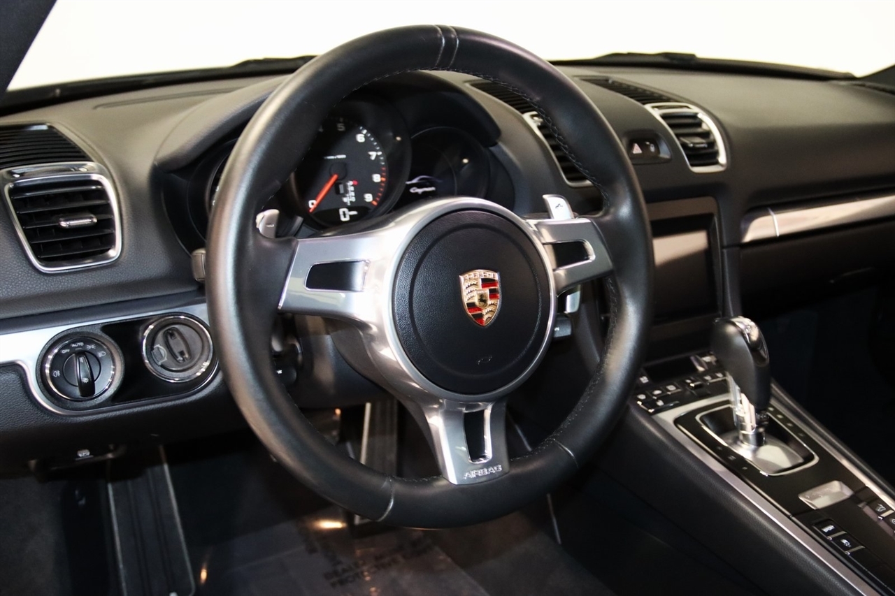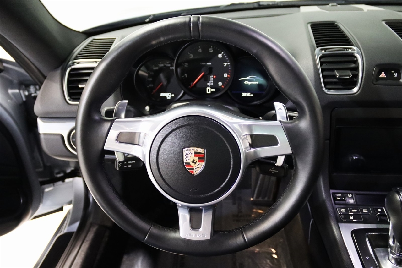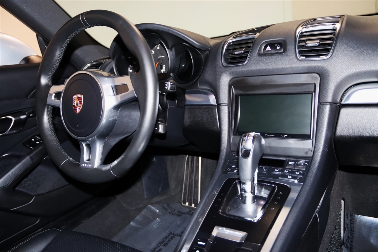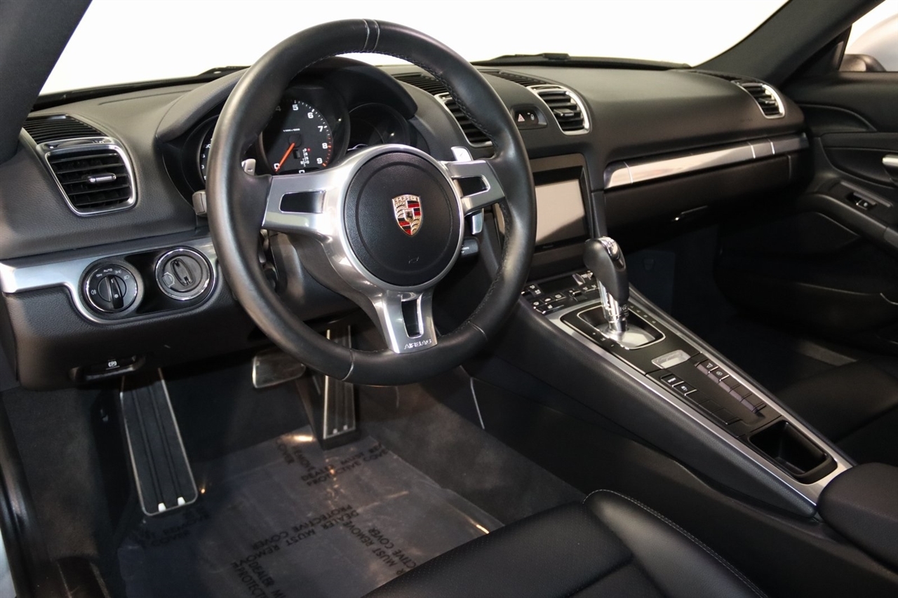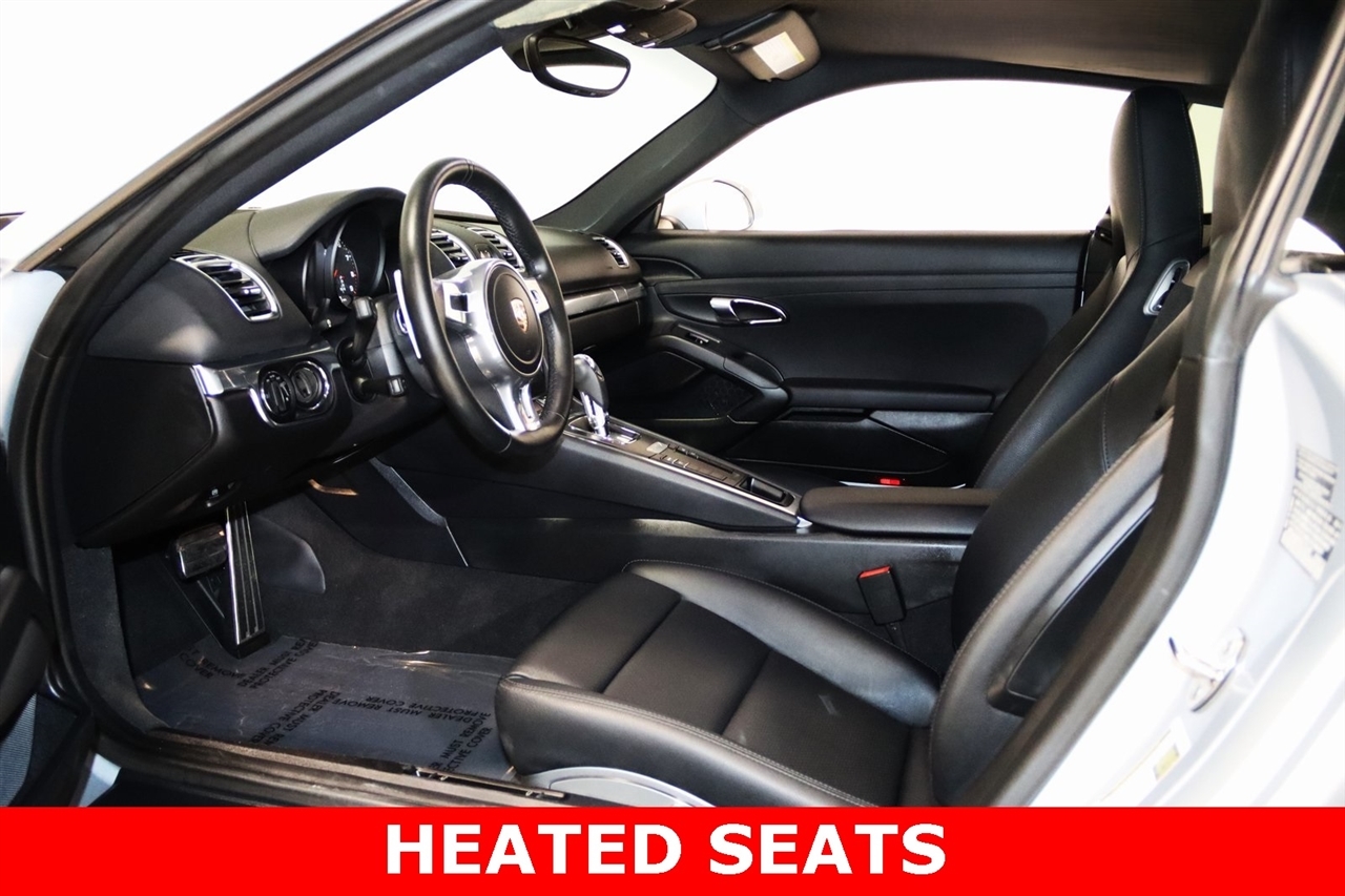 Bluetooth, Back Up Camera, Heated Seats, Touch Screen, 4 Speakers, 4-Wheel Disc Brakes, ABS brakes, Air Conditioning, Alloy wheels, AM/FM radio, Brake assist, Bumpers: body-color, CD player, Driver door bin, Driver vanity mirror, Dual front impact airbags, Dual front side impact airbags, Electronic Stability Control, Four wheel independent suspension, Front anti-roll bar, Front Bucket Seats, Front Center Armrest, Front fog lights, Front reading lights, Garage door transmitter: HomeLink, Heated door mirrors, Illuminated entry, Leather Shift Knob, Leather steering wheel, Low tire pressure warning, Occupant sensing airbag, Outside temperature display, Overhead airbag, Partial Leather Seat Trim, Passenger door bin, Passenger vanity mirror, Power door mirrors, Power driver seat, Power passenger seat, Power steering, Power windows, Radio data system, Radio: CDR Audio System w/Single CD/MP3, Rain sensing wipers, Rear anti-roll bar, Rear fog lights, Rear window defroster, Remote keyless entry, Security system, Speed control, Spoiler, Sport Seats, Tachometer, Telescoping steering wheel, Tilt steering wheel, Traction control, Trip computer, Variably intermittent wipers, Wheels: 8J x 18 Fr & 9J x 18 Rr Cayman Alloy. Clean CARFAX. 20/30 City/Highway MPG Odometer is 46697 miles below market average!2014 GT Silver Metallic Porsche 2D Coupe Cayman RWD 7-Speed Porsche Doppelkupplung (PDK) 2.7L H6 DOHCAwards: * 2014 KBB.com Brand Image AwardsVisit our website www.iumotors.com to view 100s of newer vehicles, more pictures and info, or to apply for financing. Rates are incredibly low for approved credit. We offer extended warranties, protection packages, and insurance. We assure you the best experience at any of our 4 locations and unbeatable prices and quality. At Unlimited Motors we believe in MARKET VALUE PRICING. We use real-time Internet price comparisons to constantly adjust prices to provide ALL BUYERS The BEST PRICE possible. We do not mark them up, to mark them down! Our entire team is committed to helping you buy a car the way we would want to buy a car! We utilize state-of-the-art technology to constantly monitor pricing trends to offer our shoppers the best competitive pricing, value, and experience. We sell and service all makes and models of Pre-owned / Used Vehicles Used Cars, Used Trucks, Used Sport Utility, Lamborghini, Ferrari, Bentley, Rolls Royce, McLaren, Maserati, Ford, Chevrolet/Chevy, Honda, Toyota, Porsche, Land Rover, Jaguar, INFINITI, Audi, Nissan, Mazda, Hyundai, Chrysler, Jeep, Dodge, Ram, SRT, Mitsubishi, Lexus, Kia, Volkswagen, Mini, BMW, Mercedes, Fiat, Volvo, GMC, Cadillac, Lincoln as well as other brands. Proudly serving these areas of Indianapolis, Fishers, Carmel, Noblesville, Greenwood, Avon, Plainfield, Zionsville, & Brownsburg, Indiana, Midwest. We also serve the entire nation with our seamless and easy online purchasing process, and offer shipping nationwide.Advertised prices DO NOT include Sales Tax, Dealer Fees, Title Processing Charges, and Dealer Pre-installed Products.