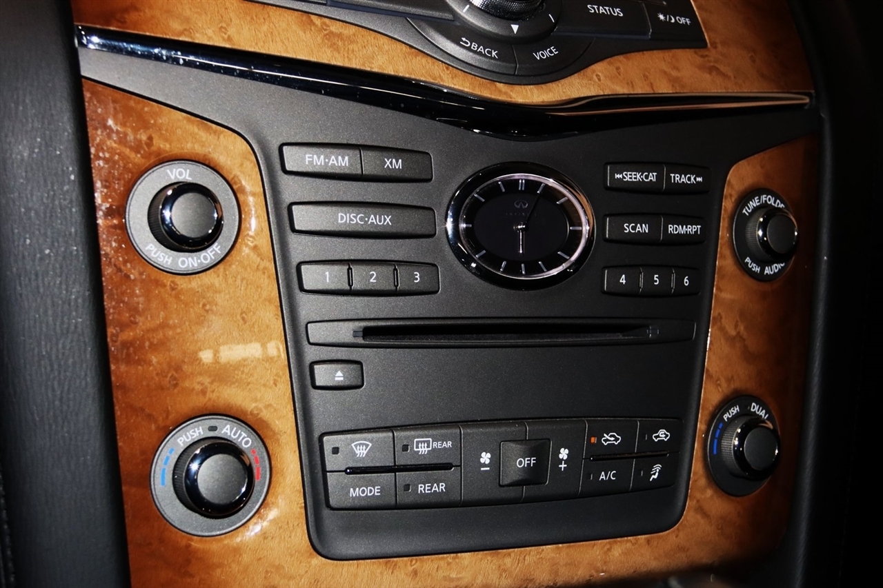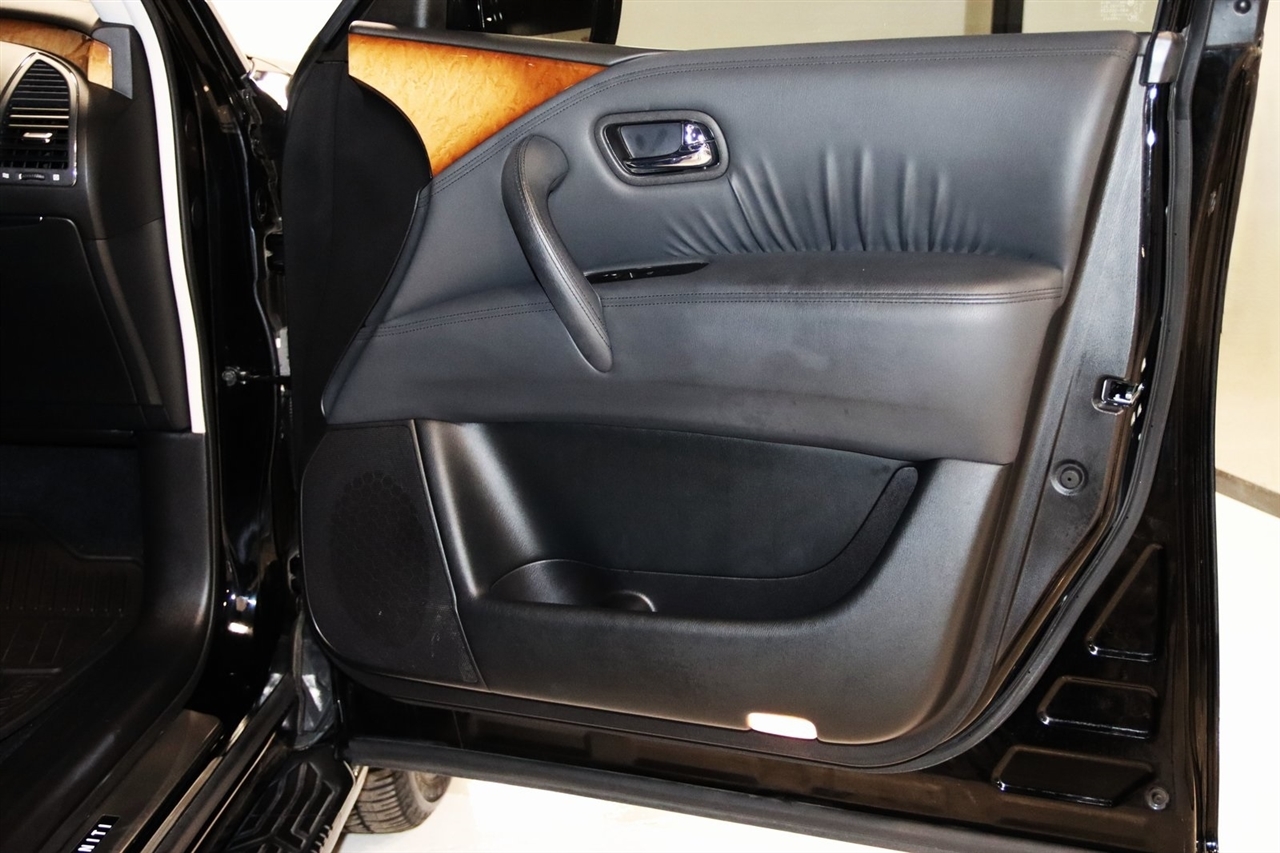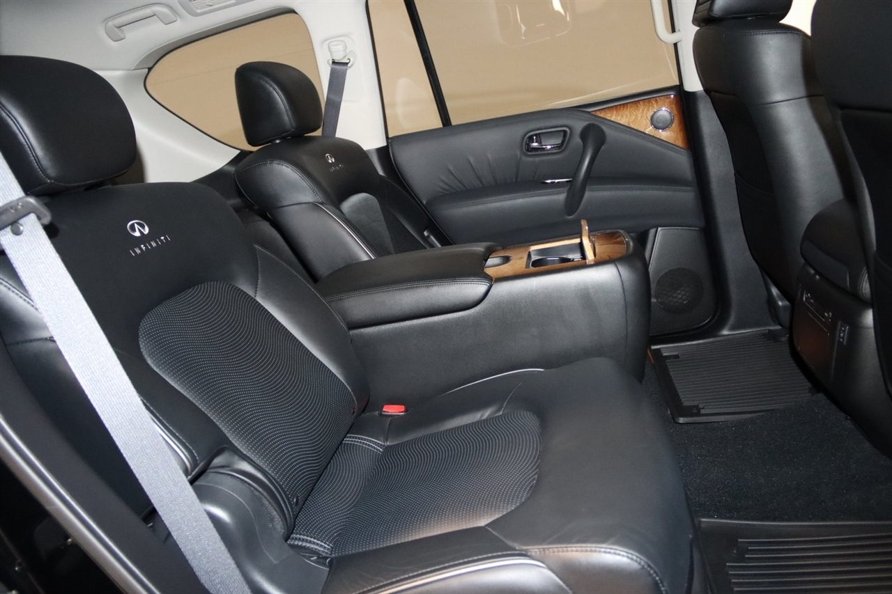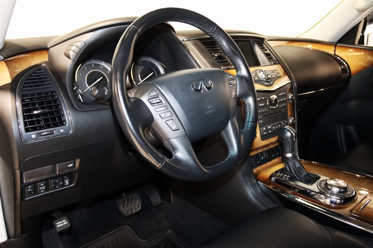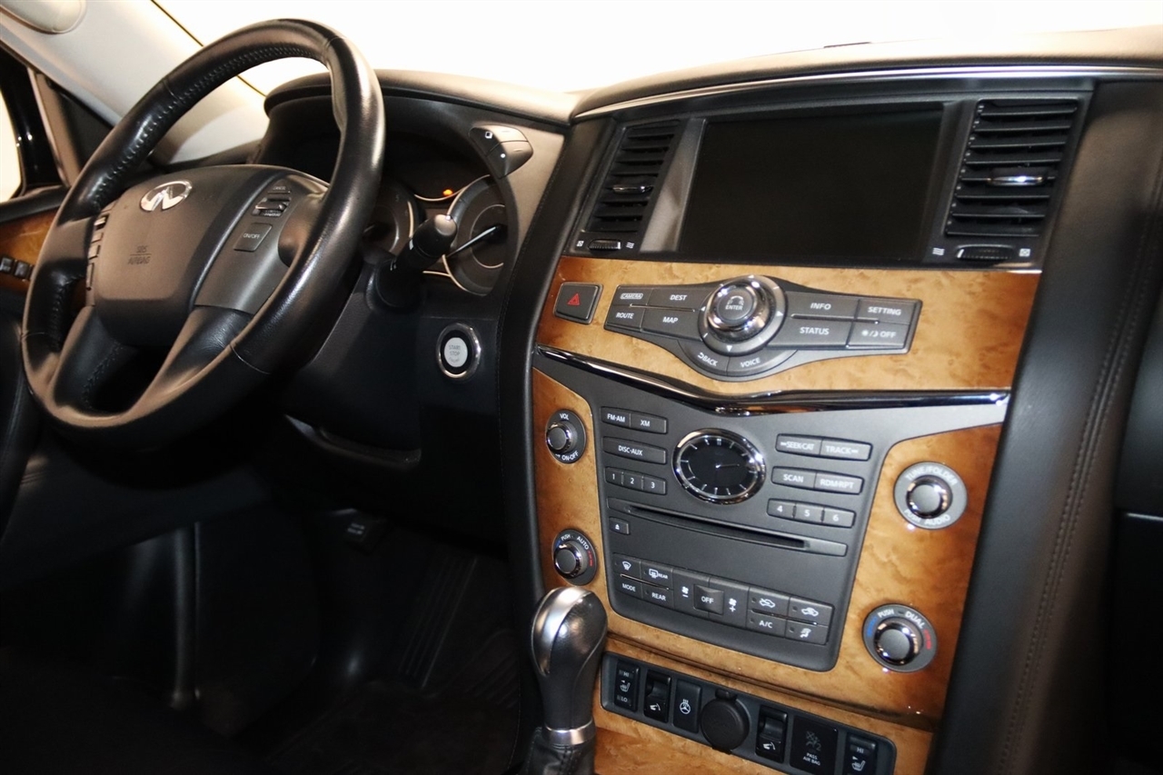Navigation, Bluetooth, Back Up Camera, Entertainment, Sun/Moon Roof, 3rd Row, Heated Seats, Touch Screen, 120V Power Outlet, 13 Speakers, 2.937 Axle Ratio, 22 x 8.0 9-Spoke Forged Aluminum Alloy Wheels, 3rd row seats: split-bench, 4-Wheel Disc Brakes, ABS brakes, Air Conditioning, Alloy wheels, AM/FM radio: XM, Anti-whiplash front head restraints, Auto tilt-away steering wheel, Auto-dimming door mirrors, Auto-dimming Rear-View mirror, Auto-leveling suspension, Automatic temperature control, Brake assist, Bumpers: body-color, Carpeted Cargo Mat/Cargo Net & First Aid Kit, CD player, Delay-off headlights, Driver door bin, Driver vanity mirror, Driver's Seat Mounted Armrest, Dual 7 Color Monitors, Dual front impact airbags, Dual front side impact airbags, Electronic Stability Control, Exterior Parking Camera Rear, Four wheel independent suspension, Front anti-roll bar, Front Bucket Seats, Front Center Armrest, Front dual zone A/C, Front fog lights, Front reading lights, Fully automatic headlights, Garage door transmitter: HomeLink, Genuine wood console insert, Genuine wood dashboard insert, Genuine wood door panel insert, Heated 2nd-Row Seats, Heated door mirrors, Heated Front Bucket Seats, Heated front seats, Heated steering wheel, High intensity discharge headlights: Bi-Xenon, Illuminated entry, Illuminated Kick Plates, Leather Shift Knob, Leather steering wheel, Leather-Appointed Seat Trim w/Tuscan Burl, Low tire pressure warning, Memory seat, Navigation System, Occupant sensing airbag, Outside temperature display, Overhead airbag, Overhead console, Panic alarm, Passenger door bin, Passenger seat mounted armrest, Passenger vanity mirror, Power door mirrors, Power driver seat, Power Liftgate, Power moonroof, Power passenger seat, Power steering, Power windows, Radio data system, Radio: Bose Premium Sound System w/XM Satellite, Rain sensing wipers, Rear air conditioning, Rear anti-roll bar, Rear audio controls, Rear reading lights, Rear seat center armrest, Rear window defroster, Rear window wiper, Reclining 3rd row seat, Remote keyless entry, Roof rack: rails only, Roof Rail Crossbars, Security system, Speed control, Speed-sensing steering, Split folding rear seat, Spoiler, Stainless Steel Rear Bumper Protector, Steering wheel memory, Steering wheel mounted audio controls, Tachometer, Telescoping steering wheel, Theater Package, Tilt steering wheel, Tire and Wheel Package, Traction control, Trip computer, Turn signal indicator mirrors, Variably intermittent wipers, Voltmeter, Wireless Headphones (2). CARFAX One-Owner. Clean CARFAX. Odometer is 104483 miles below market average!2012 Black Obsidian INFINITI 4D Sport Utility QX56 AWD 7-Speed Automatic 5.6L V8 DOHC 32VAwards: * JD Power APEAL StudyVisit our website www.iumotors.com to view 100s of newer vehicles, more pictures and info, or to apply for financing. Rates are incredibly low for approved credit. We offer extended warranties, protection packages, and insurance. We assure you the best experience at any of our 4 locations and unbeatable prices and quality. At Unlimited Motors we believe in MARKET VALUE PRICING. We use real-time Internet price comparisons to constantly adjust prices to provide ALL BUYERS The BEST PRICE possible. We do not mark them up, to mark them down! Our entire team is committed to helping you buy a car the way we would want to buy a car! We utilize state-of-the-art technology to constantly monitor pricing trends to offer our shoppers the best competitive pricing, value, and experience. We sell and service all makes and models of Pre-owned / Used Vehicles Used Cars, Used Trucks, Used Sport Utility, Lamborghini, Ferrari, Bentley, Rolls Royce, McLaren, Maserati, Ford, Chevrolet/Chevy, Honda, Toyota, Porsche, Land Rover, Jaguar, INFINITI, Audi, Nissan, Mazda, Hyundai, Chrysler, Jeep, Dodge, Ram, SRT, Mitsubishi, Lexus, Kia, Volkswagen, Mini, BMW, Mercedes, Fiat, Volvo, GMC, Cadillac, Lincoln as well as other brands. P