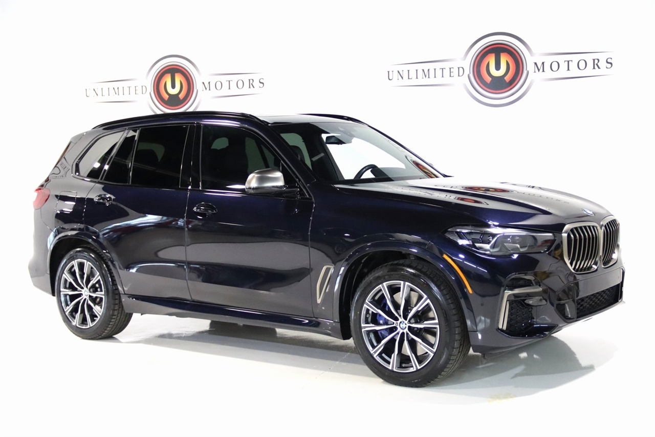 Navigation, Bluetooth, Back Up Camera, Panoramic Roof, Heated Seats, Touch Screen, 16 Speakers, 3.154 Axle Ratio, 4-Wheel Disc Brakes, ABS brakes, Active Park Distance Control, Adaptive suspension, Air Conditioning, Alloy wheels, AM/FM radio: SiriusXM with 360L, AM/FM Stereo, Auto High-beam Headlights, Auto tilt-away steering wheel, Auto-dimming door mirrors, Auto-dimming Rear-View mirror, Automatic temperature control, BMW Assist eCall, BMW TeleServices, Brake assist, Bumpers: body-color, Carbon Fiber Trim, Climate Comfort Package, Compass, Connected Package Pro, ConnectedDrive Services, Delay-off headlights, Drive Recorder, Driver door bin, Driver vanity mirror, Dual front impact airbags, Dual front side impact airbags, Electronic Stability Control, Emergency communication system: BMW Assist eCall, Exterior Parking Camera Rear, Four wheel independent suspension, Front & Rear Heated Seats, Front anti-roll bar, Front Bucket Seats, Front Center Armrest, Front dual zone A/C, Front reading lights, Front Ventilated Seats, Fully automatic headlights, Garage door transmitter, harman/kardon Surround Sound System, harman/kardon Speakers, Head restraints memory, Head-Up Display, Heated door mirrors, Heated Front Seats, Heated front seats, Heated Front Seats w/Armrests & Steering Wheel, Illuminated entry, Knee airbag, Leather Shift Knob, Leather steering wheel, Live Cockpit Pro w/Navigation, Low tire pressure warning, Memory seat, Multi-Contour Seats, Navigation System, Occupant sensing airbag, Outside temperature display, Overhead airbag, Panic alarm, Parking Assistance Package, Parking Assistant Plus, Passenger door bin, Passenger vanity mirror, Power adjustable front head restraints, Power door mirrors, Power driver seat, Power moonroof, Power passenger seat, Power steering, Power windows, Radio data system, Rain sensing wipers, Rear air conditioning, Rear anti-roll bar, Rear dual zone A/C, Rear reading lights, Rear seat center armrest, Rear window defroster, Rear window wiper, Rear-View Camera, Remote keyless entry, Security system, Sensafin Upholstery, SiriusXM Satellite Radio, Speed control, Speed-sensing steering, Speed-Sensitive Wipers, Split folding rear seat, Spoiler, Sport steering wheel, Steering wheel mounted audio controls, Surround View w/3D View, Tachometer, Telescoping steering wheel, Tilt steering wheel, Traction control, Trip computer, Turn signal indicator mirrors, Variably intermittent wipers, Ventilated front seats, Wheels: 20 x 9 M Star-Spoke Bi-Color, WiFi Hotspot, Wireless Charging. CARFAX One-Owner. Priced below KBB Fair Purchase Price!2023 Carbon Black Metallic BMW 4D Sport Utility X5 M50i AWD 8-Speed Automatic Sport 4.4L V8 DOHC 32V Twin TurbochargedVisit our website www.iumotors.com to view 100s of newer vehicles, more pictures and info, or to apply for financing. Rates are incredibly low for approved credit. We offer extended warranties, protection packages, and insurance. We assure you the best experience at any of our 4 locations and unbeatable prices and quality. At Unlimited Motors we believe in MARKET VALUE PRICING. We use real-time Internet price comparisons to constantly adjust prices to provide ALL BUYERS The BEST PRICE possible. We do not mark them up, to mark them down! Our entire team is committed to helping you buy a car the way we would want to buy a car! We utilize state-of-the-art technology to constantly monitor pricing trends to offer our shoppers the best competitive pricing, value, and experience. We sell and service all makes and models of Pre-owned / Used Vehicles Used Cars, Used Trucks, Used Sport Utility, Lamborghini, Ferrari, Bentley, Rolls Royce, McLaren, Maserati, Ford, Chevrolet/Chevy, Honda, Toyota, Porsche, Land Rover, Jaguar, INFINITI, Audi, Nissan, Mazda, Hyundai, Chrysler, Jeep, Dodge, Ram, SRT, Mitsubishi, Lexus, Kia, Volkswagen, Mini, BMW, Mercedes, Fiat, Volvo, GMC, Cadillac, Lincoln as well as other brands. Proudly serving these areas of Ind