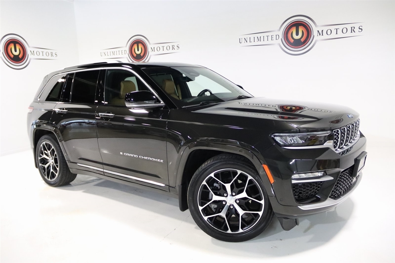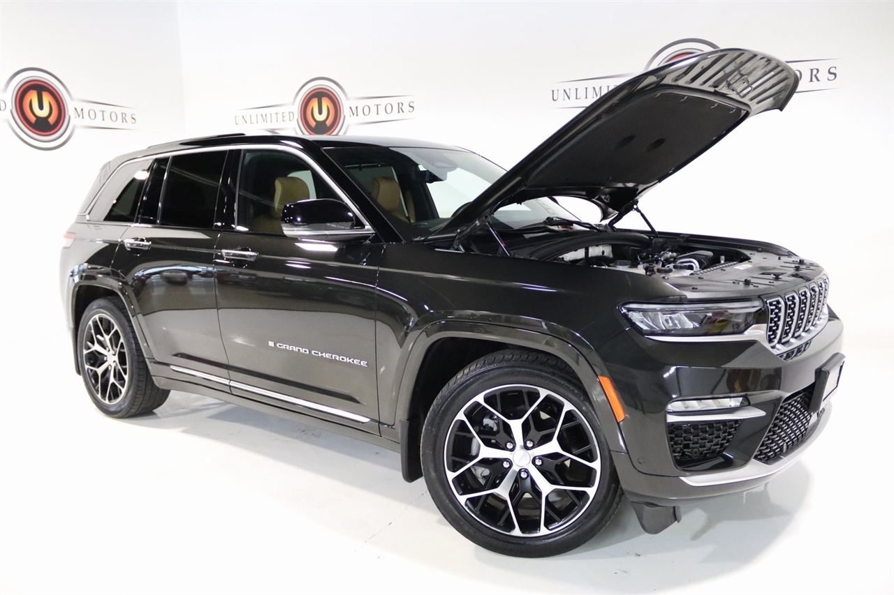 Navigation, Bluetooth, Back Up Camera, Entertainment, Sun/Moon Roof, Heated Seats, Touch Screen, 19 Speakers, 2nd-Row Manual Window Shades, 3.70 Rear Axle Ratio, 4-Wheel Disc Brakes, ABS brakes, Adaptive suspension, Advanced Protech Group IV, Air Conditioning, Alloy wheels, AM/FM radio: SiriusXM with 360L, Amazon Fire TV Built-In, Anti-whiplash front head restraints, Audio memory, Auto High-beam Headlights, Auto-dimming door mirrors, Auto-dimming Rear-View mirror, Auto-leveling suspension, Automatic temperature control, Brake assist, Bumpers: body-color, Compass, Delay-off headlights, Deluxe Headliner, Driver door bin, Driver vanity mirror, Dual front impact airbags, Dual front side impact airbags, Electronic Stability Control, Four wheel independent suspension, Front anti-roll bar, Front Bucket Seats, Front Center Armrest w/Storage, Front dual zone A/C, Front fog lights, Front reading lights, Fully automatic headlights, Garage door transmitter, Genuine wood dashboard insert, Genuine wood door panel insert, Heads-Up Display, Heated door mirrors, Heated front seats, Heated rear seats, Heated steering wheel, Heavy Duty Suspension, Illuminated entry, Knee airbag, Leather steering wheel, Low tire pressure warning, Luxury Tech Group V, Memory seat, MOPAR Finishing Package, MOPAR Front Splash Guards, MOPAR Paint Protection Film, MOPAR Rear Splash Guards w/Jeep Logo, Nappa Leather Seats, Navigation System, Night Vision/Pedestrian-Animal Detection, Occupant sensing airbag, Outside temperature display, Overhead airbag, Overhead console, Palermo Leather Door Trim, Palermo Leather Seats, Panic alarm, Passenger door bin, Passenger vanity mirror, Power door mirrors, Power driver seat, Power Liftgate, Power moonroof, Power passenger seat, Power steering, Power windows, Quick Order Package 27U Summit Reserve, Radio data system, Radio: Uconnect 5 Nav w/10.1 Display, Rain sensing wipers, Rear air conditioning, Rear anti-roll bar, Rear dual zone A/C, Rear reading lights, Rear seat center armrest, Rear Seat Video Group I, Rear window defroster, Rear window wiper, Rearview Autodim Digital Display Mirror, Remote keyless entry, Seatback Video Screens, Security system, Speed control, Speed-Sensitive Wipers, Split folding rear seat, Spoiler, Steering wheel memory, Steering wheel mounted audio controls, Summit Reserve, Summit Reserve Badge, Tachometer, Telescoping steering wheel, Tilt steering wheel, Traction control, Trip computer, Turn signal indicator mirrors, Two Tone Paint Group, Variably intermittent wipers, Ventilated front seats, Ventilated Rear Seats, Video USB Port, Voltmeter, Wheels: 21 x 9 Machined Face/Painted Aluminum, Wireless Charging Pad. CARFAX One-Owner. Priced below KBB Fair Purchase Price!2023 Rocky Mountain Pearlcoat Jeep 4D Sport Utility Grand Cherokee Summit Reserve 4xe 4WD 8-Speed Automatic 2.0L I4 DOHCVisit our website www.iumotors.com to view 100s of newer vehicles, more pictures and info, or to apply for financing. Rates are incredibly low for approved credit. We offer extended warranties, protection packages, and insurance. We assure you the best experience at any of our 4 locations and unbeatable prices and quality. At Unlimited Motors we believe in MARKET VALUE PRICING. We use real-time Internet price comparisons to constantly adjust prices to provide ALL BUYERS The BEST PRICE possible. We do not mark them up, to mark them down! Our entire team is committed to helping you buy a car the way we would want to buy a car! We utilize state-of-the-art technology to constantly monitor pricing trends to offer our shoppers the best competitive pricing, value, and experience. We sell and service all makes and models of Pre-owned / Used Vehicles Used Cars, Used Trucks, Used Sport Utility, Lamborghini, Ferrari, Bentley, Rolls Royce, McLaren, Maserati, Ford, Chevrolet/Chevy, Honda, Toyota, Porsche, Land Rover, Jaguar, INFINITI, Audi, Nissan, Mazda, Hyundai, Chrysler, Jeep, Dodge, Ram, SRT, Mitsubishi, Lex