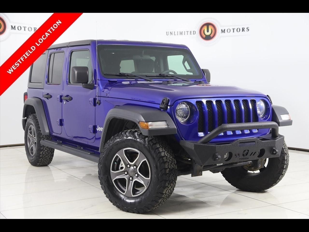 2018 Jeep Wrangler Ocean Blue Metallic Clearcoat Now Available at Unlimited Motors Westfield! With over 20 years in business and 4 Indiana locations, Unlimited Motors is known for offering high-quality, hand-selected vehicles at excellent pricing with outstanding customer service. Our inventory of over 1,000 vehicles includes major makes such as Ford, Chevrolet, Ram, Jeep, GMC, Dodge, BMW, Mercedes-Benz, Audi, Cadillac, Porsche, Maserati, Ferrari, and Lamborghini, giving customers one of the largest selections of quality vehicles in the Midwest. Vehicle Highlights:Back Up Camera, Bluetooth, Sun/Moon Roof, Running Boards, Heated Seats, Winch, Touch Screen, Heated Steering Wheel, Wrangler Unlimited Sport S, 4D Sport Utility, 3.6L V6 24V VVT, 6-Speed Manual, 4WD, Ocean Blue Metallic Clearcoat, Black Cloth, Automatic Headlamps, Cold Weather Group, Convenience Group, Deep Tint Sunscreen Windows, Front 1-Touch Down Power Windows, Heated Front Seats, Heated Steering Wheel, Leather Wrapped Steering Wheel, Power Heated Mirrors, Quick Order Package 23S Sport S, Remote Keyless Entry, Security Alarm, Speed Sensitive Power Locks, Sun Visors w/Illuminated Vanity Mirrors, Universal Garage Door Opener, Wheels: 17 x 7.5 Tech Silver Aluminum.Visit www.iumotors.com to explore our full inventory of over 1,000 hand-picked vehicles across our Westfield, Fishers, Noblesville, and Elwood locations. At Unlimited Motors, we offer a premium car-buying experience with competitive financing through local credit unions and national lenders, top trade-in values, full auto repair and maintenance services for customer vehicles, and nationwide shipping to all 50 states. Youll also find many of the most searched and in-demand models, including Ford F-150, Chevrolet Silverado, Ram 1500, Jeep Wrangler, Jeep Grand Cherokee, Chevrolet Tahoe, Chevrolet Suburban, GMC Yukon, GMC Sierra, Dodge Charger, Dodge Durango, Ford Explorer, BMW X5, BMW X3, BMW 3 Series, Mercedes-Benz GLE, Mercedes-Benz GLC, Cadillac Escalade, Audi Q5, Audi Q7, Porsche Cayenne, Porsche Macan, Maserati Ghibli, and more. Whether youre visiting from Westfield, Indianapolis, Carmel, Fishers, Noblesville, Zionsville, Greenwood, Lawrence, Brownsburg, Avon, Plainfield, Lebanon, Anderson, Muncie, Kokomo, Lafayette, Bloomington, Columbus, or anywhere across Central and Northern Indiana, we are here to help you find the perfect vehicle with exceptional service and unbeatable value. Call us today at 317-896-4488 1470 W Tournament Trl, Westfield, IN 46074. Disclaimer: Advertised prices DO NOT include Sales Tax, Dealer Fees, Title Processing Charges, and Dealer Pre-installed Products.