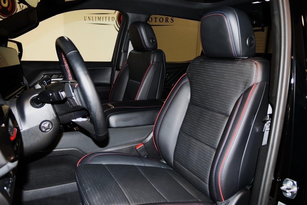 Navigation, Bluetooth, Back Up Camera, Panoramic Roof, Towing, Heated Seats, Touch Screen, 12-Way Power Driver Seat Adjuster w/Lumbar, 12-Way Power Passenger Seat Adjuster w/Lumbar, 4-Wheel Disc Brakes, 7 Speakers, ABS brakes, Adaptive suspension, Air Conditioning, Alloy wheels, AM/FM radio: SiriusXM, Auto High-beam Headlights, Auto-dimming door mirrors, Auto-dimming Rear-View mirror, Auto-leveling suspension, Automatic temperature control, Axle Ratio: TBD, Bose Premium 7-Speaker Audio System, Brake assist, Delay-off headlights, Driver & Front Passenger Ventilated Seats, Driver door bin, Driver vanity mirror, Dual front impact airbags, Dual front side impact airbags, Electronic Stability Control, Evotex Seat Trim, Four wheel independent suspension, Front & Rear Adaptive Air Ride Suspension, Front anti-roll bar, Front Bucket Seats, Front Center Armrest w/Storage, Front dual zone A/C, Front reading lights, Fully automatic headlights, Garage door transmitter, Heads-Up Display, Heated door mirrors, Heated Front Driver & Passenger Seats, Heated front seats, Heated rear seats, Heated steering wheel, Lane Departure Warning System, Low tire pressure warning, Memory seat, Navigation System, Occupant sensing airbag, Outside temperature display, Overhead airbag, Overhead console, Panic alarm, Passenger door bin, Passenger vanity mirror, Power door mirrors, Power driver seat, Power passenger seat, Power steering, Power windows, Preferred Equipment Group 3SP, Radio data system, Radio: 17.7 Diagonal Advanced Color LCD Display, Rain sensing wipers, Rear reading lights, Rear seat center armrest, Rear step bumper, Rear window defroster, Remote keyless entry, Security system, SiriusXM Radio, Speed control, Speed-sensing steering, Split folding rear seat, Sport steering wheel, Steering wheel memory, Steering wheel mounted audio controls, Telescoping steering wheel, Tilt steering wheel, Traction control, Trip computer, Variably intermittent wipers, Ventilated front seats, Wheels: 24 x 9.0 Carbon Flash Metallic Aluminum. CARFAX One-Owner. Clean CARFAX. 72/62 City/Highway MPG2024 Black Metallic Chevrolet 4D Crew Cab Silverado EV RST AWD 1-Speed Automatic Electric ZEV 760hpVisit our website www.iumotors.com to view 100s of newer vehicles, more pictures and info, or to apply for financing. Rates are incredibly low for approved credit. We offer extended warranties, protection packages, and insurance. We assure you the best experience at any of our 4 locations and unbeatable prices and quality. At Unlimited Motors we believe in MARKET VALUE PRICING. We use real-time Internet price comparisons to constantly adjust prices to provide ALL BUYERS The BEST PRICE possible. We do not mark them up, to mark them down! Our entire team is committed to helping you buy a car the way we would want to buy a car! We utilize state-of-the-art technology to constantly monitor pricing trends to offer our shoppers the best competitive pricing, value, and experience. We sell and service all makes and models of Pre-owned / Used Vehicles Used Cars, Used Trucks, Used Sport Utility, Lamborghini, Ferrari, Bentley, Rolls Royce, McLaren, Maserati, Ford, Chevrolet/Chevy, Honda, Toyota, Porsche, Land Rover, Jaguar, INFINITI, Audi, Nissan, Mazda, Hyundai, Chrysler, Jeep, Dodge, Ram, SRT, Mitsubishi, Lexus, Kia, Volkswagen, Mini, BMW, Mercedes, Fiat, Volvo, GMC, Cadillac, Lincoln as well as other brands. Proudly serving these areas of Indianapolis, Fishers, Carmel, Noblesville, Greenwood, Avon, Plainfield, Zionsville, & Brownsburg, Indiana, Midwest. We also serve the entire nation with our seamless and easy online purchasing process, and offer shipping nationwide.Advertised prices DO NOT include Sales Tax, Dealer Fees, Title Processing Charges, and Dealer Pre-installed Products.