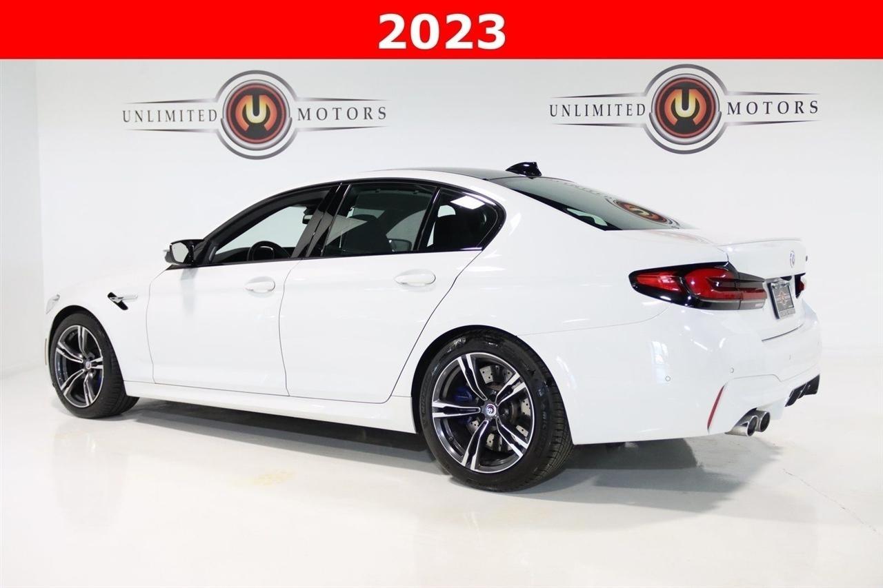 Navigation, Bluetooth, Back Up Camera, Heated Seats, Touch Screen, 16 Speakers, 4-Wheel Disc Brakes, ABS brakes, Active Park Distance Control, Adaptive suspension, Air Conditioning, Alloy wheels, AM/FM radio: SiriusXM, Apple CarPlay & Android Auto Compatibility, Auto High-beam Headlights, Auto tilt-away steering wheel, Auto-dimming door mirrors, Auto-dimming Rear-View mirror, Automatic temperature control, BMW Assist eCall, BMW TeleServices, Brake assist, Bumpers: body-color, Connected Package Pro, ConnectedDrive Services, Delay-off headlights, Driver door bin, Driver vanity mirror, Dual front impact airbags, Dual front side impact airbags, Electronic Stability Control, Emergency communication system: BMW Assist eCall, Executive Package, Extended Merino Leather Upholstery, Exterior Parking Camera Rear, Four wheel independent suspension, Front & Rear Heated Seats, Front anti-roll bar, Front Bucket Seats, Front Center Armrest, Front dual zone A/C, Front Massaging Seats, Front reading lights, Front Ventilated Seats, Fully automatic headlights, Garage door transmitter, Gesture Control, harman/kardon Surround Sound System, harman/kardon Speakers, Heads-Up Display, Heated door mirrors, Heated Front Seats, Heated front seats, Heated steering wheel, Illuminated entry, Leather Shift Knob, Leather steering wheel, Live Cockpit Pro w/Navi, Low tire pressure warning, Memory seat, Multi-Function Seats w/Lumbar Support, Navigation System, Occupant sensing airbag, Outside temperature display, Overhead airbag, Panic alarm, Parking Assistant Plus, Passenger door bin, Passenger vanity mirror, Power door mirrors, Power driver seat, Power Front Seats, Power passenger seat, Power Rear Sunshade & Rear Side Window Shades, Power steering, Power windows, Radio data system, Radio: AM/FM Audio System, Rain sensing wipers, Rear air conditioning, Rear anti-roll bar, Rear dual zone A/C, Rear reading lights, Rear seat center armrest, Rear window defroster, Rear-View Camera, Remote keyless entry, Security system, SiriusXM Satellite Radio w/1 Year Subscription, Soft-Close Automatic Doors, Speed control, Speed-sensing steering, Speed-Sensitive Wipers, Split folding rear seat, Spoiler, Sport steering wheel, Steering wheel memory, Steering wheel mounted audio controls, Surround View w/3D View, Tachometer, Telescoping steering wheel, Tilt steering wheel, Traction control, Trip computer, Turn signal indicator mirrors, Variably intermittent wipers, Wheels: 19 x 9.5 Fr & 19 x 10.5 Rr Bi-Color, WiFi Hotspot, Wireless Charging. Clean CARFAX.2023 Alpine White BMW 4D Sedan M5 AWD 8-Speed Automatic Sport 4.4L V8 Turbocharged DOHC 32V LEV3-ULEV125 600hpVisit our website www.iumotors.com to view 100s of newer vehicles, more pictures and info, or to apply for financing. Rates are incredibly low for approved credit. We offer extended warranties, protection packages, and insurance. We assure you the best experience at any of our 4 locations and unbeatable prices and quality. At Unlimited Motors we believe in MARKET VALUE PRICING. We use real-time Internet price comparisons to constantly adjust prices to provide ALL BUYERS The BEST PRICE possible. We do not mark them up, to mark them down! Our entire team is committed to helping you buy a car the way we would want to buy a car! We utilize state-of-the-art technology to constantly monitor pricing trends to offer our shoppers the best competitive pricing, value, and experience. We sell and service all makes and models of Pre-owned / Used Vehicles Used Cars, Used Trucks, Used Sport Utility, Lamborghini, Ferrari, Bentley, Rolls Royce, McLaren, Maserati, Ford, Chevrolet/Chevy, Honda, Toyota, Porsche, Land Rover, Jaguar, INFINITI, Audi, Nissan, Mazda, Hyundai, Chrysler, Jeep, Dodge, Ram, SRT, Mitsubishi, Lexus, Kia, Volkswagen, Mini, BMW, Mercedes, Fiat, Volvo, GMC, Cadillac, Lincoln as well as other brands. Proudly serving these areas of Indianapolis, Fishers, Carmel, Noblesville, Greenwood, Avon, Pl
