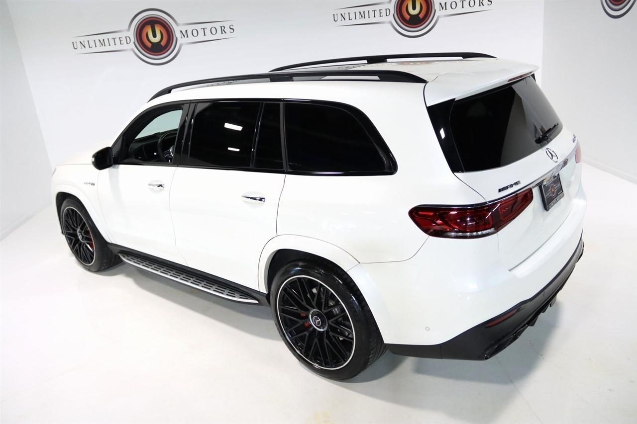 Navigation, Bluetooth, Back Up Camera, Panoramic Roof, 3rd Row, Towing, Heated Seats, Touch Screen, 13 Speakers, 3rd row seats: split-bench, 4-Wheel Disc Brakes, 7-Seat Configuration, ABS brakes, Adaptive suspension, Air Conditioning, Alloy wheels, AM/FM radio: SiriusXM, Apple CarPlay/Android Auto, Auto High-beam Headlights, Auto tilt-away steering wheel, Auto-dimming door mirrors, Auto-dimming Rear-View mirror, Auto-leveling suspension, Automatic temperature control, Axle Ratio: TBD, Brake assist, Bumpers: body-color, Burmester Surround Sound System, Child-Seat-Sensing Airbag, Compass, Delay-off headlights, Door auto-latch, Driver door bin, Driver vanity mirror, Dual front impact airbags, Dual front side impact airbags, Electronic Stability Control, Emergency communication system: eCall Emergency System, Exclusive Nappa Leather Upholstery, Four wheel independent suspension, Front anti-roll bar, Front Bucket Seats, Front Center Armrest w/Storage, Front dual zone A/C, Front reading lights, Fully automatic headlights, Garage door transmitter: HomeLink, Genuine wood console insert, Genuine wood dashboard insert, Genuine wood door panel insert, Head restraints memory, Heated door mirrors, Heated front seats, Heated rear seats, Illuminated entry, Illuminated running boards, Knee airbag, Low tire pressure warning, Memory seat, Multicontour Heated & Ventilated Power Front Seats, Navigation System, Navigation system: MB Navigation, Occupant sensing airbag, Outside temperature display, Overhead airbag, Overhead console, Panic alarm, Passenger door bin, Passenger vanity mirror, Power adjustable front head restraints, Power door mirrors, Power driver seat, Power Liftgate, Power moonroof: Panoramic, Power passenger seat, Power steering, Power windows, Premium audio system: MBUX, Radio: MBUX Multimedia System, Rain sensing wipers, Rear air conditioning, Rear anti-roll bar, Rear dual zone A/C, Rear fog lights, Rear reading lights, Rear seat center armrest, Rear window defroster, Rear window wiper, Remote keyless entry, Roof rack: rails only, Security system, Speed control, Speed-sensing steering, Speed-Sensitive Wipers, Split folding rear seat, Spoiler, Sport steering wheel, Steering wheel memory, Steering wheel mounted audio controls, Tachometer, Telescoping steering wheel, Tilt steering wheel, Traction control, Trip computer, Turn signal indicator mirrors, Variably intermittent wipers, Ventilated front seats, Weather band radio, Wheels: 23 AMG Multi-Spoke Forged, Matte Black. Odometer is 1220 miles below market average!2021 Diamond White Metallic Mercedes-Benz 4D Sport Utility GLS GLS 63 AMG 4MATIC 4MATIC 9-Speed Automatic 4.0L V8Visit our website www.iumotors.com to view 100s of newer vehicles, more pictures and info, or to apply for financing. Rates are incredibly low for approved credit. We offer extended warranties, protection packages, and insurance. We assure you the best experience at any of our 4 locations and unbeatable prices and quality. At Unlimited Motors we believe in MARKET VALUE PRICING. We use real-time Internet price comparisons to constantly adjust prices to provide ALL BUYERS The BEST PRICE possible. We do not mark them up, to mark them down! Our entire team is committed to helping you buy a car the way we would want to buy a car! We utilize state-of-the-art technology to constantly monitor pricing trends to offer our shoppers the best competitive pricing, value, and experience. We sell and service all makes and models of Pre-owned / Used Vehicles Used Cars, Used Trucks, Used Sport Utility, Lamborghini, Ferrari, Bentley, Rolls Royce, McLaren, Maserati, Ford, Chevrolet/Chevy, Honda, Toyota, Porsche, Land Rover, Jaguar, INFINITI, Audi, Nissan, Mazda, Hyundai, Chrysler, Jeep, Dodge, Ram, SRT, Mitsubishi, Lexus, Kia, Volkswagen, Mini, BMW, Mercedes, Fiat, Volvo, GMC, Cadillac, Lincoln as well as other brands. Proudly serving these areas of Indianapolis, Fishers, Carmel, Noblesville