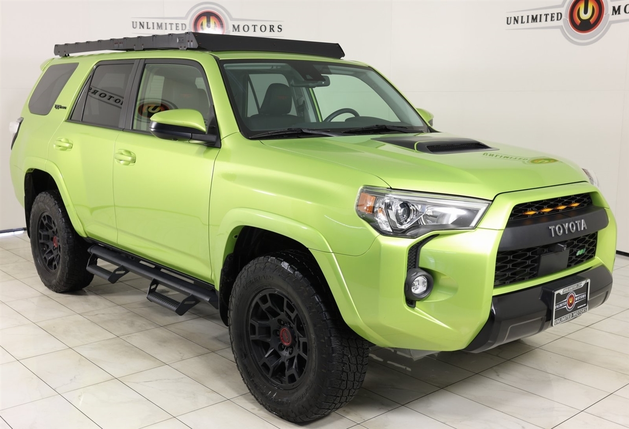 2022 Toyota 4Runner Green Now Available at Unlimited Motors Elwood! With over 20 years in business and 4 Indiana locations, Unlimited Motors is known for offering high-quality, hand-selected vehicles at excellent pricing with outstanding customer service. Our inventory of over 1,000 vehicles includes major makes such as Ford, Chevrolet, Ram, Jeep, GMC, Dodge, BMW, Mercedes-Benz, Audi, Cadillac, Porsche, Maserati, Ferrari, and Lamborghini, giving customers one of the largest selections of quality vehicles in the Midwest. Vehicle Highlights:Navigation, Back Up Camera, Sunroof, Bluetooth, Towing, Touch Screen, Heated Seats, Power Lift Gate, Apple Car Play, Blind Spot, Low Miles, Lane Assist, 4WD, Black/Graphite Artificial Leather.Visit www.iumotors.com to explore our full inventory of over 1,000 hand-picked vehicles across our Westfield, Fishers, Noblesville, and Elwood locations. At Unlimited Motors, we offer a premium car-buying experience with competitive financing through local credit unions and national lenders, top trade-in values, full auto repair and maintenance services for customer vehicles, and nationwide shipping to all 50 states. Youll also find many of the most searched and in-demand models, including Ford F-150, Chevrolet Silverado, Ram 1500, Jeep Wrangler, Jeep Grand Cherokee, Chevrolet Tahoe, Chevrolet Suburban, GMC Yukon, GMC Sierra, Dodge Charger, Dodge Durango, Ford Explorer, BMW X5, BMW X3, BMW 3 Series, Mercedes-Benz GLE, Mercedes-Benz GLC, Cadillac Escalade, Audi Q5, Audi Q7, Porsche Cayenne, Porsche Macan, Maserati Ghibli, and more. Whether youre visiting from Westfield, Indianapolis, Carmel, Fishers, Noblesville, Zionsville, Greenwood, Lawrence, Brownsburg, Avon, Plainfield, Lebanon, Anderson, Muncie, Kokomo, Lafayette, Bloomington, Columbus, or anywhere across Central and Northern Indiana, we are here to help you find the perfect vehicle with exceptional service and unbeatable value. Call us today at 765-557-8817 10083 IN-13, Elwood, IN 46036. Disclaimer: Advertised prices DO NOT include Sales Tax, Dealer Fees, Title Processing Charges, and Dealer Pre-installed Products.