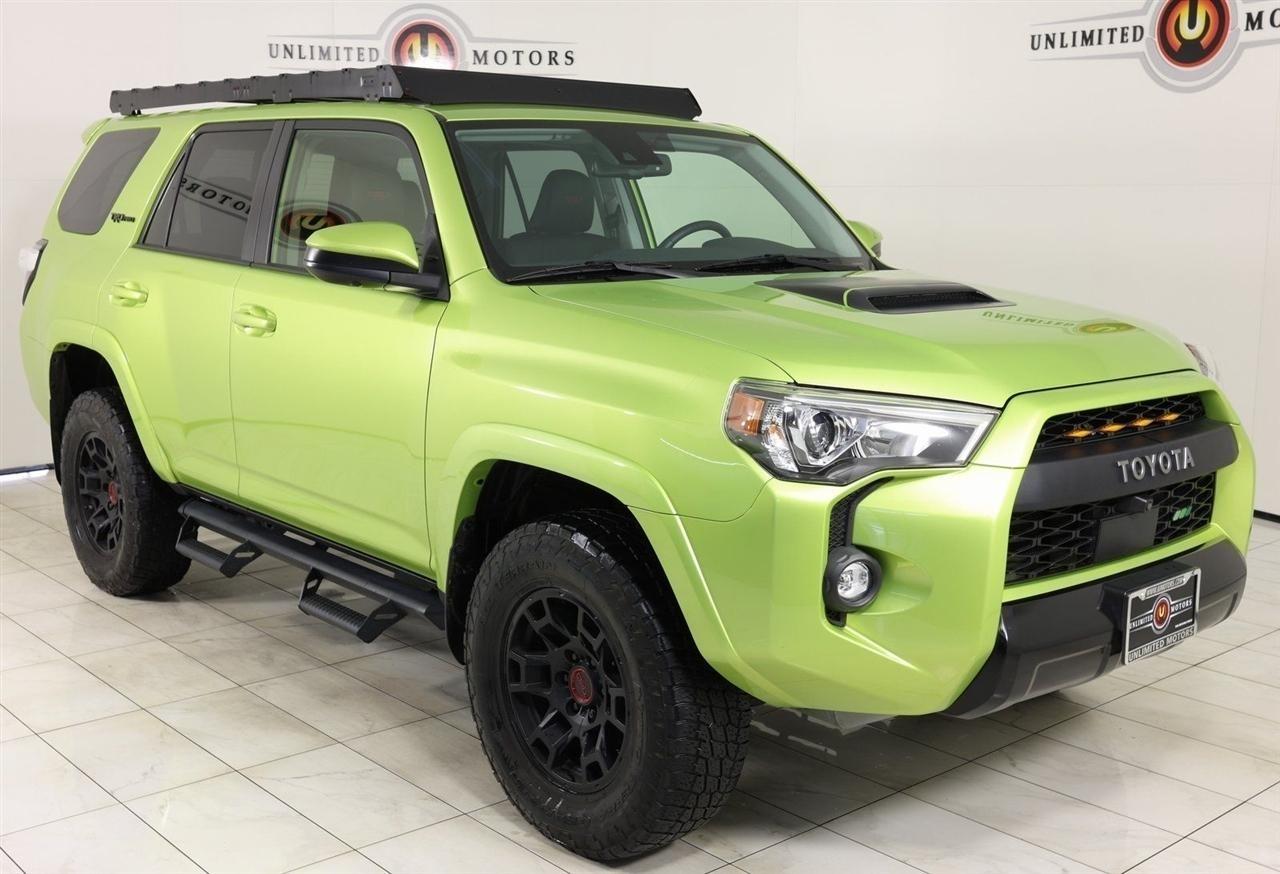 2022 Toyota 4Runner Green Now Available at Unlimited Motors Elwood! With over 20 years in business and 4 Indiana locations, Unlimited Motors is known for offering high-quality, hand-selected vehicles at excellent pricing with outstanding customer service. Our inventory of over 1,000 vehicles includes major makes such as Ford, Chevrolet, Ram, Jeep, GMC, Dodge, BMW, Mercedes-Benz, Audi, Cadillac, Porsche, Maserati, Ferrari, and Lamborghini, giving customers one of the largest selections of quality vehicles in the Midwest. Vehicle Highlights:Navigation, Back Up Camera, Sunroof, Bluetooth, Towing, Touch Screen, Heated Seats, Power Lift Gate, Apple Car Play, Blind Spot, Low Miles, Lane Assist, 4WD, Black/Graphite Artificial Leather.Priced below KBB Fair Purchase Price!Visit www.iumotors.com to explore our full inventory of over 1,000 hand-picked vehicles across our Westfield, Fishers, Noblesville, and Elwood locations. At Unlimited Motors, we offer a premium car-buying experience with competitive financing through local credit unions and national lenders, top trade-in values, full auto repair and maintenance services for customer vehicles, and nationwide shipping to all 50 states. Youll also find many of the most searched and in-demand models, including Ford F-150, Chevrolet Silverado, Ram 1500, Jeep Wrangler, Jeep Grand Cherokee, Chevrolet Tahoe, Chevrolet Suburban, GMC Yukon, GMC Sierra, Dodge Charger, Dodge Durango, Ford Explorer, BMW X5, BMW X3, BMW 3 Series, Mercedes-Benz GLE, Mercedes-Benz GLC, Cadillac Escalade, Audi Q5, Audi Q7, Porsche Cayenne, Porsche Macan, Maserati Ghibli, and more. Whether youre visiting from Westfield, Indianapolis, Carmel, Fishers, Noblesville, Zionsville, Greenwood, Lawrence, Brownsburg, Avon, Plainfield, Lebanon, Anderson, Muncie, Kokomo, Lafayette, Bloomington, Columbus, or anywhere across Central and Northern Indiana, we are here to help you find the perfect vehicle with exceptional service and unbeatable value. Call us today at 765-557-8817 10083 IN-13, Elwood, IN 46036. Disclaimer: Advertised prices DO NOT include Sales Tax, Dealer Fees, Title Processing Charges, and Dealer Pre-installed Products.