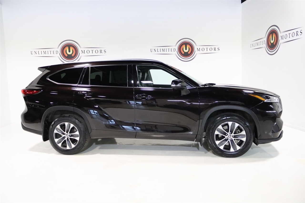 Navigation, Bluetooth, Back Up Camera, Sun/Moon Roof, 3rd Row, Touch Screen, 18 Machined Alloy Wheels, 3.003 Axle Ratio, 3rd row seats: split-bench, 4-Wheel Disc Brakes, 6 Speakers, ABS brakes, Air Conditioning, Alloy wheels, AM/FM radio: SiriusXM, Apple CarPlay/Android Auto, Auto High-beam Headlights, Auto-dimming Rear-View mirror, Automatic temperature control, Brake assist, Bumpers: body-color, Delay-off headlights, Driver door bin, Driver vanity mirror, Dual front impact airbags, Dual front side impact airbags, Electronic Stability Control, Emergency communication system: Safety Connect with 1-year trial, Exterior Parking Camera Rear, Four wheel independent suspension, Front anti-roll bar, Front Bucket Seats, Front Center Armrest, Front dual zone A/C, Front fog lights, Front reading lights, Fully automatic headlights, Garage door transmitter: HomeLink, Heated door mirrors, Heated Front Bucket Seats, Heated front seats, Illuminated entry, Knee airbag, Leather Shift Knob, Low tire pressure warning, Navigation System, Occupant sensing airbag, Outside temperature display, Overhead airbag, Overhead console, Panic alarm, Passenger door bin, Passenger vanity mirror, Power door mirrors, Power driver seat, Power Liftgate, Power moonroof, Power passenger seat, Power steering, Power windows, Radio: Audio Plus, Rear air conditioning, Rear anti-roll bar, Rear reading lights, Rear window defroster, Rear window wiper, Reclining 3rd row seat, Remote keyless entry, Roof rack: rails only, Security system, SofTex Seat Trim, Speed control, Speed-sensing steering, Split folding rear seat, Spoiler, Steering wheel mounted audio controls, Tachometer, Telescoping steering wheel, Tilt steering wheel, Traction control, Trip computer, Turn signal indicator mirrors, Variably intermittent wipers. 20/27 City/Highway MPG2021 Black Toyota 4D Sport Utility Highlander XLE AWD 8-Speed Automatic 3.5L V6 DOHCAwards: * ALG Residual Value Awards, Residual Value AwardsVisit our website www.iumotors.com to view 100s of newer vehicles, more pictures and info, or to apply for financing. Rates are incredibly low for approved credit. We offer extended warranties, protection packages, and insurance. We assure you the best experience at any of our 4 locations and unbeatable prices and quality. At Unlimited Motors we believe in MARKET VALUE PRICING. We use real-time Internet price comparisons to constantly adjust prices to provide ALL BUYERS The BEST PRICE possible. We do not mark them up, to mark them down! Our entire team is committed to helping you buy a car the way we would want to buy a car! We utilize state-of-the-art technology to constantly monitor pricing trends to offer our shoppers the best competitive pricing, value, and experience. We sell and service all makes and models of Pre-owned / Used Vehicles Used Cars, Used Trucks, Used Sport Utility, Lamborghini, Ferrari, Bentley, Rolls Royce, McLaren, Maserati, Ford, Chevrolet/Chevy, Honda, Toyota, Porsche, Land Rover, Jaguar, INFINITI, Audi, Nissan, Mazda, Hyundai, Chrysler, Jeep, Dodge, Ram, SRT, Mitsubishi, Lexus, Kia, Volkswagen, Mini, BMW, Mercedes, Fiat, Volvo, GMC, Cadillac, Lincoln as well as other brands. Proudly serving these areas of Indianapolis, Fishers, Carmel, Noblesville, Greenwood, Avon, Plainfield, Zionsville, & Brownsburg, Indiana, Midwest. We also serve the entire nation with our seamless and easy online purchasing process, and offer shipping nationwide.Advertised prices DO NOT include Sales Tax, Dealer Fees, Title Processing Charges, and Dealer Pre-installed Products.
