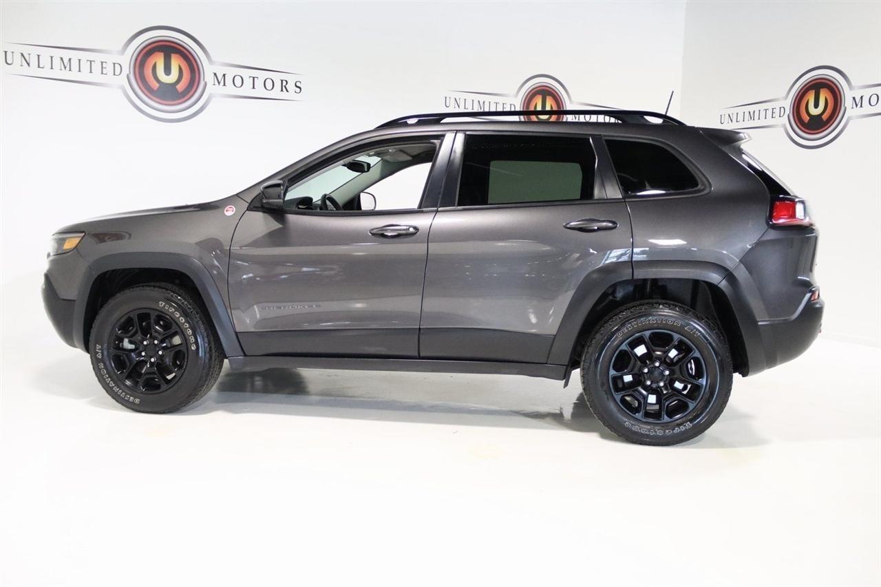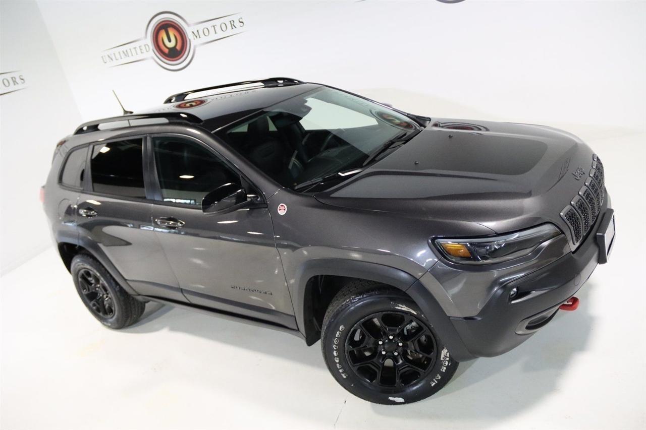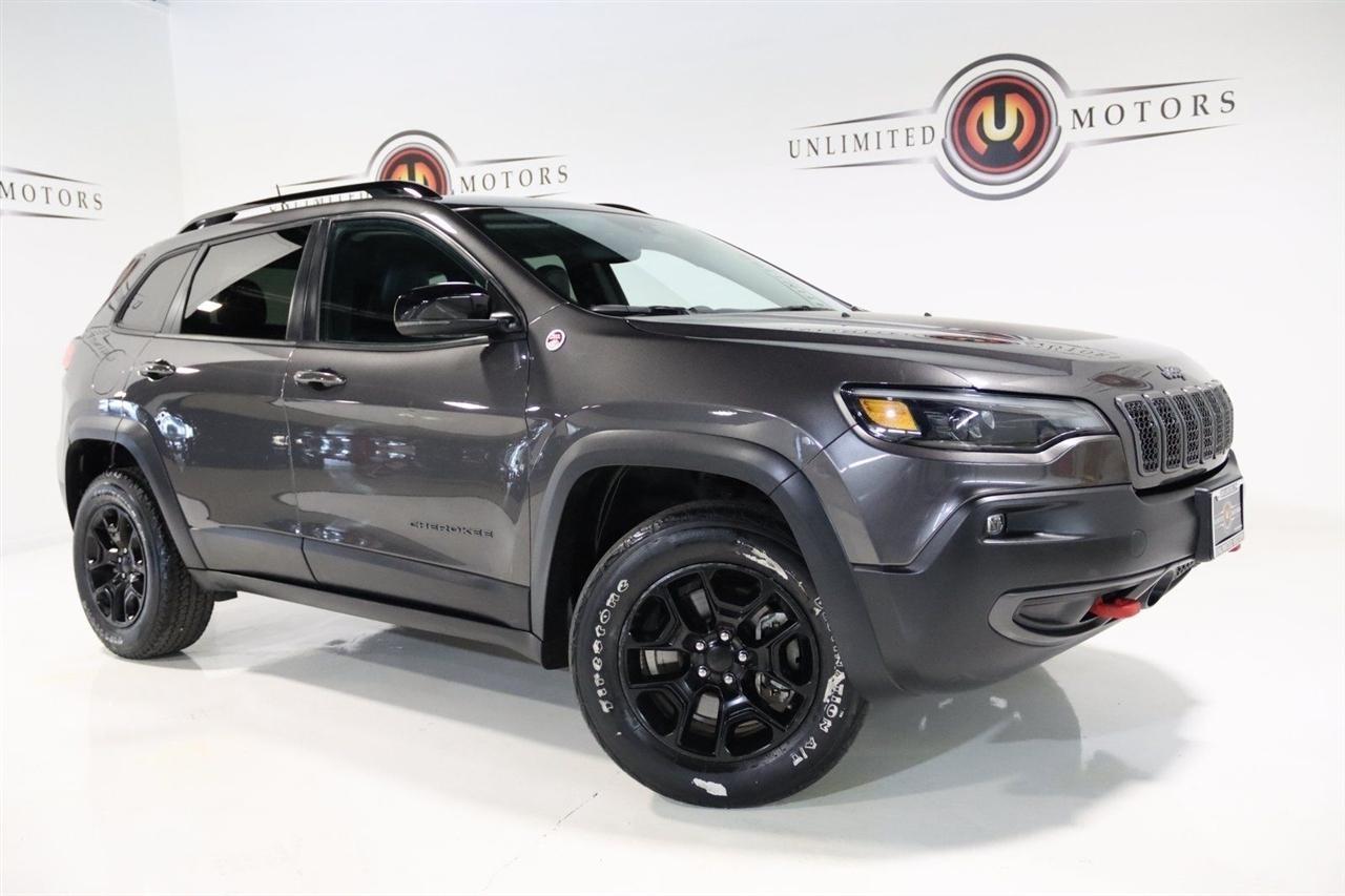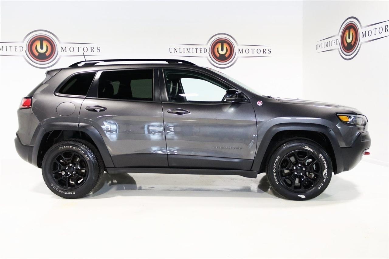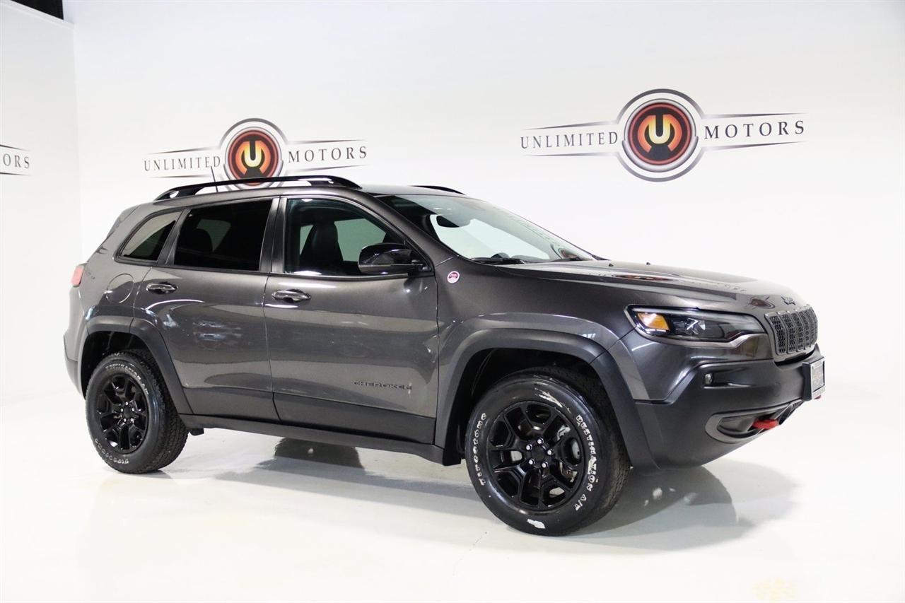 Bluetooth, Back Up Camera, Towing, Heated Seats, Touch Screen, 3.517 Final Drive Ratio, 4-Wheel Disc Brakes, 4G LTE Wi-Fi Hot Spot, 6 Speakers, 7 & 4 Pin Wiring Harness, 8.4 Touchscreen Display, ABS brakes, Air Conditioning, Alloy wheels, AM/FM radio: SiriusXM, Anti-whiplash front head restraints, Apple CarPlay, Apple CarPlay/Android Auto, Automatic temperature control, Brake assist, Class III Receiver Hitch, Cloth/Premium Vinyl Bucket Seats, Compass, Delay-off headlights, Driver door bin, Driver vanity mirror, Dual front impact airbags, Dual front side impact airbags, Electronic Stability Control, For Details, Visit DriveUconnect.com, For More Info, Call 800-643-2112, Four wheel independent suspension, Front anti-roll bar, Front Bucket Seats, Front Center Armrest, Front dual zone A/C, Front fog lights, Front reading lights, Fully automatic headlights, Google Android Auto, GPS Antenna Input, Heated door mirrors, Heated front seats, Heated steering wheel, Illuminated entry, K-Black Door Trim Panel Appliques, K-Black Interior Accents, Knee airbag, Leather Shift Knob, Low tire pressure warning, Occupant sensing airbag, Off Road Suspension, Outside temperature display, Overhead airbag, Overhead console, Panic alarm, ParkView Rear Back-Up Camera, Passenger door bin, Passenger vanity mirror, Power door mirrors, Power driver seat, Power steering, Power windows, Quick Order Package 27E, Radio data system, Radio: Uconnect 4 w/8.4 Display, Rain sensing wipers, Rear anti-roll bar, Rear reading lights, Rear seat center armrest, Rear side impact airbag, Rear window defroster, Rear window wiper, Remote keyless entry, Roof rack: rails only, SiriusXM Radio Service, SiriusXM Satellite Radio, Speed control, Speed-sensing steering, Split folding rear seat, Spoiler, Steering wheel mounted audio controls, Tachometer, Telescoping steering wheel, Tilt steering wheel, Traction control, Trailer Tow Group, Trailer Tow Wiring Harness, Trip computer, Turn signal indicator mirrors, USB Host Flip, Variably intermittent wipers, Voltmeter, Wheels: 17 x 7.5 Black Painted Aluminum. CARFAX One-Owner. Priced below KBB Fair Purchase Price!2022 Granite Crystal Metallic Clearcoat Jeep 4D Sport Utility Cherokee Trailhawk 4WD 9-Speed 948TE Automatic 3.2L V6Visit our website www.iumotors.com to view 100s of newer vehicles, more pictures and info, or to apply for financing. Rates are incredibly low for approved credit. We offer extended warranties, protection packages, and insurance. We assure you the best experience at any of our 4 locations and unbeatable prices and quality. At Unlimited Motors we believe in MARKET VALUE PRICING. We use real-time Internet price comparisons to constantly adjust prices to provide ALL BUYERS The BEST PRICE possible. We do not mark them up, to mark them down! Our entire team is committed to helping you buy a car the way we would want to buy a car! We utilize state-of-the-art technology to constantly monitor pricing trends to offer our shoppers the best competitive pricing, value, and experience. We sell and service all makes and models of Pre-owned / Used Vehicles Used Cars, Used Trucks, Used Sport Utility, Lamborghini, Ferrari, Bentley, Rolls Royce, McLaren, Maserati, Ford, Chevrolet/Chevy, Honda, Toyota, Porsche, Land Rover, Jaguar, INFINITI, Audi, Nissan, Mazda, Hyundai, Chrysler, Jeep, Dodge, Ram, SRT, Mitsubishi, Lexus, Kia, Volkswagen, Mini, BMW, Mercedes, Fiat, Volvo, GMC, Cadillac, Lincoln as well as other brands. Proudly serving these areas of Indianapolis, Fishers, Carmel, Noblesville, Greenwood, Avon, Plainfield, Zionsville, & Brownsburg, Indiana, Midwest. We also serve the entire nation with our seamless and easy online purchasing process, and offer shipping nationwide.Advertised prices DO NOT include Sales Tax, Dealer Fees, Title Processing Charges, and Dealer Pre-installed Products.