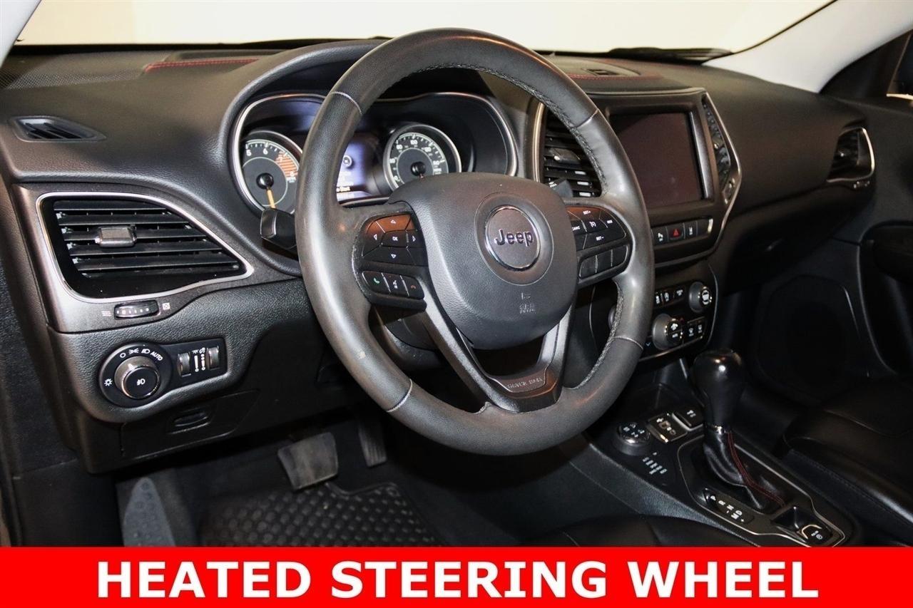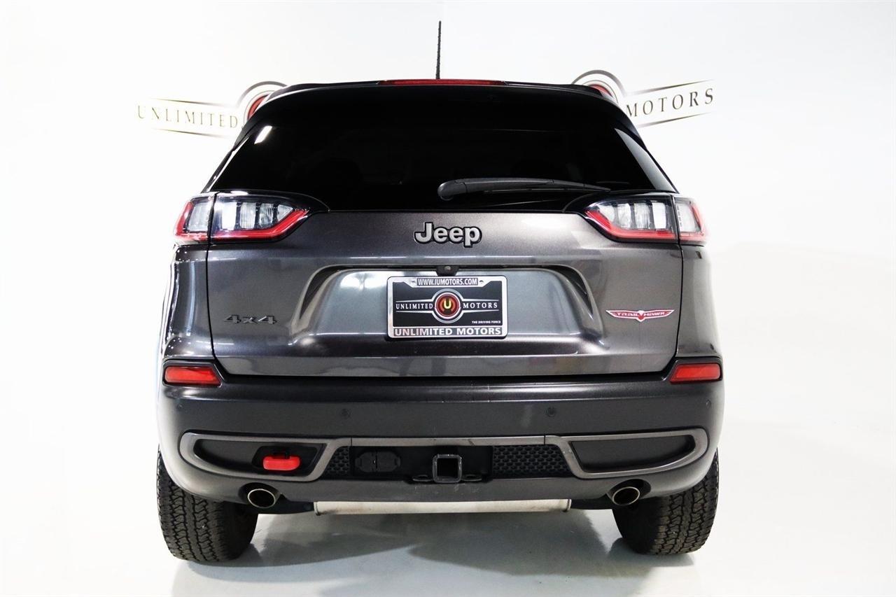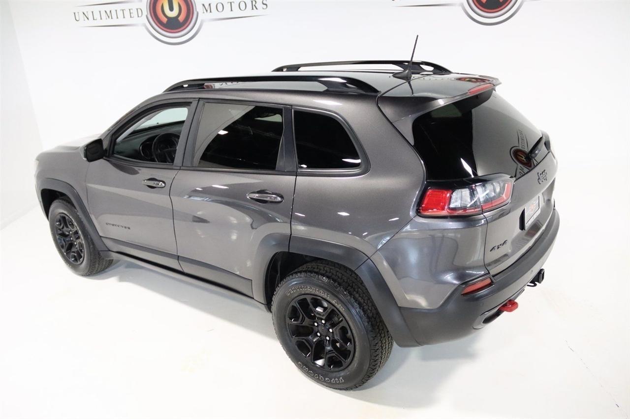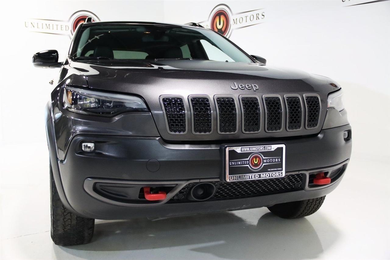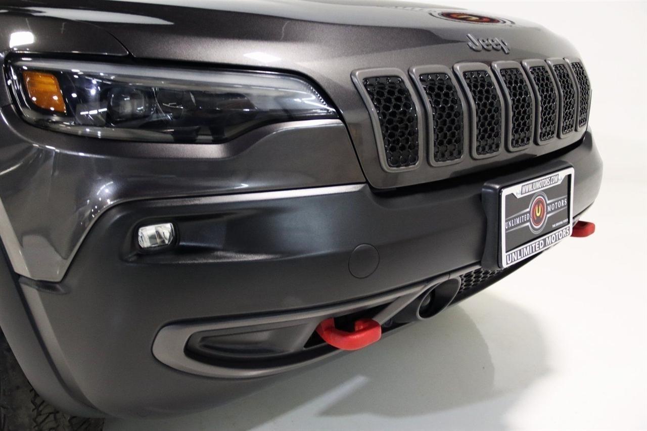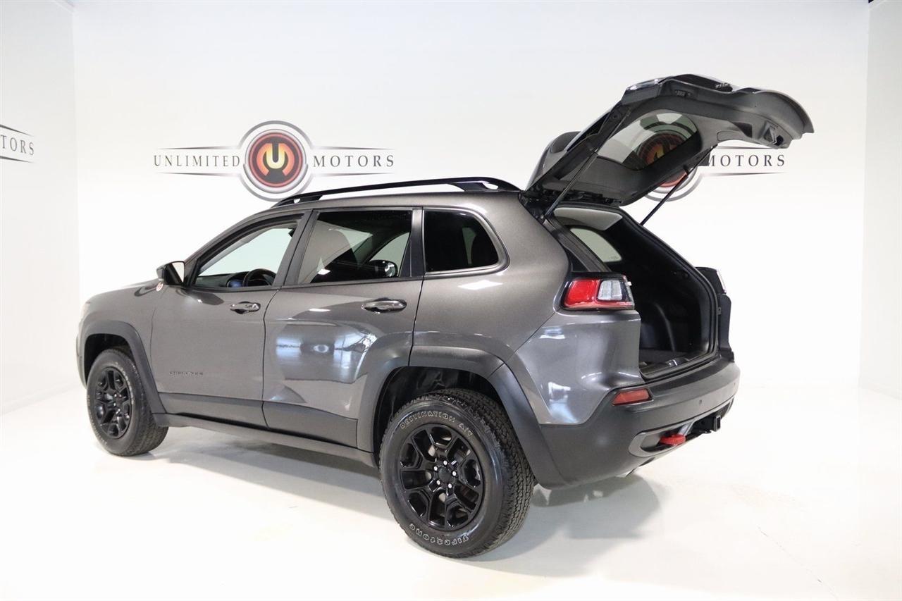 Bluetooth, Back Up Camera, Towing, Heated Seats, Touch Screen, 3.517 Final Drive Ratio, 4-Wheel Disc Brakes, 4G LTE Wi-Fi Hot Spot, 6 Speakers, 7 & 4 Pin Wiring Harness, 8.4 Touchscreen Display, ABS brakes, Air Conditioning, Alloy wheels, AM/FM radio: SiriusXM, Anti-whiplash front head restraints, Apple CarPlay, Apple CarPlay/Android Auto, Automatic temperature control, Brake assist, Class III Receiver Hitch, Cloth/Premium Vinyl Bucket Seats, Compass, Delay-off headlights, Driver door bin, Driver vanity mirror, Dual front impact airbags, Dual front side impact airbags, Electronic Stability Control, For Details, Visit DriveUconnect.com, For More Info, Call 800-643-2112, Four wheel independent suspension, Front anti-roll bar, Front Bucket Seats, Front Center Armrest, Front dual zone A/C, Front fog lights, Front reading lights, Fully automatic headlights, Google Android Auto, GPS Antenna Input, Heated door mirrors, Heated front seats, Heated steering wheel, Illuminated entry, K-Black Door Trim Panel Appliques, K-Black Interior Accents, Knee airbag, Leather Shift Knob, Low tire pressure warning, Occupant sensing airbag, Off Road Suspension, Outside temperature display, Overhead airbag, Overhead console, Panic alarm, ParkView Rear Back-Up Camera, Passenger door bin, Passenger vanity mirror, Power door mirrors, Power driver seat, Power steering, Power windows, Quick Order Package 27E, Radio data system, Radio: Uconnect 4 w/8.4 Display, Rain sensing wipers, Rear anti-roll bar, Rear reading lights, Rear seat center armrest, Rear side impact airbag, Rear window defroster, Rear window wiper, Remote keyless entry, Roof rack: rails only, SiriusXM Radio Service, SiriusXM Satellite Radio, Speed control, Speed-sensing steering, Split folding rear seat, Spoiler, Steering wheel mounted audio controls, Tachometer, Telescoping steering wheel, Tilt steering wheel, Traction control, Trailer Tow Group, Trailer Tow Wiring Harness, Trip computer, Turn signal indicator mirrors, USB Host Flip, Variably intermittent wipers, Voltmeter, Wheels: 17 x 7.5 Black Painted Aluminum. CARFAX One-Owner. Priced below KBB Fair Purchase Price!2022 Granite Crystal Metallic Clearcoat Jeep 4D Sport Utility Cherokee Trailhawk 4WD 9-Speed 948TE Automatic 3.2L V6Visit our website www.iumotors.com to view 100s of newer vehicles, more pictures and info, or to apply for financing. Rates are incredibly low for approved credit. We offer extended warranties, protection packages, and insurance. We assure you the best experience at any of our 4 locations and unbeatable prices and quality. At Unlimited Motors we believe in MARKET VALUE PRICING. We use real-time Internet price comparisons to constantly adjust prices to provide ALL BUYERS The BEST PRICE possible. We do not mark them up, to mark them down! Our entire team is committed to helping you buy a car the way we would want to buy a car! We utilize state-of-the-art technology to constantly monitor pricing trends to offer our shoppers the best competitive pricing, value, and experience. We sell and service all makes and models of Pre-owned / Used Vehicles Used Cars, Used Trucks, Used Sport Utility, Lamborghini, Ferrari, Bentley, Rolls Royce, McLaren, Maserati, Ford, Chevrolet/Chevy, Honda, Toyota, Porsche, Land Rover, Jaguar, INFINITI, Audi, Nissan, Mazda, Hyundai, Chrysler, Jeep, Dodge, Ram, SRT, Mitsubishi, Lexus, Kia, Volkswagen, Mini, BMW, Mercedes, Fiat, Volvo, GMC, Cadillac, Lincoln as well as other brands. Proudly serving these areas of Indianapolis, Fishers, Carmel, Noblesville, Greenwood, Avon, Plainfield, Zionsville, & Brownsburg, Indiana, Midwest. We also serve the entire nation with our seamless and easy online purchasing process, and offer shipping nationwide.Advertised prices DO NOT include Sales Tax, Dealer Fees, Title Processing Charges, and Dealer Pre-installed Products.