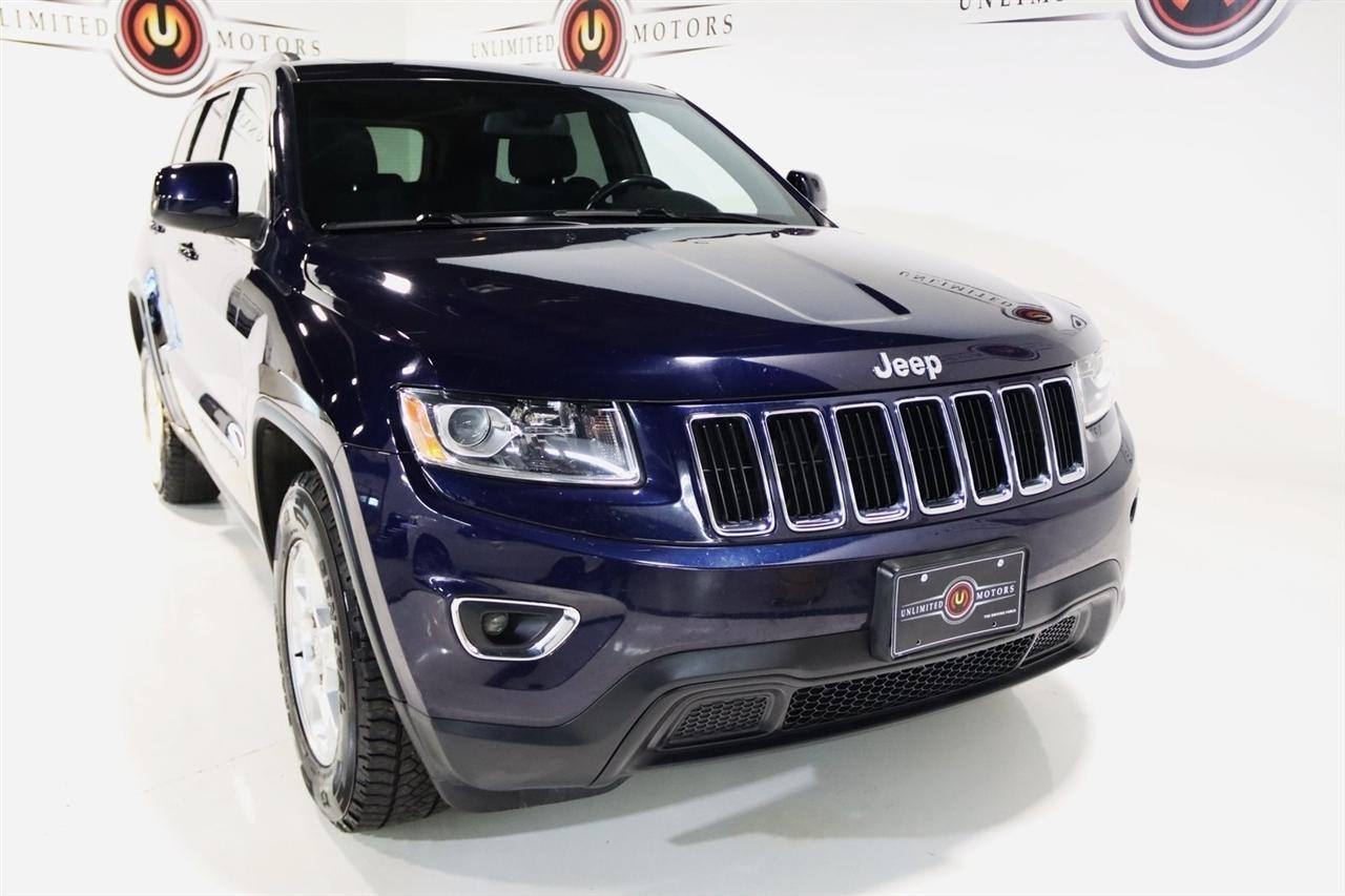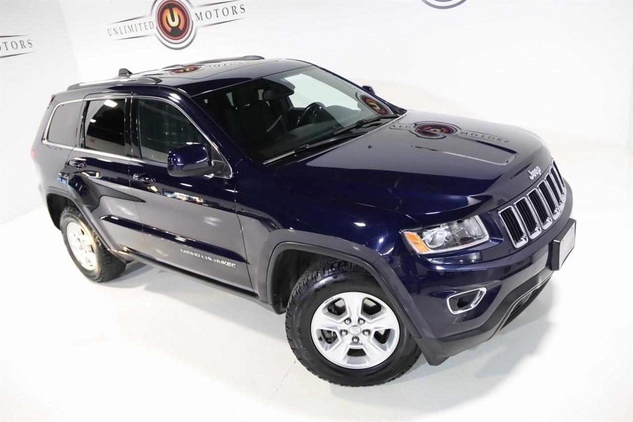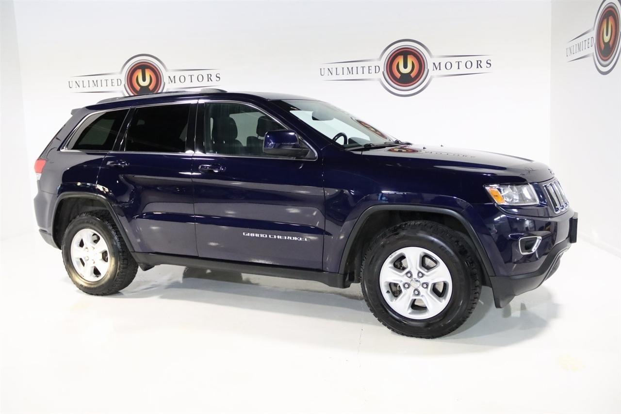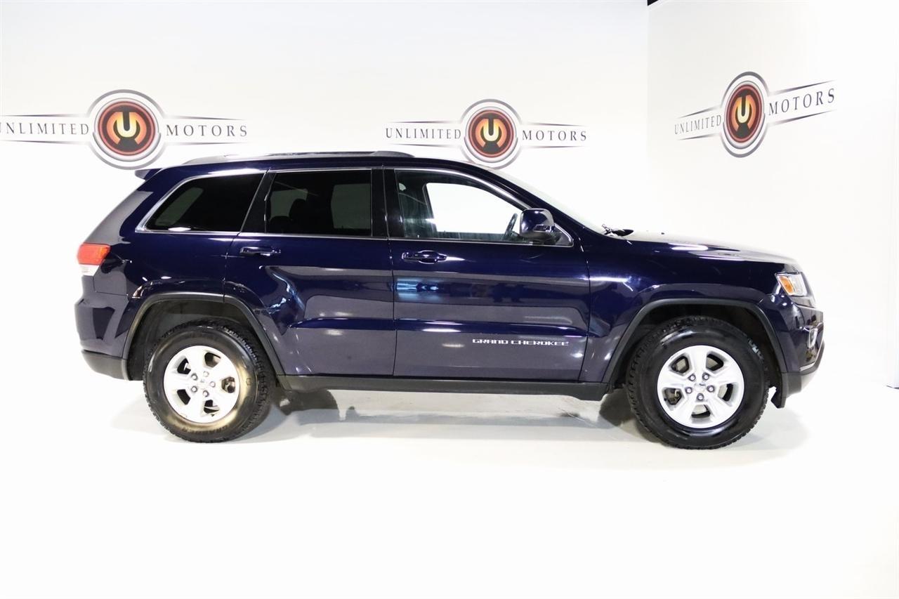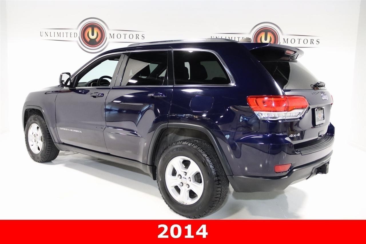 Bluetooth, Back Up Camera, Sun/Moon Roof, Touch Screen, 115V Auxiliary Power Outlet, 17 x 8.0 Aluminum Wheels, 3.45 Rear Axle Ratio, 4-Wheel Disc Brakes, 6 Speakers, ABS brakes, Air Conditioning, Alloy wheels, AM/FM radio, Anti-whiplash front head restraints, Automatic temperature control, Brake assist, Bright Side Roof Rails, Bumpers: body-color, Cargo Compartment Cover, Cloth Low-Back Bucket Seats, Compass, Delay-off headlights, Driver door bin, Driver vanity mirror, Dual front impact airbags, Dual front side impact airbags, Electronic Stability Control, Four wheel independent suspension, Front anti-roll bar, Front Bucket Seats, Front Center Armrest w/Storage, Front dual zone A/C, Front fog lights, Front reading lights, Fully automatic headlights, Heated door mirrors, Illuminated entry, Knee airbag, Leather Shift Knob, Low Beam Daytime Running Headlamps, Low tire pressure warning, Manufacturer's Statement of Origin, Normal Duty Suspension, Occupant sensing airbag, Outside temperature display, Overhead airbag, Overhead console, Panic alarm, Passenger door bin, Passenger vanity mirror, Power 4-Way Driver Lumbar Adjust, Power 8-Way Driver/Manual Passenger Seat, Power door mirrors, Power Liftgate, Power steering, Power windows, Quick Order Package 23E, Radio data system, Radio: Uconnect 5.0 AM/FM/BT, Rear anti-roll bar, Rear reading lights, Rear seat center armrest, Rear window defroster, Rear window wiper, Remote keyless entry, Security & Convenience Group, Security Alarm, Single Pane Power Sunroof, SIRIUSXM Satellite Radio, Speed control, Speed-Sensitive Wipers, Split folding rear seat, Spoiler, Steering wheel mounted audio controls, Tachometer, Telescoping steering wheel, Tilt steering wheel, Traction control, Trip computer, Universal Garage Door Opener, Variably intermittent wipers. Odometer is 5945 miles below market average! Priced below KBB Fair Purchase Price!2014 True Blue Pearlcoat Jeep 4D Sport Utility Grand Cherokee Laredo 4WD 8-Speed Automatic 3.6L V6 Flex Fuel 24V VVTVisit our website www.iumotors.com to view 100s of newer vehicles, more pictures and info, or to apply for financing. Rates are incredibly low for approved credit. We offer extended warranties, protection packages, and insurance. We assure you the best experience at any of our 4 locations and unbeatable prices and quality. At Unlimited Motors we believe in MARKET VALUE PRICING. We use real-time Internet price comparisons to constantly adjust prices to provide ALL BUYERS The BEST PRICE possible. We do not mark them up, to mark them down! Our entire team is committed to helping you buy a car the way we would want to buy a car! We utilize state-of-the-art technology to constantly monitor pricing trends to offer our shoppers the best competitive pricing, value, and experience. We sell and service all makes and models of Pre-owned / Used Vehicles Used Cars, Used Trucks, Used Sport Utility, Lamborghini, Ferrari, Bentley, Rolls Royce, McLaren, Maserati, Ford, Chevrolet/Chevy, Honda, Toyota, Porsche, Land Rover, Jaguar, INFINITI, Audi, Nissan, Mazda, Hyundai, Chrysler, Jeep, Dodge, Ram, SRT, Mitsubishi, Lexus, Kia, Volkswagen, Mini, BMW, Mercedes, Fiat, Volvo, GMC, Cadillac, Lincoln as well as other brands. Proudly serving these areas of Indianapolis, Fishers, Carmel, Noblesville, Greenwood, Avon, Plainfield, Zionsville, & Brownsburg, Indiana, Midwest. We also serve the entire nation with our seamless and easy online purchasing process, and offer shipping nationwide.Advertised prices DO NOT include Sales Tax, Dealer Fees, Title Processing Charges, and Dealer Pre-installed Products.