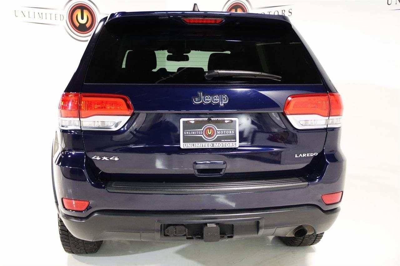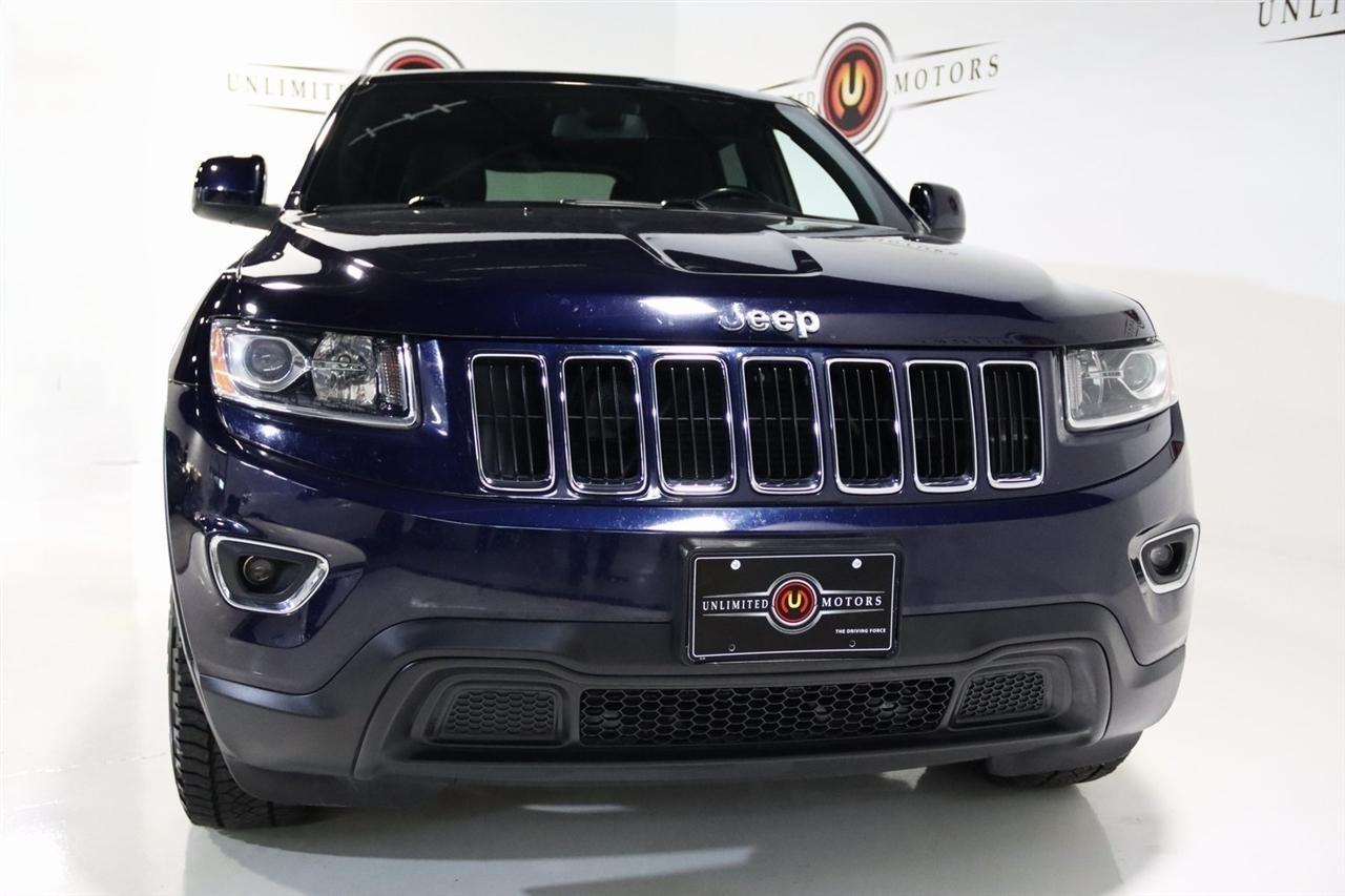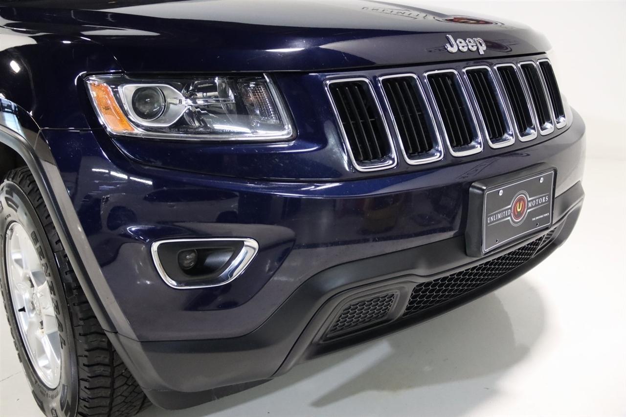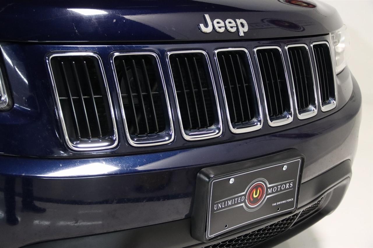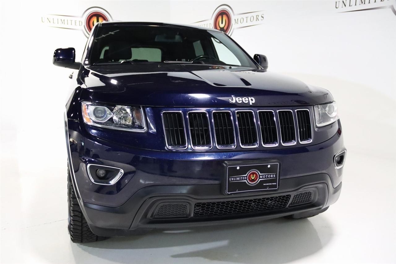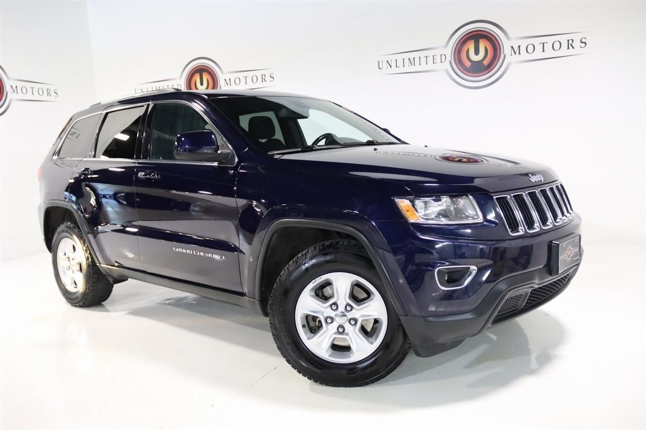 Bluetooth, Back Up Camera, Sun/Moon Roof, Touch Screen, 115V Auxiliary Power Outlet, 17 x 8.0 Aluminum Wheels, 3.45 Rear Axle Ratio, 4-Wheel Disc Brakes, 6 Speakers, ABS brakes, Air Conditioning, Alloy wheels, AM/FM radio, Anti-whiplash front head restraints, Automatic temperature control, Brake assist, Bright Side Roof Rails, Bumpers: body-color, Cargo Compartment Cover, Cloth Low-Back Bucket Seats, Compass, Delay-off headlights, Driver door bin, Driver vanity mirror, Dual front impact airbags, Dual front side impact airbags, Electronic Stability Control, Four wheel independent suspension, Front anti-roll bar, Front Bucket Seats, Front Center Armrest w/Storage, Front dual zone A/C, Front fog lights, Front reading lights, Fully automatic headlights, Heated door mirrors, Illuminated entry, Knee airbag, Leather Shift Knob, Low Beam Daytime Running Headlamps, Low tire pressure warning, Manufacturer's Statement of Origin, Normal Duty Suspension, Occupant sensing airbag, Outside temperature display, Overhead airbag, Overhead console, Panic alarm, Passenger door bin, Passenger vanity mirror, Power 4-Way Driver Lumbar Adjust, Power 8-Way Driver/Manual Passenger Seat, Power door mirrors, Power Liftgate, Power steering, Power windows, Quick Order Package 23E, Radio data system, Radio: Uconnect 5.0 AM/FM/BT, Rear anti-roll bar, Rear reading lights, Rear seat center armrest, Rear window defroster, Rear window wiper, Remote keyless entry, Security & Convenience Group, Security Alarm, Single Pane Power Sunroof, SIRIUSXM Satellite Radio, Speed control, Speed-Sensitive Wipers, Split folding rear seat, Spoiler, Steering wheel mounted audio controls, Tachometer, Telescoping steering wheel, Tilt steering wheel, Traction control, Trip computer, Universal Garage Door Opener, Variably intermittent wipers. Odometer is 5945 miles below market average! Priced below KBB Fair Purchase Price!2014 True Blue Pearlcoat Jeep 4D Sport Utility Grand Cherokee Laredo 4WD 8-Speed Automatic 3.6L V6 Flex Fuel 24V VVTVisit our website www.iumotors.com to view 100s of newer vehicles, more pictures and info, or to apply for financing. Rates are incredibly low for approved credit. We offer extended warranties, protection packages, and insurance. We assure you the best experience at any of our 4 locations and unbeatable prices and quality. At Unlimited Motors we believe in MARKET VALUE PRICING. We use real-time Internet price comparisons to constantly adjust prices to provide ALL BUYERS The BEST PRICE possible. We do not mark them up, to mark them down! Our entire team is committed to helping you buy a car the way we would want to buy a car! We utilize state-of-the-art technology to constantly monitor pricing trends to offer our shoppers the best competitive pricing, value, and experience. We sell and service all makes and models of Pre-owned / Used Vehicles Used Cars, Used Trucks, Used Sport Utility, Lamborghini, Ferrari, Bentley, Rolls Royce, McLaren, Maserati, Ford, Chevrolet/Chevy, Honda, Toyota, Porsche, Land Rover, Jaguar, INFINITI, Audi, Nissan, Mazda, Hyundai, Chrysler, Jeep, Dodge, Ram, SRT, Mitsubishi, Lexus, Kia, Volkswagen, Mini, BMW, Mercedes, Fiat, Volvo, GMC, Cadillac, Lincoln as well as other brands. Proudly serving these areas of Indianapolis, Fishers, Carmel, Noblesville, Greenwood, Avon, Plainfield, Zionsville, & Brownsburg, Indiana, Midwest. We also serve the entire nation with our seamless and easy online purchasing process, and offer shipping nationwide.Advertised prices DO NOT include Sales Tax, Dealer Fees, Title Processing Charges, and Dealer Pre-installed Products.