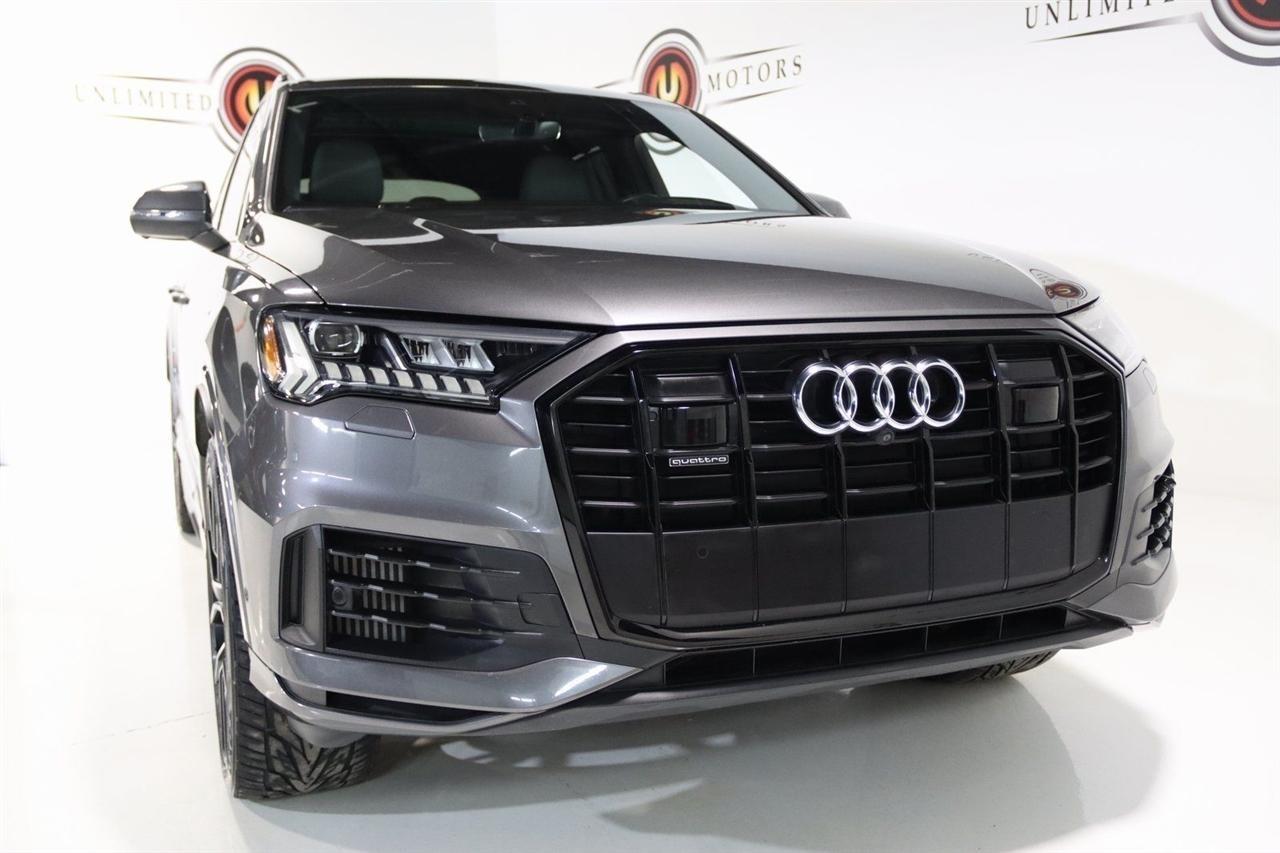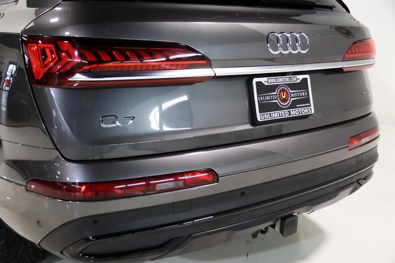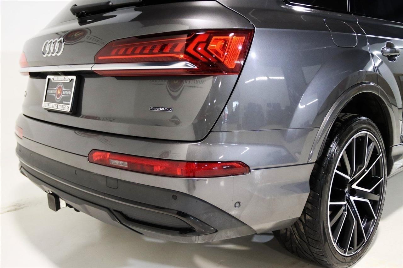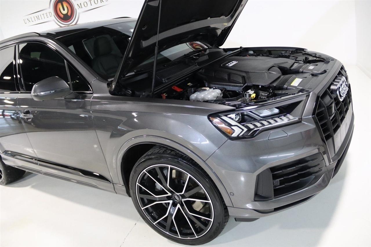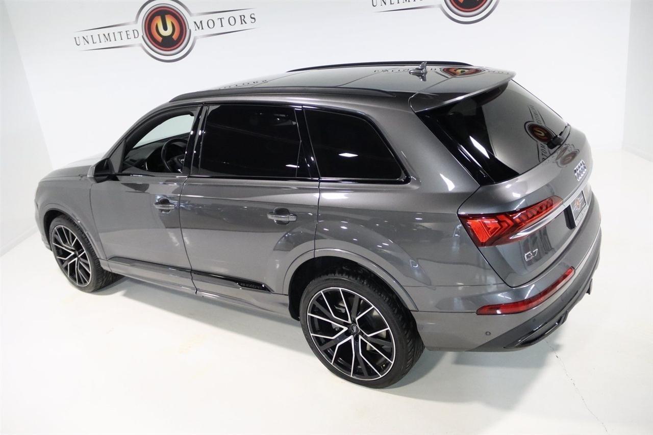 Navigation, Bluetooth, Back Up Camera, Panoramic Roof, 3rd Row, Heated Seats, Touch Screen, 10 Speakers, 3.204 Axle Ratio, 3rd row seats: bench, 4-Wheel Disc Brakes, ABS brakes, Air Conditioning, Alloy wheels, AM/FM radio: SiriusXM, Audi smartphone interface (Apple CarPlay/Android Auto), Auto High-beam Headlights, Auto-dimming Rear-View mirror, Automatic temperature control, Bang & Olufsen 3D Premium Sound System, Black Cloth Headliner, Black Door Blades, Black Front & Rear Bumper Inserts, Black Grille, Black Optic Exterior Package, Black Optic Package, Black Roof Rails, Black Window Surrounds, Brake assist, Bumpers: body-color, Comfort Adaptive Air Suspension, Compass, Contour/Ambient LED Interior Lighting Package, Convenience Package, Delay-off headlights, Driver door bin, Driver vanity mirror, Dual front impact airbags, Dual front side impact airbags, Dual-Pane Acoustic Side Windows, Electronic Stability Control, Emergency communication system: Audi connect CARE, PRIME & PLUS, Executive Package, Exterior Parking Camera Rear, Four wheel independent suspension, Front & Rear Doors Audi Beam-Rings, Front anti-roll bar, Front Bucket Seats, Front Center Armrest, Front dual zone A/C, Front fog lights, Front reading lights, Fully automatic headlights, Garage door transmitter: HomeLink, Genuine wood door panel insert, Gray/Brown Fine Grain Ash Natural Wood Inlays, Head-Up Display, Heated door mirrors, Heated Front Bucket Seats, Heated front seats, Illuminated Door Sills, Illuminated entry, Interior Protection Package, Intersection Assist, Leather Seating Surfaces, Leather Shift Knob, Leather steering wheel, Low tire pressure warning, Matrix-Design LED Headlights, Memory seat, Navigation System, Navigation system: Audi MMI Navigation plus with Touch Response, Occupant sensing airbag, Outside temperature display, Overhead airbag, Overhead console, Panic alarm, Passenger door bin, Passenger vanity mirror, Power door mirrors, Power driver seat, Power Liftgate, Power moonroof, Power passenger seat, Power Soft-Closing Doors, Power steering, Power windows, Prestige Package, Privacy Trunk Cover, Radio data system, Radio: Audi Sound System, Rain sensing wipers, Rear air conditioning, Rear anti-roll bar, Rear fog lights, Rear reading lights, Rear seat center armrest, Rear window defroster, Rear window wiper, Reclining 3rd row seat, Remote keyless entry, Roof rack: rails only, Security system, Speed control, Speed-sensing steering, Split folding rear seat, Spoiler, Steering wheel memory, Steering wheel mounted audio controls, Tachometer, Telescoping steering wheel, Tilt steering wheel, Tow Hitch Receiver, Towing Package, Traction control, Traffic Sign Recognition, Trip computer, Turn signal indicator mirrors, Variably intermittent wipers, Wheels: 20 5-Spoke Turbine-Design, Wheels: 21 10-Spoke Star-Design Bi-Color Black. Clean CARFAX.2021 Gray Metallic Audi 4D Sport Utility Q7 55 Prestige quattro quattro 8-Speed Automatic with Tiptronic 3.0L TFSI V6 DOHCVisit our website www.iumotors.com to view 100s of newer vehicles, more pictures and info, or to apply for financing. Rates are incredibly low for approved credit. We offer extended warranties, protection packages, and insurance. We assure you the best experience at any of our 4 locations and unbeatable prices and quality. At Unlimited Motors we believe in MARKET VALUE PRICING. We use real-time Internet price comparisons to constantly adjust prices to provide ALL BUYERS The BEST PRICE possible. We do not mark them up, to mark them down! Our entire team is committed to helping you buy a car the way we would want to buy a car! We utilize state-of-the-art technology to constantly monitor pricing trends to offer our shoppers the best competitive pricing, value, and experience. We sell and service all makes and models of Pre-owned / Used Vehicles Used Cars, Used Trucks, Used Sport Utility, Lamborghini, Ferrari, Bentley, Rolls Royce, McLaren, Maserati, Ford, Chevrolet/Chev