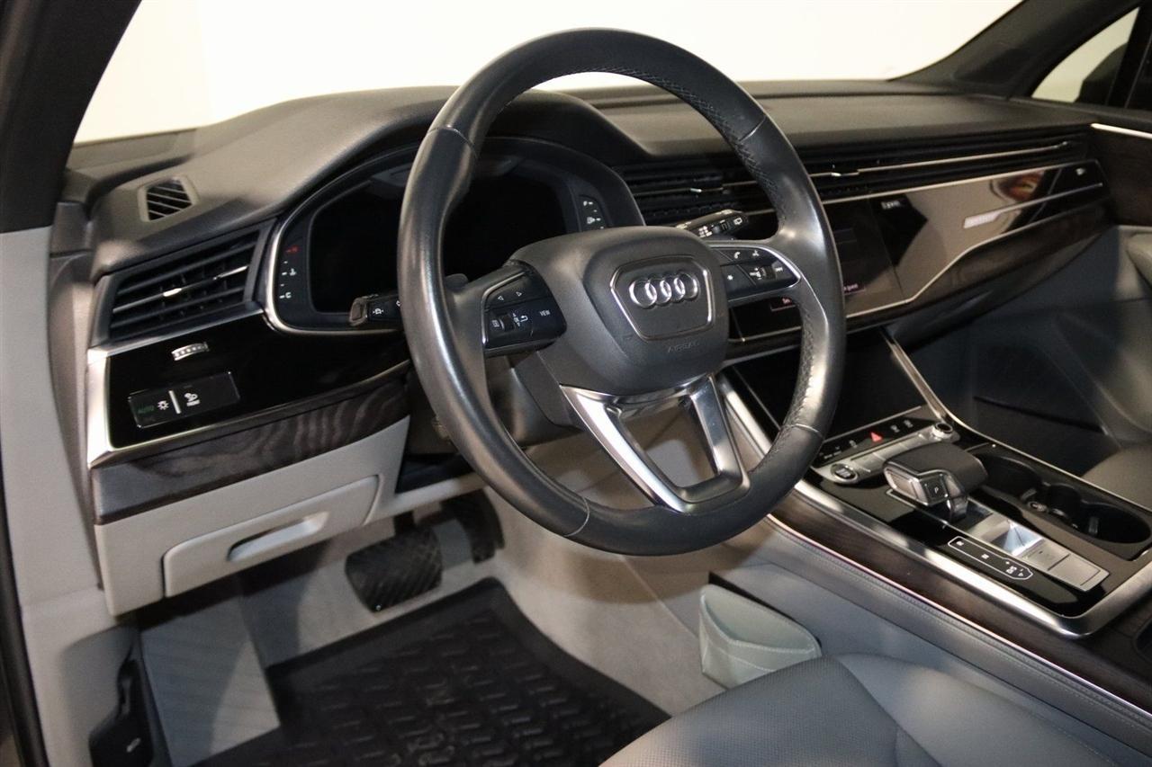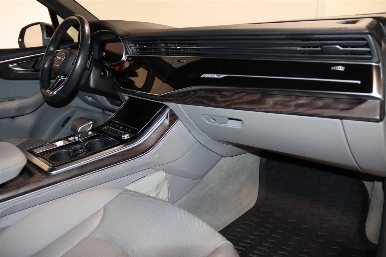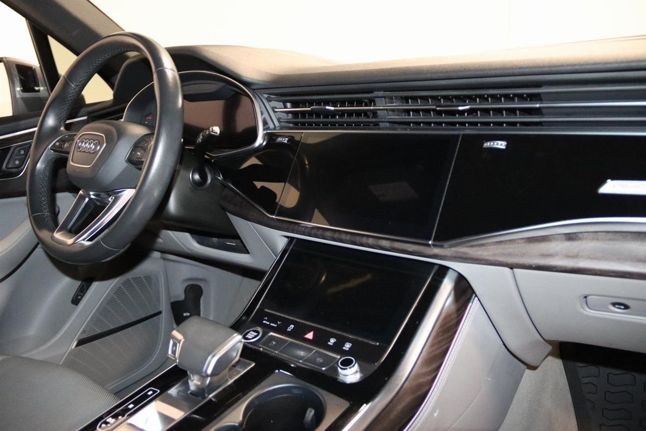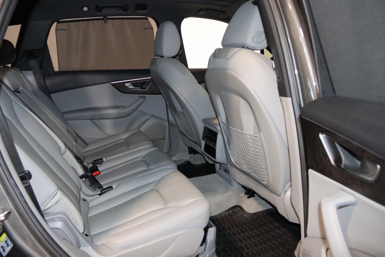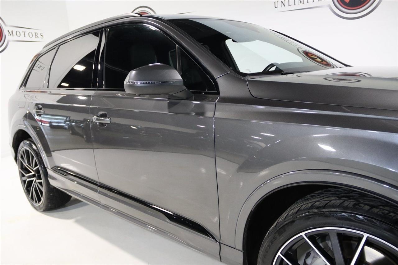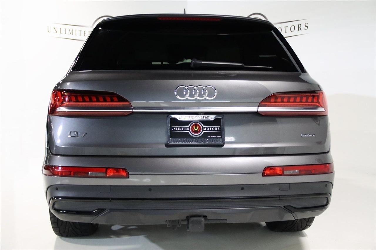 Navigation, Bluetooth, Back Up Camera, Panoramic Roof, 3rd Row, Heated Seats, Touch Screen, 10 Speakers, 3.204 Axle Ratio, 3rd row seats: bench, 4-Wheel Disc Brakes, ABS brakes, Air Conditioning, Alloy wheels, AM/FM radio: SiriusXM, Audi smartphone interface (Apple CarPlay/Android Auto), Auto High-beam Headlights, Auto-dimming Rear-View mirror, Automatic temperature control, Bang & Olufsen 3D Premium Sound System, Black Cloth Headliner, Black Door Blades, Black Front & Rear Bumper Inserts, Black Grille, Black Optic Exterior Package, Black Optic Package, Black Roof Rails, Black Window Surrounds, Brake assist, Bumpers: body-color, Comfort Adaptive Air Suspension, Compass, Contour/Ambient LED Interior Lighting Package, Convenience Package, Delay-off headlights, Driver door bin, Driver vanity mirror, Dual front impact airbags, Dual front side impact airbags, Dual-Pane Acoustic Side Windows, Electronic Stability Control, Emergency communication system: Audi connect CARE, PRIME & PLUS, Executive Package, Exterior Parking Camera Rear, Four wheel independent suspension, Front & Rear Doors Audi Beam-Rings, Front anti-roll bar, Front Bucket Seats, Front Center Armrest, Front dual zone A/C, Front fog lights, Front reading lights, Fully automatic headlights, Garage door transmitter: HomeLink, Genuine wood door panel insert, Gray/Brown Fine Grain Ash Natural Wood Inlays, Head-Up Display, Heated door mirrors, Heated Front Bucket Seats, Heated front seats, Illuminated Door Sills, Illuminated entry, Interior Protection Package, Intersection Assist, Leather Seating Surfaces, Leather Shift Knob, Leather steering wheel, Low tire pressure warning, Matrix-Design LED Headlights, Memory seat, Navigation System, Navigation system: Audi MMI Navigation plus with Touch Response, Occupant sensing airbag, Outside temperature display, Overhead airbag, Overhead console, Panic alarm, Passenger door bin, Passenger vanity mirror, Power door mirrors, Power driver seat, Power Liftgate, Power moonroof, Power passenger seat, Power Soft-Closing Doors, Power steering, Power windows, Prestige Package, Privacy Trunk Cover, Radio data system, Radio: Audi Sound System, Rain sensing wipers, Rear air conditioning, Rear anti-roll bar, Rear fog lights, Rear reading lights, Rear seat center armrest, Rear window defroster, Rear window wiper, Reclining 3rd row seat, Remote keyless entry, Roof rack: rails only, Security system, Speed control, Speed-sensing steering, Split folding rear seat, Spoiler, Steering wheel memory, Steering wheel mounted audio controls, Tachometer, Telescoping steering wheel, Tilt steering wheel, Tow Hitch Receiver, Towing Package, Traction control, Traffic Sign Recognition, Trip computer, Turn signal indicator mirrors, Variably intermittent wipers, Wheels: 20 5-Spoke Turbine-Design, Wheels: 21 10-Spoke Star-Design Bi-Color Black. Clean CARFAX.2021 Gray Metallic Audi 4D Sport Utility Q7 55 Prestige quattro quattro 8-Speed Automatic with Tiptronic 3.0L TFSI V6 DOHCVisit our website www.iumotors.com to view 100s of newer vehicles, more pictures and info, or to apply for financing. Rates are incredibly low for approved credit. We offer extended warranties, protection packages, and insurance. We assure you the best experience at any of our 4 locations and unbeatable prices and quality. At Unlimited Motors we believe in MARKET VALUE PRICING. We use real-time Internet price comparisons to constantly adjust prices to provide ALL BUYERS The BEST PRICE possible. We do not mark them up, to mark them down! Our entire team is committed to helping you buy a car the way we would want to buy a car! We utilize state-of-the-art technology to constantly monitor pricing trends to offer our shoppers the best competitive pricing, value, and experience. We sell and service all makes and models of Pre-owned / Used Vehicles Used Cars, Used Trucks, Used Sport Utility, Lamborghini, Ferrari, Bentley, Rolls Royce, McLaren, Maserati, Ford, Chevrolet/Chev