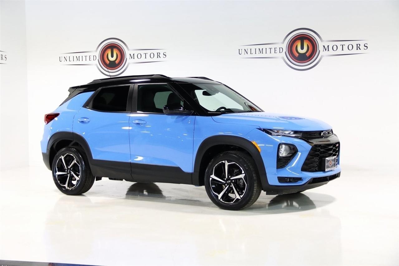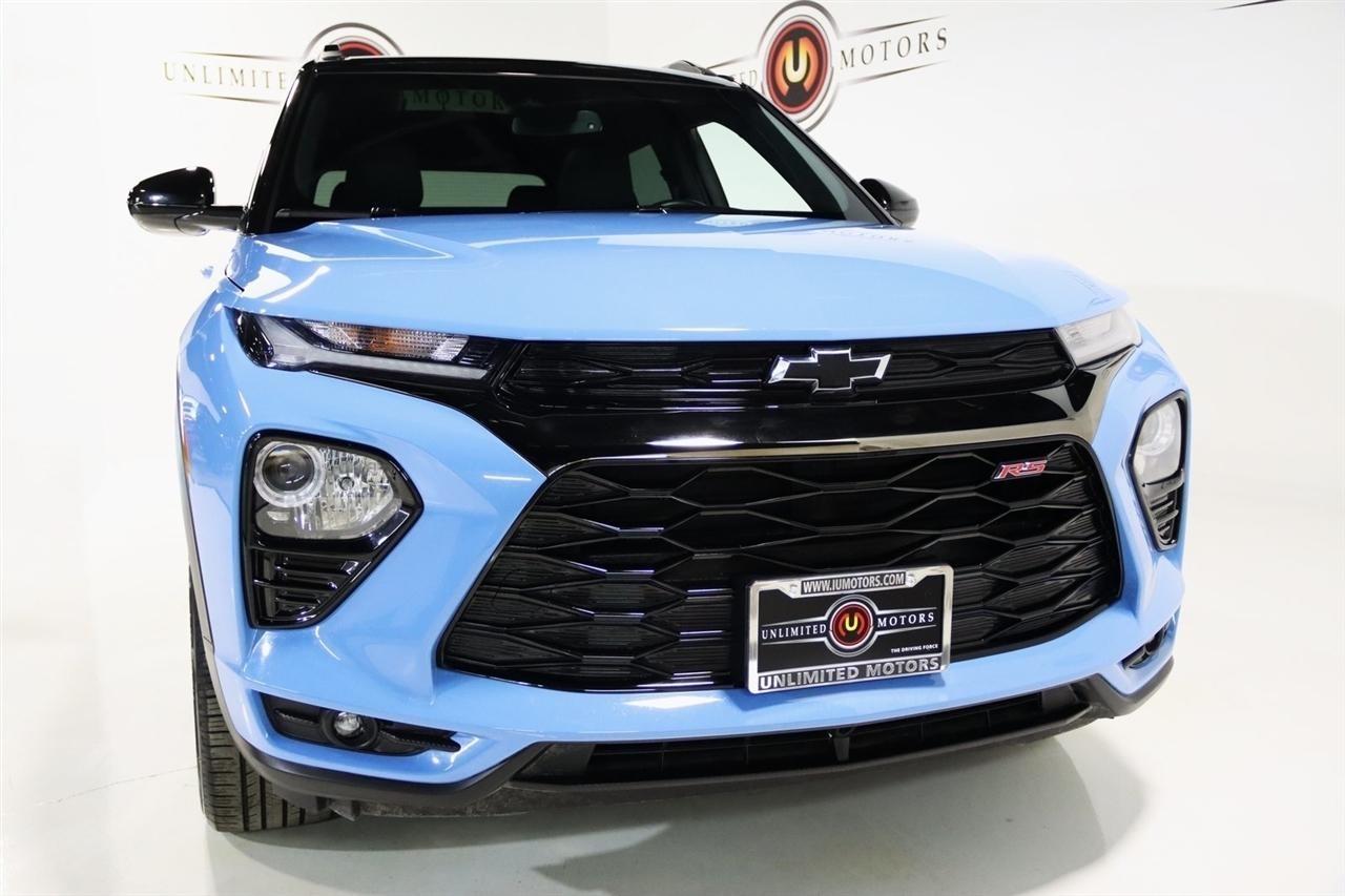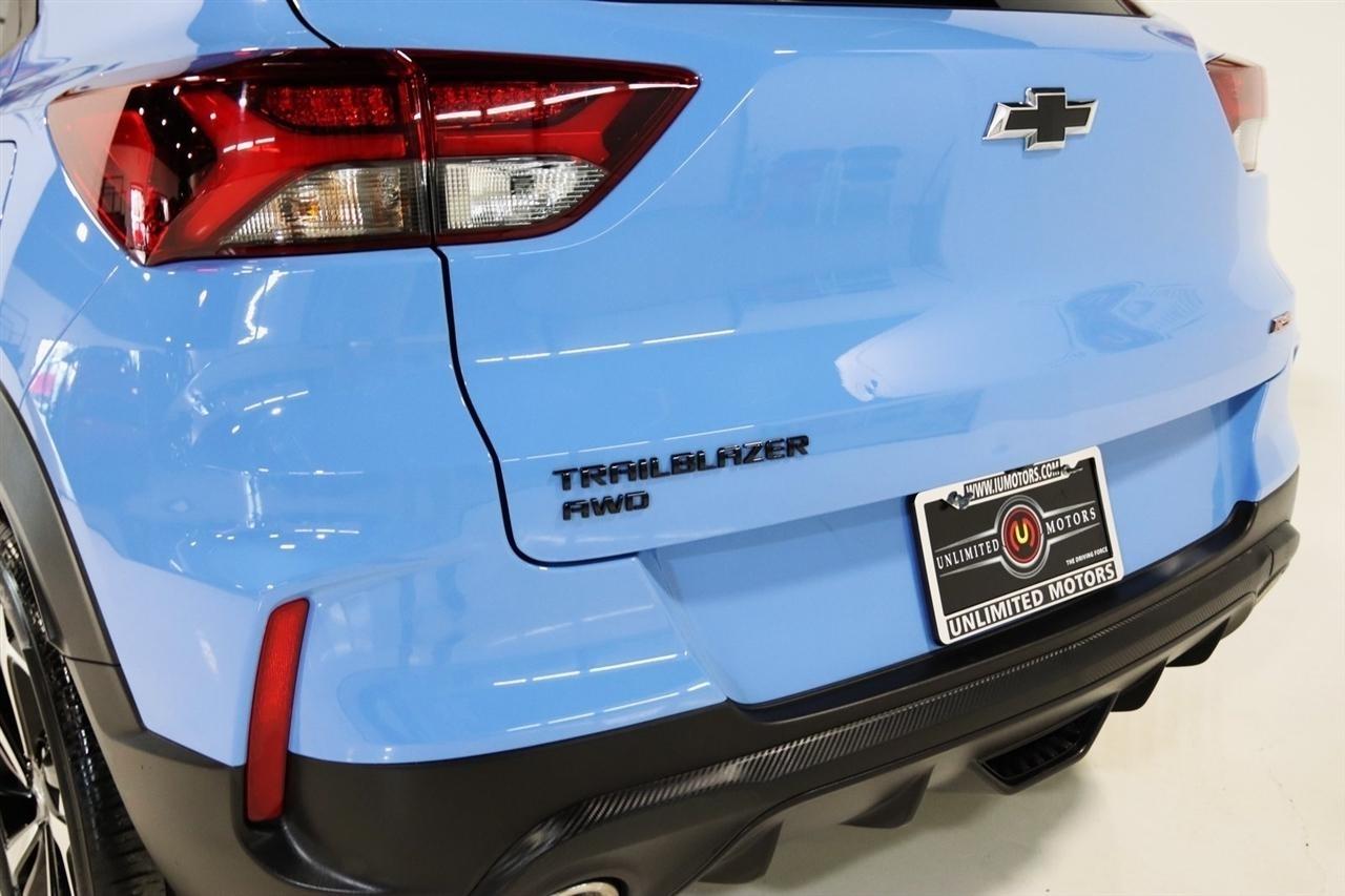 Bluetooth, Back Up Camera, Panoramic Roof, Heated Seats, Touch Screen, 1 Type-A & 1 Type-C USB Charging-Only Ports, 120-Volt Power Outlet, 2-Way Adjustable Front Head Restraints, 2-Way Power Driver Lumbar Seat Adjuster, 3.17 Axle Ratio, 4-Way Manual Front Passenger Seat Adjuster, 4-Wheel Disc Brakes, 4.2 Diagonal Multi-Color Driver Info Center, 6 Speakers, 6-Speaker Audio System Feature w/Amplifier, 7 Diagonal Color Touchscreen, 8-Way Power Driver Seat Adjuster, 8 Diagonal Color Touchscreen Display, ABS brakes, Adaptive Cruise Control, Air Conditioning, Alloy wheels, AM/FM radio: SiriusXM, Auto High-beam Headlights, Bose Premium 7-Speaker Audio System Feature, Brake assist, Bumpers: body-color, Cabin Humidity Sensor, Cloth w/Leatherette Seat Trim, Compass, Convenience Package, Delay-off headlights, Driver & Front Passenger Illuminated Vanity Mirrors, Driver Confidence Package, Driver door bin, Driver vanity mirror, Dual front impact airbags, Dual front side impact airbags, Dual-Pane Panoramic Power Sunroof, Electronic Stability Control, Emergency communication system: OnStar and Chevrolet connected services capable, Exterior Parking Camera Rear, Flat-Folding Front Passenger Seatback, Front anti-roll bar, Front Bucket Seats, Front Center Armrest, Front fog lights, Front reading lights, Front wheel independent suspension, Fully automatic headlights, Hands-Free Power Programmable Liftgate, HD Radio, HD Rear Vision Camera, Heated door mirrors, Heated Driver & Front Passenger Seats, Heated front seats, Heated Steering Wheel, Heated steering wheel, Illuminated entry, Inside Rear-View Auto-Dimming Mirror, Knee airbag, Lane Change Alert w/Side Blind Zone Alert, Leather Shift Knob, Leather steering wheel, LED Headlamps, Low tire pressure warning, Memory Card Receptacle, Mosaic Black Metallic Two-Tone Roof, Not Equipped w/Rear Park Assist (060), Occupant sensing airbag, Overhead airbag, Overhead console, Panic alarm, Passenger door bin, Passenger vanity mirror, Power door mirrors, Power driver seat, Power steering, Power windows, Preferred Equipment Group 1RS, Radio data system, Radio: Chevrolet Infotainment 3 Plus System, Radio: Chevrolet Infotainment 3 System, Rear Cross Traffic Alert, Rear Park Assist, Rear seat center armrest, Rear side impact airbag, Rear window defroster, Rear window wiper, Remote keyless entry, Ride & Handling Suspension, Security system, Single-Zone Auto Climate Control Air Conditioning, SiriusXM Radio, SiriusXM w/360L, Speed control, Split folding rear seat, Spoiler, Steering wheel mounted audio controls, Sun & Liftgate Package, Tachometer, Technology Package, Telescoping steering wheel, Tilt steering wheel, Traction control, Trip computer, Variably intermittent wipers, Wheels: 18 High Gloss Black Machined Aluminum, Wireless Apple CarPlay/Android Auto, Wireless Charging. CARFAX One-Owner. Clean CARFAX. 26/30 City/Highway MPG2023 Fountain Blue Chevrolet 4D Sport Utility TrailBlazer RS AWD 9-Speed Automatic 1.3L Ecotec Turbo DOHC SIDI w/VVTVisit our website www.iumotors.com to view 100s of newer vehicles, more pictures and info, or to apply for financing. Rates are incredibly low for approved credit. We offer extended warranties, protection packages, and insurance. We assure you the best experience at any of our 4 locations and unbeatable prices and quality. At Unlimited Motors we believe in MARKET VALUE PRICING. We use real-time Internet price comparisons to constantly adjust prices to provide ALL BUYERS The BEST PRICE possible. We do not mark them up, to mark them down! Our entire team is committed to helping you buy a car the way we would want to buy a car! We utilize state-of-the-art technology to constantly monitor pricing trends to offer our shoppers the best competitive pricing, value, and experience. We sell and service all makes and models of Pre-owned / Used Vehicles Used Cars, Used Trucks, Used Sport Utility, Lamborghini, Ferrari, Bentley, Rolls Royce, McLaren, Maserati,