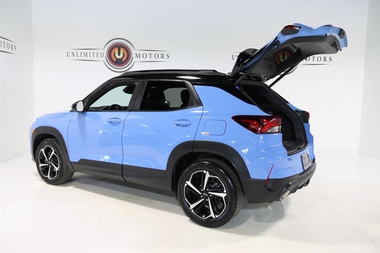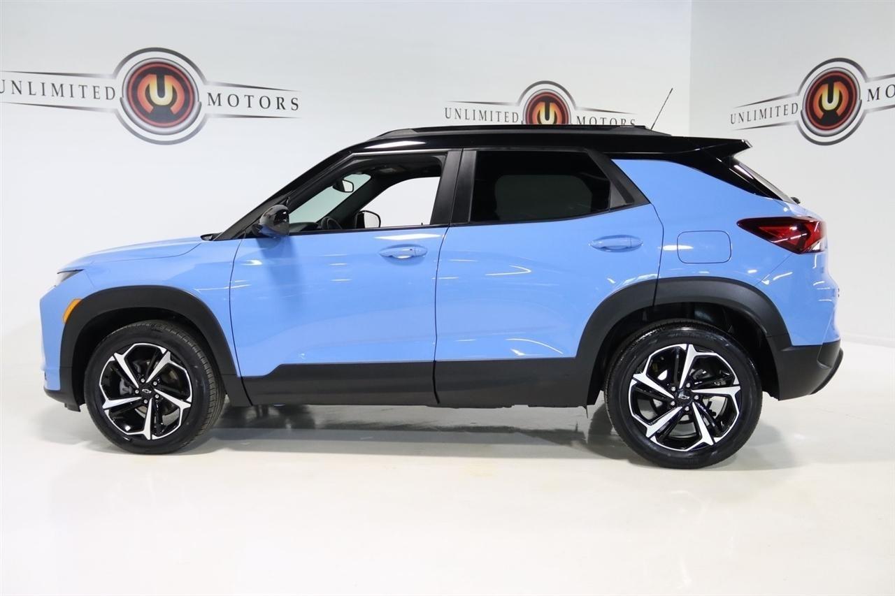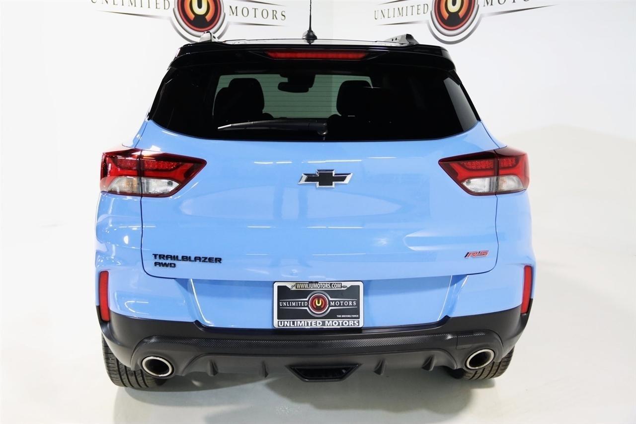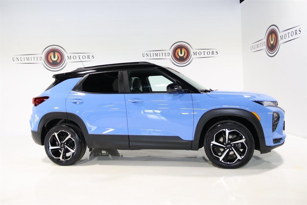 Bluetooth, Back Up Camera, Panoramic Roof, Heated Seats, Touch Screen, 1 Type-A & 1 Type-C USB Charging-Only Ports, 120-Volt Power Outlet, 2-Way Adjustable Front Head Restraints, 2-Way Power Driver Lumbar Seat Adjuster, 3.17 Axle Ratio, 4-Way Manual Front Passenger Seat Adjuster, 4-Wheel Disc Brakes, 4.2 Diagonal Multi-Color Driver Info Center, 6 Speakers, 6-Speaker Audio System Feature w/Amplifier, 7 Diagonal Color Touchscreen, 8-Way Power Driver Seat Adjuster, 8 Diagonal Color Touchscreen Display, ABS brakes, Adaptive Cruise Control, Air Conditioning, Alloy wheels, AM/FM radio: SiriusXM, Auto High-beam Headlights, Bose Premium 7-Speaker Audio System Feature, Brake assist, Bumpers: body-color, Cabin Humidity Sensor, Cloth w/Leatherette Seat Trim, Compass, Convenience Package, Delay-off headlights, Driver & Front Passenger Illuminated Vanity Mirrors, Driver Confidence Package, Driver door bin, Driver vanity mirror, Dual front impact airbags, Dual front side impact airbags, Dual-Pane Panoramic Power Sunroof, Electronic Stability Control, Emergency communication system: OnStar and Chevrolet connected services capable, Exterior Parking Camera Rear, Flat-Folding Front Passenger Seatback, Front anti-roll bar, Front Bucket Seats, Front Center Armrest, Front fog lights, Front reading lights, Front wheel independent suspension, Fully automatic headlights, Hands-Free Power Programmable Liftgate, HD Radio, HD Rear Vision Camera, Heated door mirrors, Heated Driver & Front Passenger Seats, Heated front seats, Heated Steering Wheel, Heated steering wheel, Illuminated entry, Inside Rear-View Auto-Dimming Mirror, Knee airbag, Lane Change Alert w/Side Blind Zone Alert, Leather Shift Knob, Leather steering wheel, LED Headlamps, Low tire pressure warning, Memory Card Receptacle, Mosaic Black Metallic Two-Tone Roof, Not Equipped w/Rear Park Assist (060), Occupant sensing airbag, Overhead airbag, Overhead console, Panic alarm, Passenger door bin, Passenger vanity mirror, Power door mirrors, Power driver seat, Power steering, Power windows, Preferred Equipment Group 1RS, Radio data system, Radio: Chevrolet Infotainment 3 Plus System, Radio: Chevrolet Infotainment 3 System, Rear Cross Traffic Alert, Rear Park Assist, Rear seat center armrest, Rear side impact airbag, Rear window defroster, Rear window wiper, Remote keyless entry, Ride & Handling Suspension, Security system, Single-Zone Auto Climate Control Air Conditioning, SiriusXM Radio, SiriusXM w/360L, Speed control, Split folding rear seat, Spoiler, Steering wheel mounted audio controls, Sun & Liftgate Package, Tachometer, Technology Package, Telescoping steering wheel, Tilt steering wheel, Traction control, Trip computer, Variably intermittent wipers, Wheels: 18 High Gloss Black Machined Aluminum, Wireless Apple CarPlay/Android Auto, Wireless Charging. CARFAX One-Owner. Clean CARFAX. 26/30 City/Highway MPG2023 Fountain Blue Chevrolet 4D Sport Utility TrailBlazer RS AWD 9-Speed Automatic 1.3L Ecotec Turbo DOHC SIDI w/VVTVisit our website www.iumotors.com to view 100s of newer vehicles, more pictures and info, or to apply for financing. Rates are incredibly low for approved credit. We offer extended warranties, protection packages, and insurance. We assure you the best experience at any of our 4 locations and unbeatable prices and quality. At Unlimited Motors we believe in MARKET VALUE PRICING. We use real-time Internet price comparisons to constantly adjust prices to provide ALL BUYERS The BEST PRICE possible. We do not mark them up, to mark them down! Our entire team is committed to helping you buy a car the way we would want to buy a car! We utilize state-of-the-art technology to constantly monitor pricing trends to offer our shoppers the best competitive pricing, value, and experience. We sell and service all makes and models of Pre-owned / Used Vehicles Used Cars, Used Trucks, Used Sport Utility, Lamborghini, Ferrari, Bentley, Rolls Royce, McLaren, Maserati,