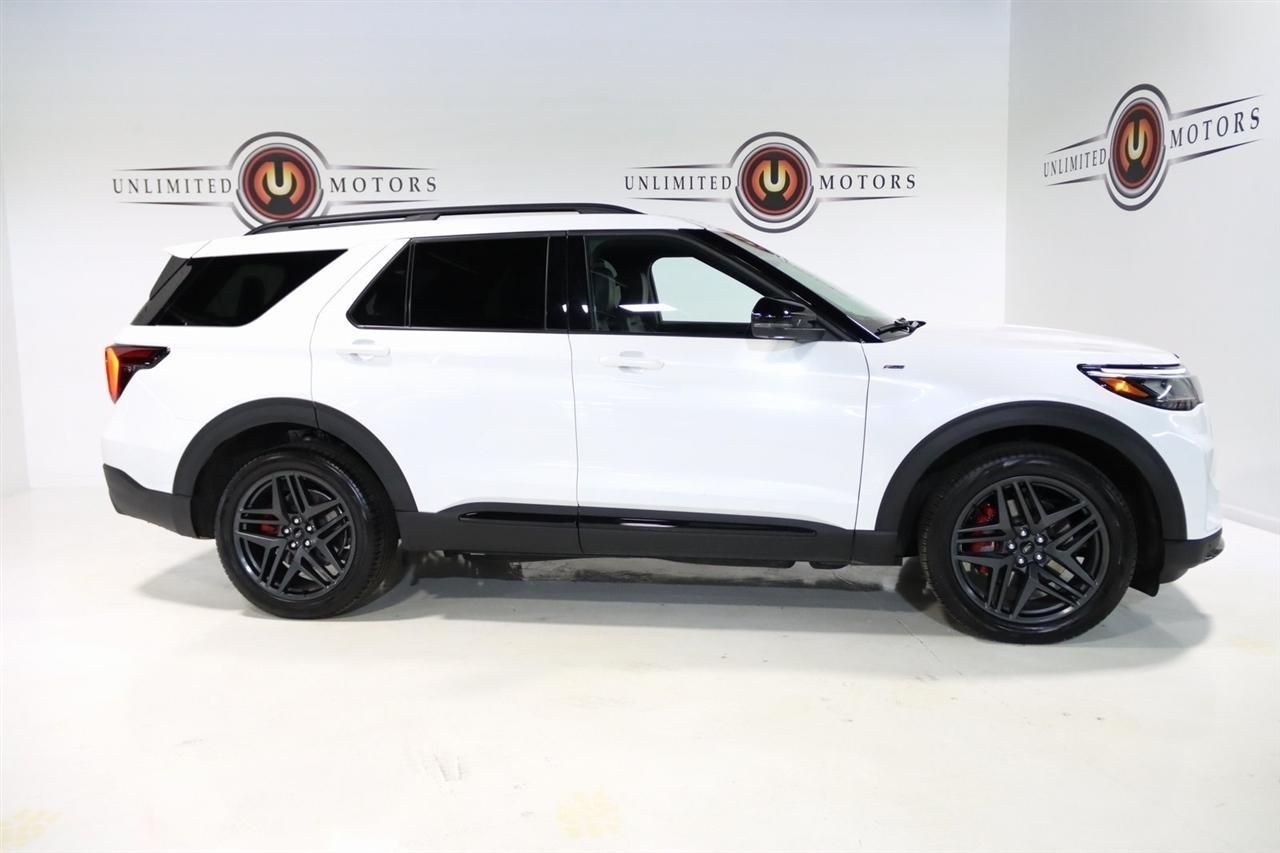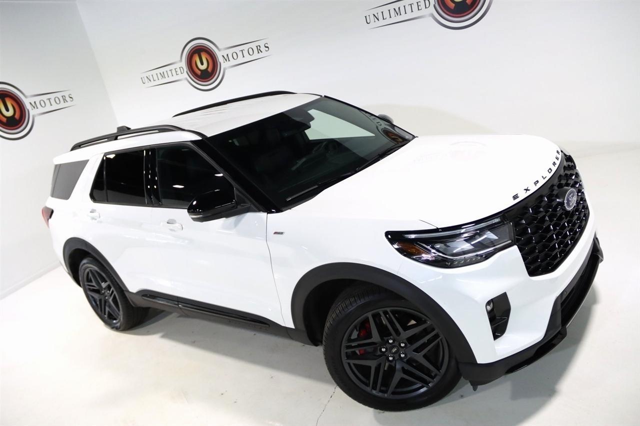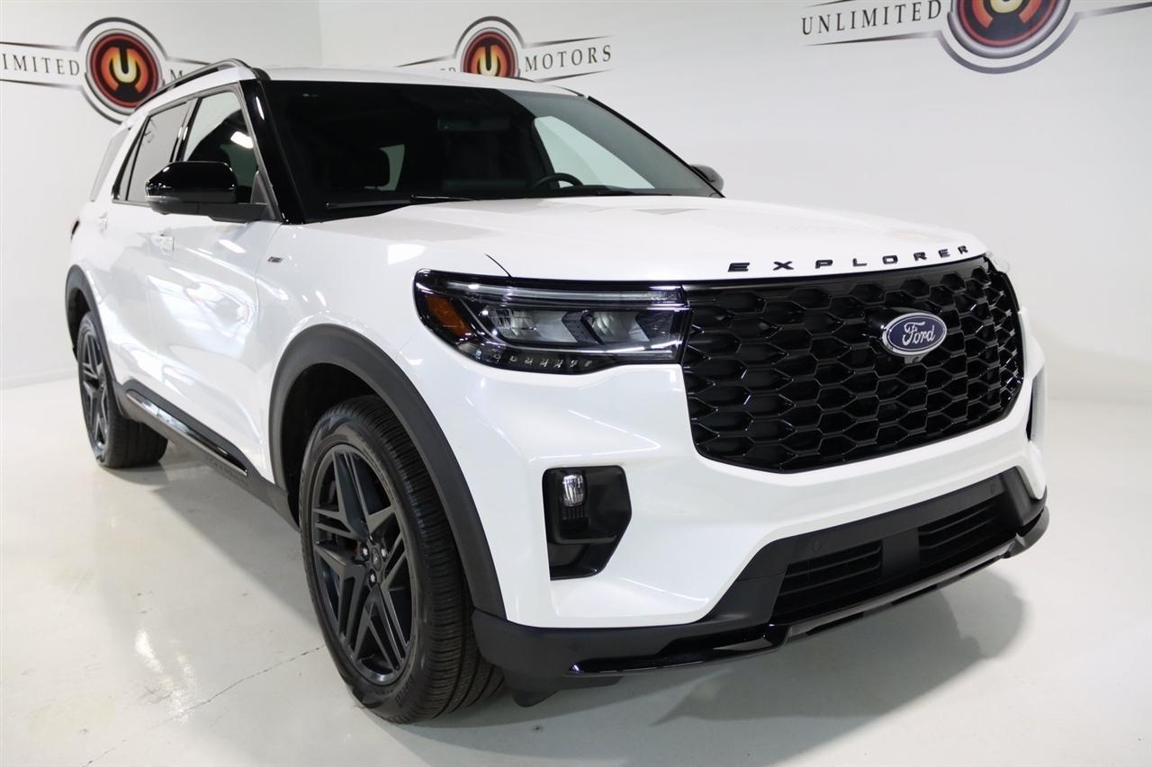 Navigation, Bluetooth, Back Up Camera, 3rd Row, Towing, Heated Seats, Touch Screen, 10 Speakers, 110V/150W AC Power Outlet, 2nd Row Heated Seats, 3.58 Non-Limited Slip Rear Axle, 3rd row seats: bench, 4-Wheel Disc Brakes, ABS brakes, Air Conditioning, Alloy wheels, AM/FM radio: SiriusXM with 360L, Ambient Lighting, Apple CarPlay/Android Auto, Auto High-beam Headlights, Auto-Dimming Interior Rear-View Mirror, Automatic temperature control, Brake assist, Bumpers: body-color, Compass, Delay-off headlights, Driver door bin, Driver vanity mirror, Dual front impact airbags, Dual front side impact airbags, Electronic Stability Control, Emergency communication system: 911 Assist, Equipment Group 300A Standard Package, Exterior Parking Camera Rear, Four wheel independent suspension, Front & 2nd Rows Floor Liners w/Carpet Floor Mats, Front anti-roll bar, Front Bucket Seats, Front Center Armrest, Front dual zone A/C, Front fog lights, Front reading lights, Fully automatic headlights, Garage door transmitter, Heated door mirrors, Heated front seats, Heated steering wheel, Heated Unique Cloth Captain's Chairs, Illuminated entry, Internet access capable: FordPass Connect 5G, Knee airbag, Leather steering wheel, Low tire pressure warning, Memory Driver's Seat, Navigation System, Occupant sensing airbag, Outside temperature display, Overhead airbag, Overhead console, Panic alarm, Passenger door bin, Passenger vanity mirror, Performance Brakes, Power door mirrors, Power driver seat, Power Liftgate, Power passenger seat, Power steering, Power windows, Power-Folding Sideview Mirrors w/Autofold, Premium Package, Radio: B&O Sound System by Bang & Olufsen, Rain-Sensing Wipers (Front Only), Rear air conditioning, Rear anti-roll bar, Rear reading lights, Rear window defroster, Rear window wiper, Red Painted Perf Front & Rear Brake Calipers, Remote keyless entry, Security system, Speed control, Speed-sensing steering, Speed-Sensitive Wipers, Split folding rear seat, Spoiler, ST-Line Street Pack, Steering wheel mounted audio controls, Tachometer, Telescoping steering wheel, Tilt steering wheel, Traction control, Trip computer, Variably intermittent wipers, Wheels: 21 Magnetite-Painted Aluminum, Wireless Charging Pad. CARFAX One-Owner. 20/27 City/Highway MPG Odometer is 3210 miles below market average! Priced below KBB Fair Purchase Price!2025 White Metallic Ford 4D Sport Utility Explorer ST-Line 4WD 10-Speed Automatic 2.3L EcoBoost I-4Visit our website www.iumotors.com to view 100s of newer vehicles, more pictures and info, or to apply for financing. Rates are incredibly low for approved credit. We offer extended warranties, protection packages, and insurance. We assure you the best experience at any of our 4 locations and unbeatable prices and quality. At Unlimited Motors we believe in MARKET VALUE PRICING. We use real-time Internet price comparisons to constantly adjust prices to provide ALL BUYERS The BEST PRICE possible. We do not mark them up, to mark them down! Our entire team is committed to helping you buy a car the way we would want to buy a car! We utilize state-of-the-art technology to constantly monitor pricing trends to offer our shoppers the best competitive pricing, value, and experience. We sell and service all makes and models of Pre-owned / Used Vehicles Used Cars, Used Trucks, Used Sport Utility, Lamborghini, Ferrari, Bentley, Rolls Royce, McLaren, Maserati, Ford, Chevrolet/Chevy, Honda, Toyota, Porsche, Land Rover, Jaguar, INFINITI, Audi, Nissan, Mazda, Hyundai, Chrysler, Jeep, Dodge, Ram, SRT, Mitsubishi, Lexus, Kia, Volkswagen, Mini, BMW, Mercedes, Fiat, Volvo, GMC, Cadillac, Lincoln as well as other brands. Proudly serving these areas of Indianapolis, Fishers, Carmel, Noblesville, Greenwood, Avon, Plainfield, Zionsville, & Brownsburg, Indiana, Midwest. We also serve the entire nation with our seamless and easy online purchasing process, and offer shipping nationwide.Advertised prices DO NOT inc