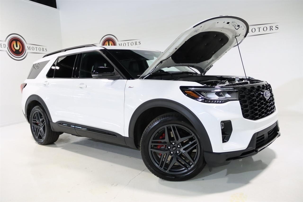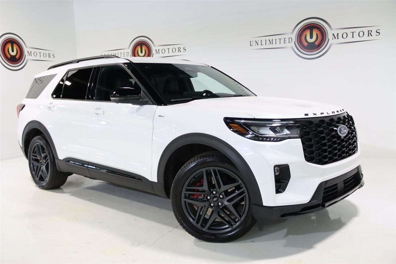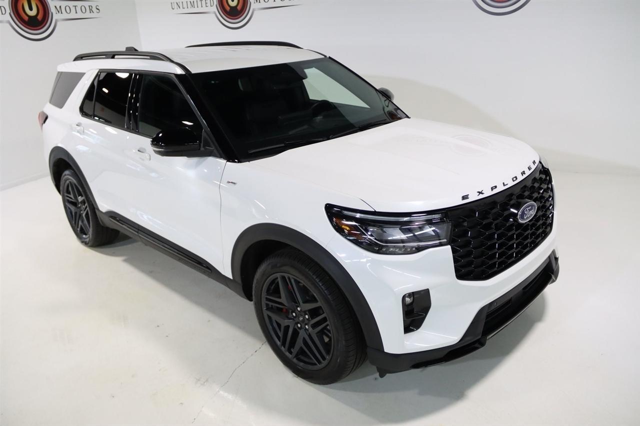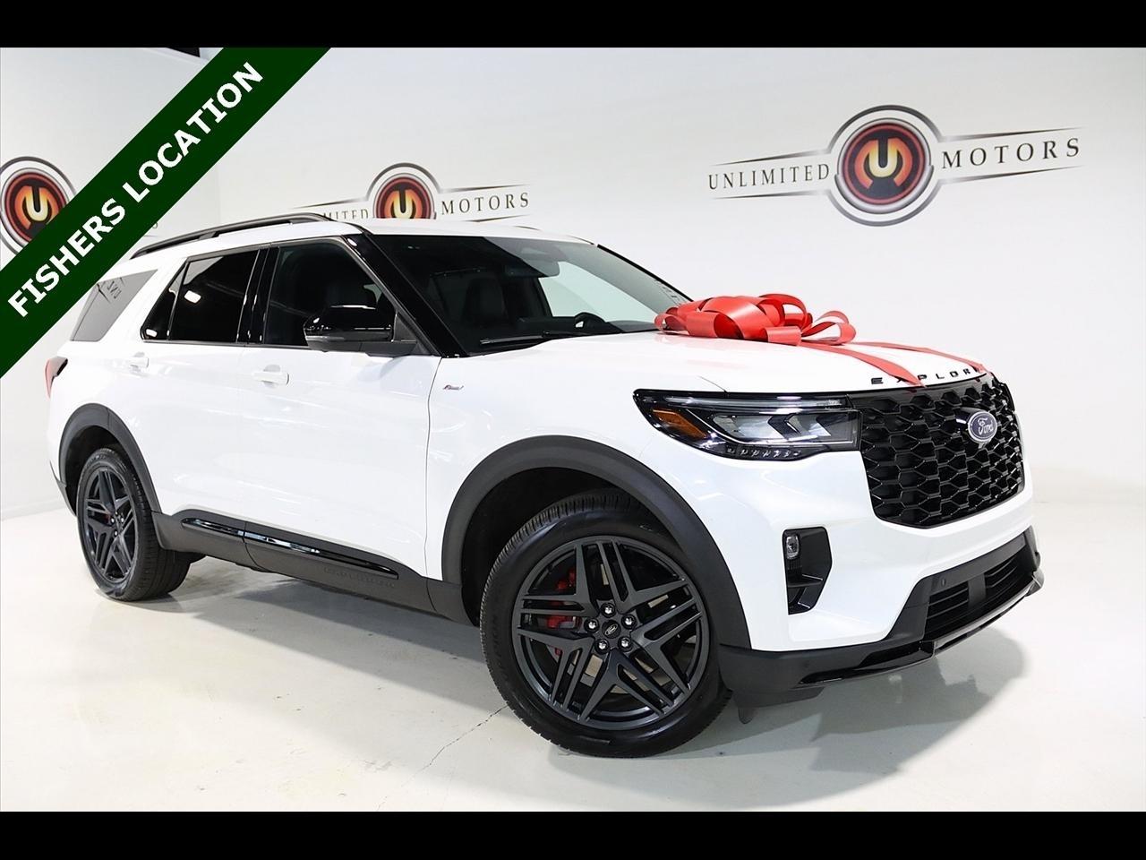 Navigation, Bluetooth, Back Up Camera, 3rd Row, Towing, Heated Seats, Touch Screen, 10 Speakers, 110V/150W AC Power Outlet, 2nd Row Heated Seats, 3.58 Non-Limited Slip Rear Axle, 3rd row seats: bench, 4-Wheel Disc Brakes, ABS brakes, Air Conditioning, Alloy wheels, AM/FM radio: SiriusXM with 360L, Ambient Lighting, Apple CarPlay/Android Auto, Auto High-beam Headlights, Auto-Dimming Interior Rear-View Mirror, Automatic temperature control, Brake assist, Bumpers: body-color, Compass, Delay-off headlights, Driver door bin, Driver vanity mirror, Dual front impact airbags, Dual front side impact airbags, Electronic Stability Control, Emergency communication system: 911 Assist, Equipment Group 300A Standard Package, Exterior Parking Camera Rear, Four wheel independent suspension, Front & 2nd Rows Floor Liners w/Carpet Floor Mats, Front anti-roll bar, Front Bucket Seats, Front Center Armrest, Front dual zone A/C, Front fog lights, Front reading lights, Fully automatic headlights, Garage door transmitter, Heated door mirrors, Heated front seats, Heated steering wheel, Heated Unique Cloth Captain's Chairs, Illuminated entry, Internet access capable: FordPass Connect 5G, Knee airbag, Leather steering wheel, Low tire pressure warning, Memory Driver's Seat, Navigation System, Occupant sensing airbag, Outside temperature display, Overhead airbag, Overhead console, Panic alarm, Passenger door bin, Passenger vanity mirror, Performance Brakes, Power door mirrors, Power driver seat, Power Liftgate, Power passenger seat, Power steering, Power windows, Power-Folding Sideview Mirrors w/Autofold, Premium Package, Radio: B&O Sound System by Bang & Olufsen, Rain-Sensing Wipers (Front Only), Rear air conditioning, Rear anti-roll bar, Rear reading lights, Rear window defroster, Rear window wiper, Red Painted Perf Front & Rear Brake Calipers, Remote keyless entry, Security system, Speed control, Speed-sensing steering, Speed-Sensitive Wipers, Split folding rear seat, Spoiler, ST-Line Street Pack, Steering wheel mounted audio controls, Tachometer, Telescoping steering wheel, Tilt steering wheel, Traction control, Trip computer, Variably intermittent wipers, Wheels: 21 Magnetite-Painted Aluminum, Wireless Charging Pad. CARFAX One-Owner. 20/27 City/Highway MPG Odometer is 3210 miles below market average! Priced below KBB Fair Purchase Price!2025 White Metallic Ford 4D Sport Utility Explorer ST-Line 4WD 10-Speed Automatic 2.3L EcoBoost I-4Visit our website www.iumotors.com to view 100s of newer vehicles, more pictures and info, or to apply for financing. Rates are incredibly low for approved credit. We offer extended warranties, protection packages, and insurance. We assure you the best experience at any of our 4 locations and unbeatable prices and quality. At Unlimited Motors we believe in MARKET VALUE PRICING. We use real-time Internet price comparisons to constantly adjust prices to provide ALL BUYERS The BEST PRICE possible. We do not mark them up, to mark them down! Our entire team is committed to helping you buy a car the way we would want to buy a car! We utilize state-of-the-art technology to constantly monitor pricing trends to offer our shoppers the best competitive pricing, value, and experience. We sell and service all makes and models of Pre-owned / Used Vehicles Used Cars, Used Trucks, Used Sport Utility, Lamborghini, Ferrari, Bentley, Rolls Royce, McLaren, Maserati, Ford, Chevrolet/Chevy, Honda, Toyota, Porsche, Land Rover, Jaguar, INFINITI, Audi, Nissan, Mazda, Hyundai, Chrysler, Jeep, Dodge, Ram, SRT, Mitsubishi, Lexus, Kia, Volkswagen, Mini, BMW, Mercedes, Fiat, Volvo, GMC, Cadillac, Lincoln as well as other brands. Proudly serving these areas of Indianapolis, Fishers, Carmel, Noblesville, Greenwood, Avon, Plainfield, Zionsville, & Brownsburg, Indiana, Midwest. We also serve the entire nation with our seamless and easy online purchasing process, and offer shipping nationwide.Advertised prices DO NOT inc