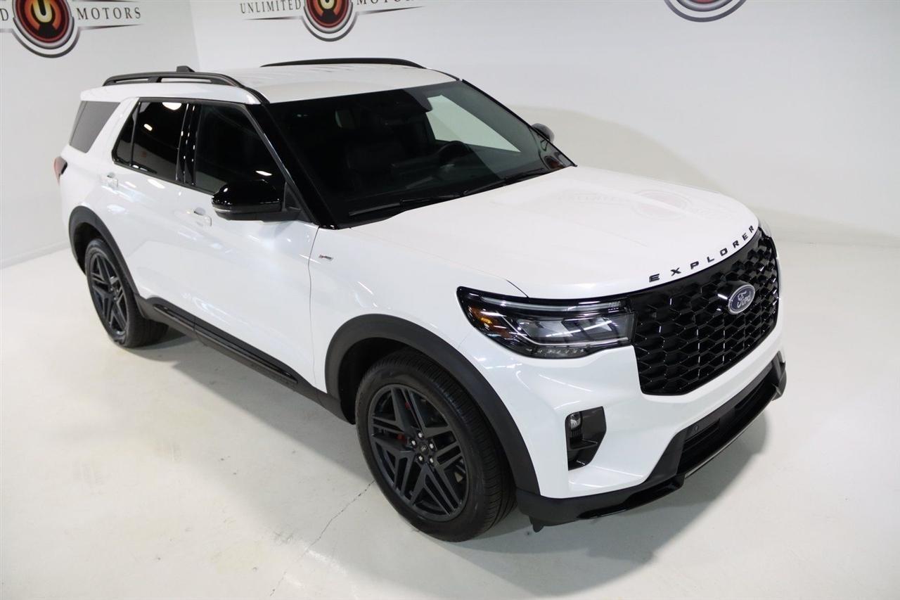 Navigation, Bluetooth, Back Up Camera, 3rd Row, Towing, Heated Seats, Touch Screen, 10 Speakers, 110V/150W AC Power Outlet, 2nd Row Heated Seats, 3.58 Non-Limited Slip Rear Axle, 3rd row seats: bench, 4-Wheel Disc Brakes, ABS brakes, Air Conditioning, Alloy wheels, AM/FM radio: SiriusXM with 360L, Ambient Lighting, Apple CarPlay/Android Auto, Auto High-beam Headlights, Auto-Dimming Interior Rear-View Mirror, Automatic temperature control, Brake assist, Bumpers: body-color, Compass, Delay-off headlights, Driver door bin, Driver vanity mirror, Dual front impact airbags, Dual front side impact airbags, Electronic Stability Control, Emergency communication system: 911 Assist, Equipment Group 300A Standard Package, Exterior Parking Camera Rear, Four wheel independent suspension, Front & 2nd Rows Floor Liners w/Carpet Floor Mats, Front anti-roll bar, Front Bucket Seats, Front Center Armrest, Front dual zone A/C, Front fog lights, Front reading lights, Fully automatic headlights, Garage door transmitter, Heated door mirrors, Heated front seats, Heated steering wheel, Heated Unique Cloth Captain's Chairs, Illuminated entry, Internet access capable: FordPass Connect 5G, Knee airbag, Leather steering wheel, Low tire pressure warning, Memory Driver's Seat, Navigation System, Occupant sensing airbag, Outside temperature display, Overhead airbag, Overhead console, Panic alarm, Passenger door bin, Passenger vanity mirror, Performance Brakes, Power door mirrors, Power driver seat, Power Liftgate, Power passenger seat, Power steering, Power windows, Power-Folding Sideview Mirrors w/Autofold, Premium Package, Radio: B&O Sound System by Bang & Olufsen, Rain-Sensing Wipers (Front Only), Rear air conditioning, Rear anti-roll bar, Rear reading lights, Rear window defroster, Rear window wiper, Red Painted Perf Front & Rear Brake Calipers, Remote keyless entry, Security system, Speed control, Speed-sensing steering, Speed-Sensitive Wipers, Split folding rear seat, Spoiler, ST-Line Street Pack, Steering wheel mounted audio controls, Tachometer, Telescoping steering wheel, Tilt steering wheel, Traction control, Trip computer, Variably intermittent wipers, Wheels: 21 Magnetite-Painted Aluminum, Wireless Charging Pad. CARFAX One-Owner. 20/27 City/Highway MPG Odometer is 4581 miles below market average! Priced below KBB Fair Purchase Price!2025 White Metallic Ford 4D Sport Utility Explorer ST-Line 4WD 10-Speed Automatic 2.3L EcoBoost I-4Visit our website www.iumotors.com to view 100s of newer vehicles, more pictures and info, or to apply for financing. Rates are incredibly low for approved credit. We offer extended warranties, protection packages, and insurance. We assure you the best experience at any of our 4 locations and unbeatable prices and quality. At Unlimited Motors we believe in MARKET VALUE PRICING. We use real-time Internet price comparisons to constantly adjust prices to provide ALL BUYERS The BEST PRICE possible. We do not mark them up, to mark them down! Our entire team is committed to helping you buy a car the way we would want to buy a car! We utilize state-of-the-art technology to constantly monitor pricing trends to offer our shoppers the best competitive pricing, value, and experience. We sell and service all makes and models of Pre-owned / Used Vehicles Used Cars, Used Trucks, Used Sport Utility, Lamborghini, Ferrari, Bentley, Rolls Royce, McLaren, Maserati, Ford, Chevrolet/Chevy, Honda, Toyota, Porsche, Land Rover, Jaguar, INFINITI, Audi, Nissan, Mazda, Hyundai, Chrysler, Jeep, Dodge, Ram, SRT, Mitsubishi, Lexus, Kia, Volkswagen, Mini, BMW, Mercedes, Fiat, Volvo, GMC, Cadillac, Lincoln as well as other brands. Proudly serving these areas of Indianapolis, Fishers, Carmel, Noblesville, Greenwood, Avon, Plainfield, Zionsville, & Brownsburg, Indiana, Midwest. We also serve the entire nation with our seamless and easy online purchasing process, and offer shipping nationwide.Advertised prices DO NOT inc