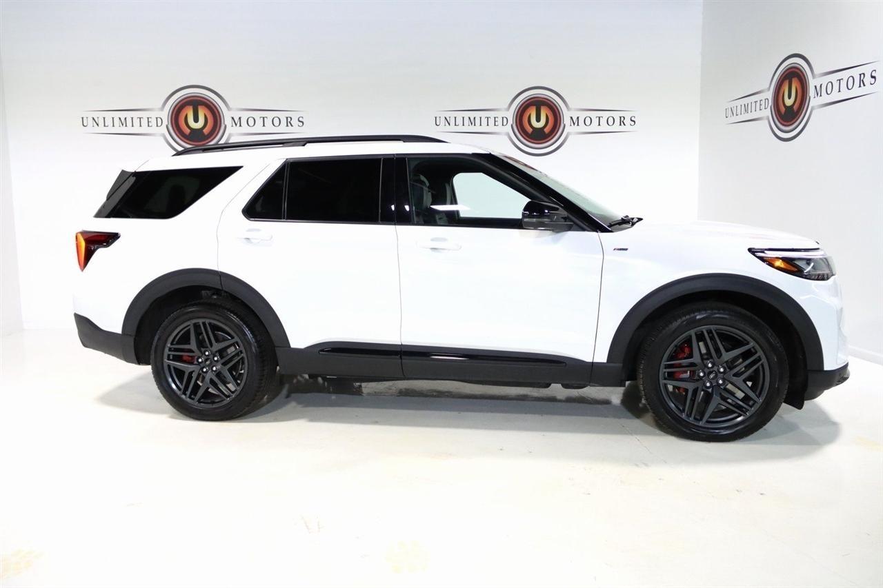 Navigation, Bluetooth, Back Up Camera, 3rd Row, Towing, Heated Seats, Touch Screen, 10 Speakers, 110V/150W AC Power Outlet, 2nd Row Heated Seats, 3.58 Non-Limited Slip Rear Axle, 3rd row seats: bench, 4-Wheel Disc Brakes, ABS brakes, Air Conditioning, Alloy wheels, AM/FM radio: SiriusXM with 360L, Ambient Lighting, Apple CarPlay/Android Auto, Auto High-beam Headlights, Auto-Dimming Interior Rear-View Mirror, Automatic temperature control, Brake assist, Bumpers: body-color, Compass, Delay-off headlights, Driver door bin, Driver vanity mirror, Dual front impact airbags, Dual front side impact airbags, Electronic Stability Control, Emergency communication system: 911 Assist, Equipment Group 300A Standard Package, Exterior Parking Camera Rear, Four wheel independent suspension, Front & 2nd Rows Floor Liners w/Carpet Floor Mats, Front anti-roll bar, Front Bucket Seats, Front Center Armrest, Front dual zone A/C, Front fog lights, Front reading lights, Fully automatic headlights, Garage door transmitter, Heated door mirrors, Heated front seats, Heated steering wheel, Heated Unique Cloth Captain's Chairs, Illuminated entry, Internet access capable: FordPass Connect 5G, Knee airbag, Leather steering wheel, Low tire pressure warning, Memory Driver's Seat, Navigation System, Occupant sensing airbag, Outside temperature display, Overhead airbag, Overhead console, Panic alarm, Passenger door bin, Passenger vanity mirror, Performance Brakes, Power door mirrors, Power driver seat, Power Liftgate, Power passenger seat, Power steering, Power windows, Power-Folding Sideview Mirrors w/Autofold, Premium Package, Radio: B&O Sound System by Bang & Olufsen, Rain-Sensing Wipers (Front Only), Rear air conditioning, Rear anti-roll bar, Rear reading lights, Rear window defroster, Rear window wiper, Red Painted Perf Front & Rear Brake Calipers, Remote keyless entry, Security system, Speed control, Speed-sensing steering, Speed-Sensitive Wipers, Split folding rear seat, Spoiler, ST-Line Street Pack, Steering wheel mounted audio controls, Tachometer, Telescoping steering wheel, Tilt steering wheel, Traction control, Trip computer, Variably intermittent wipers, Wheels: 21 Magnetite-Painted Aluminum, Wireless Charging Pad. CARFAX One-Owner. 20/27 City/Highway MPG Odometer is 4581 miles below market average! Priced below KBB Fair Purchase Price!2025 White Metallic Ford 4D Sport Utility Explorer ST-Line 4WD 10-Speed Automatic 2.3L EcoBoost I-4Visit our website www.iumotors.com to view 100s of newer vehicles, more pictures and info, or to apply for financing. Rates are incredibly low for approved credit. We offer extended warranties, protection packages, and insurance. We assure you the best experience at any of our 4 locations and unbeatable prices and quality. At Unlimited Motors we believe in MARKET VALUE PRICING. We use real-time Internet price comparisons to constantly adjust prices to provide ALL BUYERS The BEST PRICE possible. We do not mark them up, to mark them down! Our entire team is committed to helping you buy a car the way we would want to buy a car! We utilize state-of-the-art technology to constantly monitor pricing trends to offer our shoppers the best competitive pricing, value, and experience. We sell and service all makes and models of Pre-owned / Used Vehicles Used Cars, Used Trucks, Used Sport Utility, Lamborghini, Ferrari, Bentley, Rolls Royce, McLaren, Maserati, Ford, Chevrolet/Chevy, Honda, Toyota, Porsche, Land Rover, Jaguar, INFINITI, Audi, Nissan, Mazda, Hyundai, Chrysler, Jeep, Dodge, Ram, SRT, Mitsubishi, Lexus, Kia, Volkswagen, Mini, BMW, Mercedes, Fiat, Volvo, GMC, Cadillac, Lincoln as well as other brands. Proudly serving these areas of Indianapolis, Fishers, Carmel, Noblesville, Greenwood, Avon, Plainfield, Zionsville, & Brownsburg, Indiana, Midwest. We also serve the entire nation with our seamless and easy online purchasing process, and offer shipping nationwide.Advertised prices DO NOT inc