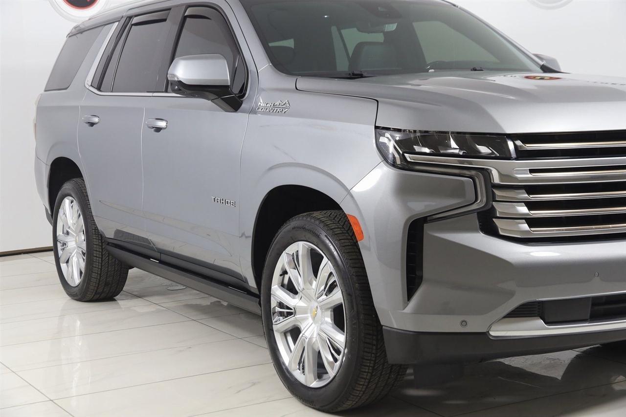 4x4, AWD, Back Up Camera, Bluetooth, Heated Seats, Navigation/GPS, Push Button Start, 4-Matic, Power Running Boards, and much more ..., Touch Screen, Tahoe High Country, 4D Sport Utility, EcoTec3 6.2L V8, 10-Speed Automatic with Overdrive, 4WD, Sterling Gray Metallic, Jet Black Leather, 15" Diagonal Multi-Color Head-Up Display, 1st & 2nd Row Color-Keyed Carpeted Floor Mats, 2-Speed Active Electronic AutoTrac Transfer Case, 3rd Row 60/40 Power-Folding Split-Bench Seat, Automatic Emergency Braking, Bose 10-Speaker Centerpoint Surround Audio Sys Ft, Bright Front & Rear Door Sill Plates, Chrome Door Handles w/Body-Color Strip, Color-Keyed Carpeting Floor Covering, Driver & Front Outboard Passenger Airbags, Dual Exhaust System, Dual-Pane Power Panoramic Sunroof, Electronic Cruise Control w/Set & Resume Speed, Enhanced Automatic Emergency Braking, Enhanced Driver Information Center, Floor Console, Hands-Free Rear Power Programmable Liftgate, HD Surround Vision, Heated 2nd Row Outboard Seats, Heated Steering Wheel, Hill Descent Control, Infotainment Display, Inside Rearview Auto-Dimming Rear Camera Mirror, Lane Change Alert w/Side Blind Zone Alert, LED Daytime Running Lamps, Memory Settings, Navigation System, Not Equipped w/Cruise Control & Auto Braking, Outside Heated Power-Adjustable Mirrors, Power Release 2nd Row Bucket Seats, Power Tilt & Telescopic Steering Column, Power-Retractable Assist Steps, Preferred Equipment Group 3LZ, Premium Package 2, Rear Camera Mirror Washer, Rear Cross Traffic Alert, Rear Pedestrian Alert, Remote Start, Safety Alert Seat, SiriusXM Radio w/360L, Universal Home Remote, Wireless Charging, Wrapped Steering Wheel.