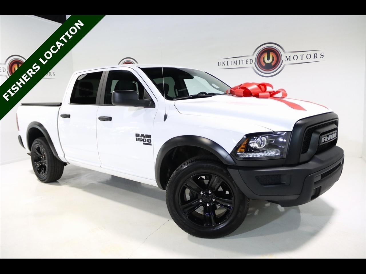 Bluetooth, Back Up Camera, Touch Screen, 17 x 7 Aluminum Wheels, 3.21 Rear Axle Ratio, 4-Wheel Disc Brakes, 40/20/40 Split Bench Seat, 4x4 Flat Black Badge, 6 Speakers, ABS brakes, Active Grille Shutters, Air Conditioning, Alloy wheels, AM/FM radio: SiriusXM, Audio Input Jack for Mobile Devices, B-Pillar Black Out, Bi-Function Halogen Projector Headlamps, Black Exterior Mirrors, Black Exterior Truck Badging, Black Grille w/RAM Lettering, Black Headlamp Filler Panel, Black Powder Coated Front Bumper, Black Powder Coated Rear Bumper, Black RAM Head Tailgate Badge, Black Wheel Flares, Brake assist, Bumpers: chrome, Center Hub, Cloth 40/20/40 Bench Seat, Compass, Delay-off headlights, Driver door bin, Dual front impact airbags, Dual front side impact airbags, Electronic Shift, Electronic Stability Control, Exterior Mirrors w/Heating Element, Front anti-roll bar, Front Armrest w/3 Cupholders, Front Center Armrest w/Storage, Front reading lights, Front wheel independent suspension, Front Wheel Well Liners, Fully automatic headlights, GPS Antenna Input, Heated door mirrors, Illuminated entry, Integrated Voice Command w/Bluetooth, Low tire pressure warning, Manufacturer's Statement of Origin, Occupant sensing airbag, Outside temperature display, Overhead airbag, Overhead console, Panic alarm, ParkSense Rear Park Assist System, ParkView Rear Back-Up Camera, Passenger door bin, Passenger vanity mirror, Power door mirrors, Power steering, Power windows, Quick Order Package 29F Warlock, Radio data system, Radio: Uconnect 3 w/5 Display, Raised Ride Height, Rear anti-roll bar, Rear Extra HD Shock Absorbers, Rear seat center armrest, Rear step bumper, Remote keyless entry, Remote USB Port, Remote USB Port - Charge Only, Semi-Gloss Black Hub, Speed control, Sport Tail Lamps, Storage Tray, Tachometer, Tilt steering wheel, Tip Start, Traction control, Trip computer, Variably intermittent wipers, Voltmeter, Warlock, Warlock Interior Accents, Wheels: 20 x 9 High Gloss Black Aluminum. CARFAX One-Owner. Clean CARFAX. Odometer is 5941 miles below market average! Priced below KBB Fair Purchase Price!2024 Bright White Clearcoat Ram 4D Crew Cab 1500 Classic Warlock 4WD 8-Speed Automatic 3.6L V6 24V VVTVisit our website www.iumotors.com to view 100s of newer vehicles, more pictures and info, or to apply for financing. Rates are incredibly low for approved credit. We offer extended warranties, protection packages, and insurance. We assure you the best experience at any of our 4 locations and unbeatable prices and quality. At Unlimited Motors we believe in MARKET VALUE PRICING. We use real-time Internet price comparisons to constantly adjust prices to provide ALL BUYERS The BEST PRICE possible. We do not mark them up, to mark them down! Our entire team is committed to helping you buy a car the way we would want to buy a car! We utilize state-of-the-art technology to constantly monitor pricing trends to offer our shoppers the best competitive pricing, value, and experience. We sell and service all makes and models of Pre-owned / Used Vehicles Used Cars, Used Trucks, Used Sport Utility, Lamborghini, Ferrari, Bentley, Rolls Royce, McLaren, Maserati, Ford, Chevrolet/Chevy, Honda, Toyota, Porsche, Land Rover, Jaguar, INFINITI, Audi, Nissan, Mazda, Hyundai, Chrysler, Jeep, Dodge, Ram, SRT, Mitsubishi, Lexus, Kia, Volkswagen, Mini, BMW, Mercedes, Fiat, Volvo, GMC, Cadillac, Lincoln as well as other brands. Proudly serving these areas of Indianapolis, Fishers, Carmel, Noblesville, Greenwood, Avon, Plainfield, Zionsville, & Brownsburg, Indiana, Midwest. We also serve the entire nation with our seamless and easy online purchasing process, and offer shipping nationwide.Advertised prices DO NOT include Sales Tax, Dealer Fees, Title Processing Charges, and Dealer Pre-installed Products.