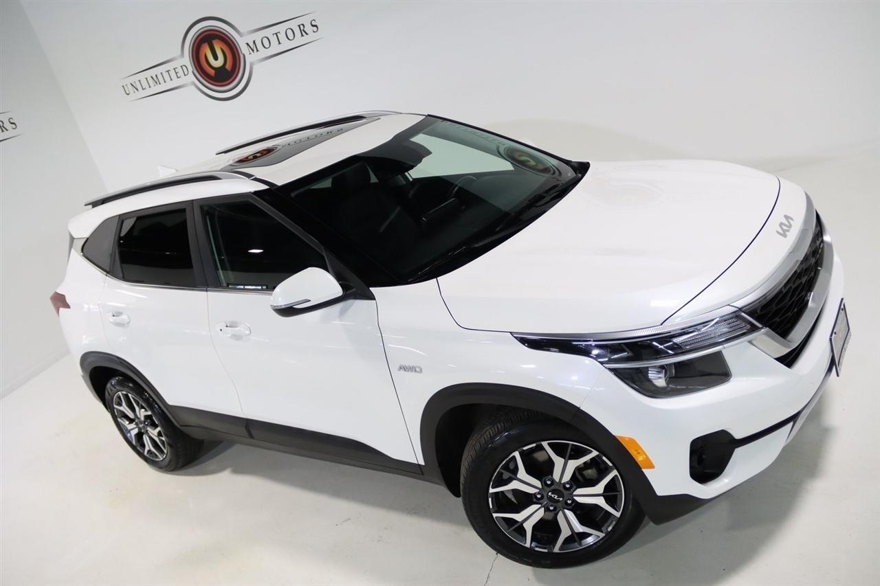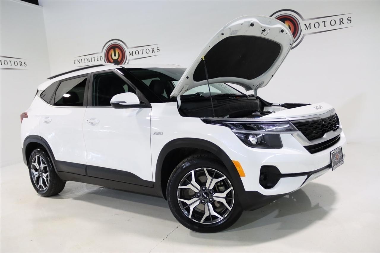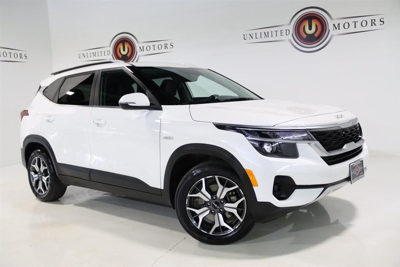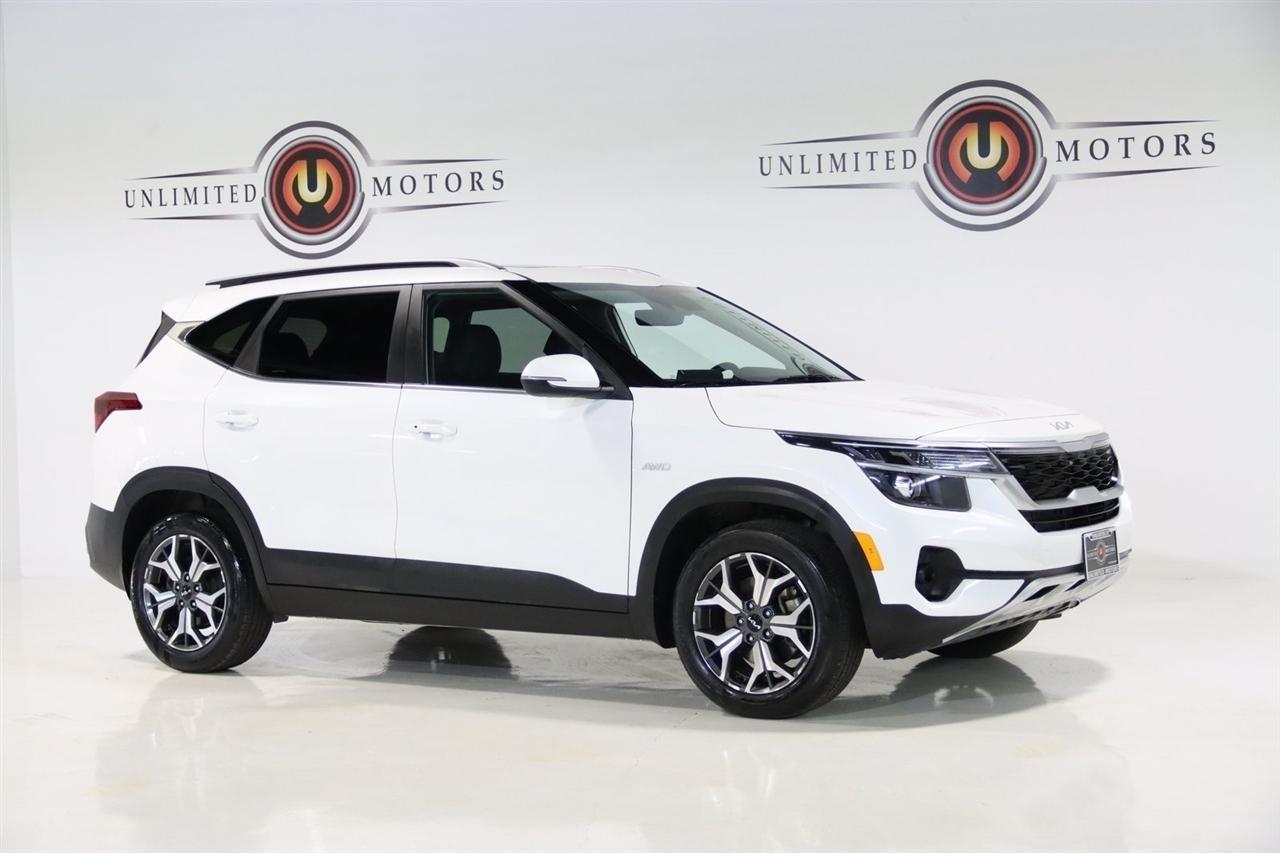 Navigation, Bluetooth, Back Up Camera, Sun/Moon Roof, Touch Screen, 4-Wheel Disc Brakes, 6 Speakers, 6.052 Axle Ratio, ABS brakes, Air Conditioning, Alloy wheels, AM/FM radio: SiriusXM, Apple CarPlay & Android Auto, Auto Dimming Mirror w/HomeLink & Compass, Auto High-beam Headlights, Automatic temperature control, Brake assist, Bumpers: body-color, Carpet Floor Mats, Delay-off headlights, Driver door bin, Driver vanity mirror, Dual front impact airbags, Dual front side impact airbags, Electronic Stability Control, Emergency communication system: 911 Connect, Exterior Parking Camera Rear, Four wheel independent suspension, Front anti-roll bar, Front Bucket Seats, Front Center Armrest, Front fog lights, Front reading lights, Fully automatic headlights, Heated door mirrors, Heated Front Bucket Seats, Heated front seats, Illuminated entry, Leather Shift Knob, Low tire pressure warning, Mud Guards, Navigation System, Occupant sensing airbag, Outside temperature display, Overhead airbag, Overhead console, Panic alarm, Passenger door bin, Passenger vanity mirror, Power door mirrors, Power driver seat, Power moonroof, Power steering, Power windows, Radio: AM/FM/MP3 Display Audio w/Navigation, Rear seat center armrest, Rear window defroster, Rear window wiper, Remote keyless entry, Security system, Sofino Premium Leatherette Seat Trim, Speed control, Speed-sensing steering, Split folding rear seat, Spoiler, Steering wheel mounted audio controls, Tachometer, Telescoping steering wheel, Tilt steering wheel, Traction control, Trip computer, Turn signal indicator mirrors, Variably intermittent wipers, Wheels: 17 Alloy w/Machined Finish. CARFAX One-Owner. 27/31 City/Highway MPG Odometer is 13979 miles below market average! Priced below KBB Fair Purchase Price!2023 Snow White Pearl Kia 4D Sport Utility Seltos EX AWD CVT 2.0L I4 MPIVisit our website www.iumotors.com to view 100s of newer vehicles, more pictures and info, or to apply for financing. Rates are incredibly low for approved credit. We offer extended warranties, protection packages, and insurance. We assure you the best experience at any of our 4 locations and unbeatable prices and quality. At Unlimited Motors we believe in MARKET VALUE PRICING. We use real-time Internet price comparisons to constantly adjust prices to provide ALL BUYERS The BEST PRICE possible. We do not mark them up, to mark them down! Our entire team is committed to helping you buy a car the way we would want to buy a car! We utilize state-of-the-art technology to constantly monitor pricing trends to offer our shoppers the best competitive pricing, value, and experience. We sell and service all makes and models of Pre-owned / Used Vehicles Used Cars, Used Trucks, Used Sport Utility, Lamborghini, Ferrari, Bentley, Rolls Royce, McLaren, Maserati, Ford, Chevrolet/Chevy, Honda, Toyota, Porsche, Land Rover, Jaguar, INFINITI, Audi, Nissan, Mazda, Hyundai, Chrysler, Jeep, Dodge, Ram, SRT, Mitsubishi, Lexus, Kia, Volkswagen, Mini, BMW, Mercedes, Fiat, Volvo, GMC, Cadillac, Lincoln as well as other brands. Proudly serving these areas of Indianapolis, Fishers, Carmel, Noblesville, Greenwood, Avon, Plainfield, Zionsville, & Brownsburg, Indiana, Midwest. We also serve the entire nation with our seamless and easy online purchasing process, and offer shipping nationwide.Advertised prices DO NOT include Sales Tax, Dealer Fees, Title Processing Charges, and Dealer Pre-installed Products.