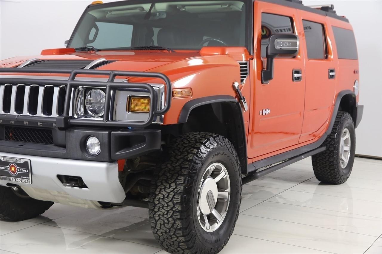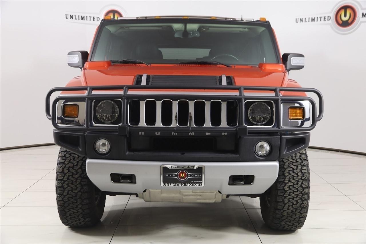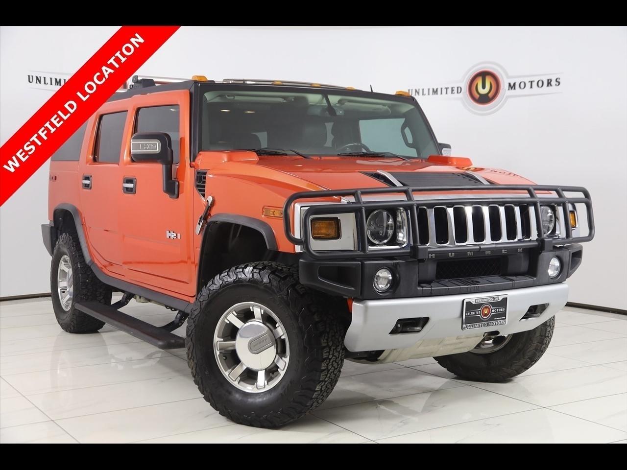 2008 Hummer H2 Solar Flare Metallic Now Available at Unlimited Motors Westfield! With over 20 years in business and 4 Indiana locations, Unlimited Motors is known for offering high-quality, hand-selected vehicles at excellent pricing with outstanding customer service. Our inventory of over 1,000 vehicles includes major makes such as Ford, Chevrolet, Ram, Jeep, GMC, Dodge, BMW, Mercedes-Benz, Audi, Cadillac, Porsche, Maserati, Ferrari, and Lamborghini, giving customers one of the largest selections of quality vehicles in the Midwest. Vehicle Highlights:Navigation, Back Up Camera, Bluetooth, Sun/Moon Roof, Power Running Boards, Touch Screen, Heated Front & Rear Seats, 4D Sport Utility, Vortec 6.2L V8 SFI, 6-Speed Automatic HD Electronic with Overdrive, 4WD, Solar Flare Metallic, Ebony Leather, 17 x 8.5 Polished Aluminum Wheels, AM/FM Stereo w/CD/DVD/MP3/XM Satellite, AM/FM stereo, with DVD Navigation and XM Satellite Radio, Bose 5.1 Cabin Surround Sound Audio System Feature, Chrome Aluminum Hood Handles (Set of 2), Chrome Aluminum Hood Latches (Set of 2), Chrome Appearance Package, Front & Rear Carpeted Floor Mats, Luxury Series Package 1SC, Navigation System, Power Tilt-Sliding Sunroof w/Express-Open, Rear-Seat DVD Player Entertainment System, Two-Passenger Third Row Folding Seat, XM Satellite Radio.Clean CARFAX.Visit www.iumotors.com to explore our full inventory of over 1,000 hand-picked vehicles across our Westfield, Fishers, Noblesville, and Elwood locations. At Unlimited Motors, we offer a premium car-buying experience with competitive financing through local credit unions and national lenders, top trade-in values, full auto repair and maintenance services for customer vehicles, and nationwide shipping to all 50 states. Youll also find many of the most searched and in-demand models, including Ford F-150, Chevrolet Silverado, Ram 1500, Jeep Wrangler, Jeep Grand Cherokee, Chevrolet Tahoe, Chevrolet Suburban, GMC Yukon, GMC Sierra, Dodge Charger, Dodge Durango, Ford Explorer, BMW X5, BMW X3, BMW 3 Series, Mercedes-Benz GLE, Mercedes-Benz GLC, Cadillac Escalade, Audi Q5, Audi Q7, Porsche Cayenne, Porsche Macan, Maserati Ghibli, and more. Whether youre visiting from Westfield, Indianapolis, Carmel, Fishers, Noblesville, Zionsville, Greenwood, Lawrence, Brownsburg, Avon, Plainfield, Lebanon, Anderson, Muncie, Kokomo, Lafayette, Bloomington, Columbus, or anywhere across Central and Northern Indiana, we are here to help you find the perfect vehicle with exceptional service and unbeatable value. Call us today at 317-896-4488 1470 W Tournament Trl, Westfield, IN 46074. Disclaimer: Advertised prices DO NOT include Sales Tax, Dealer Fees, Title Processing Charges, and Dealer Pre-installed Products.