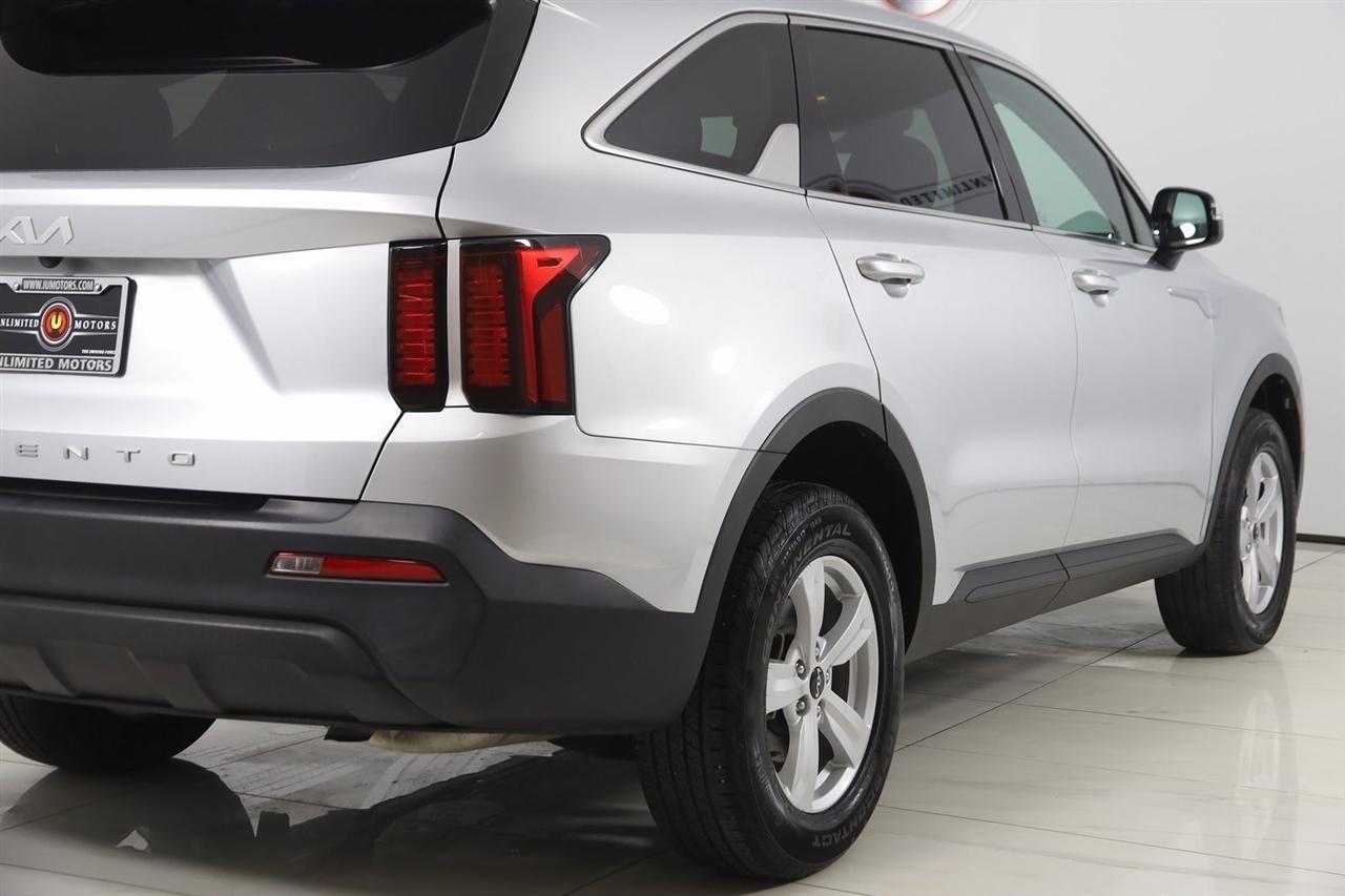 2022 Kia Sorento Sparkling Silver Now Available at Unlimited Motors Westfield! With over 20 years in business and 4 Indiana locations, Unlimited Motors is known for offering high-quality, hand-selected vehicles at excellent pricing with outstanding customer service. Our inventory of over 1,000 vehicles includes major makes such as Ford, Chevrolet, Ram, Jeep, GMC, Dodge, BMW, Mercedes-Benz, Audi, Cadillac, Porsche, Maserati, Ferrari, and Lamborghini, giving customers one of the largest selections of quality vehicles in the Midwest. Vehicle Highlights:Back Up Camera, Bluetooth, Touch Screen, Sorento LX, 4D Sport Utility, 2.5L I4 DGI DOHC 16V LEV3-ULEV70 191hp, 8-Speed Automatic, AWD, Sparkling Silver, Black Cloth.CARFAX One-Owner. Priced below KBB Fair Purchase Price!Visit www.iumotors.com to explore our full inventory of over 1,000 hand-picked vehicles across our Westfield, Fishers, Noblesville, and Elwood locations. At Unlimited Motors, we offer a premium car-buying experience with competitive financing through local credit unions and national lenders, top trade-in values, full auto repair and maintenance services for customer vehicles, and nationwide shipping to all 50 states. Youll also find many of the most searched and in-demand models, including Ford F-150, Chevrolet Silverado, Ram 1500, Jeep Wrangler, Jeep Grand Cherokee, Chevrolet Tahoe, Chevrolet Suburban, GMC Yukon, GMC Sierra, Dodge Charger, Dodge Durango, Ford Explorer, BMW X5, BMW X3, BMW 3 Series, Mercedes-Benz GLE, Mercedes-Benz GLC, Cadillac Escalade, Audi Q5, Audi Q7, Porsche Cayenne, Porsche Macan, Maserati Ghibli, and more. Whether youre visiting from Westfield, Indianapolis, Carmel, Fishers, Noblesville, Zionsville, Greenwood, Lawrence, Brownsburg, Avon, Plainfield, Lebanon, Anderson, Muncie, Kokomo, Lafayette, Bloomington, Columbus, or anywhere across Central and Northern Indiana, we are here to help you find the perfect vehicle with exceptional service and unbeatable value. Call us today at 317-896-4488 1470 W Tournament Trl, Westfield, IN 46074. Disclaimer: Advertised prices DO NOT include Sales Tax, Dealer Fees, Title Processing Charges, and Dealer Pre-installed Products.