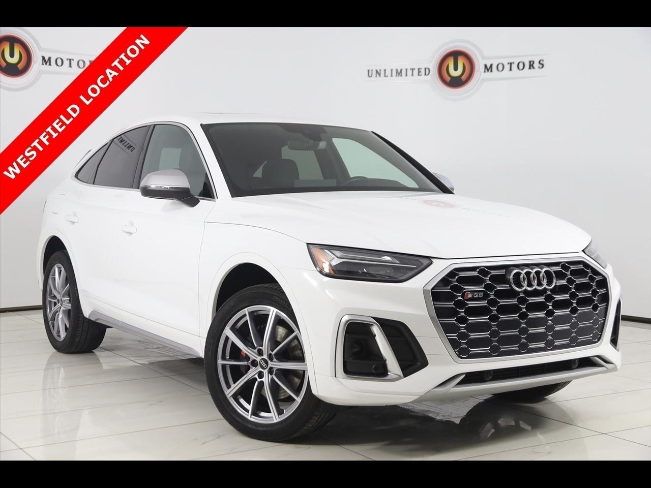 2022 Audi SQ5 Sportback Ibis White Now Available at Unlimited Motors Westfield! With over 20 years in business and 4 Indiana locations, Unlimited Motors is known for offering high-quality, hand-selected vehicles at excellent pricing with outstanding customer service. Our inventory of over 1,000 vehicles includes major makes such as Ford, Chevrolet, Ram, Jeep, GMC, Dodge, BMW, Mercedes-Benz, Audi, Cadillac, Porsche, Maserati, Ferrari, and Lamborghini, giving customers one of the largest selections of quality vehicles in the Midwest. Vehicle Highlights:Navigation, Back Up Camera, Bluetooth, Panoramic Roof, Touch Screen, Heated Front Seats, Ventilated Front Seats, Blind Spot, Memory Driver Seat, Apple CarPlay/Android Auto, SQ5 Sportback Premium quattro, 4D Sport Utility, 3.0L TFSI, 8-Speed Automatic with Tiptronic, quattro, Ibis White, Black Leather, Navigation System.CARFAX One-Owner. Clean CARFAX.Visit www.iumotors.com to explore our full inventory of over 1,000 hand-picked vehicles across our Westfield, Fishers, Noblesville, and Elwood locations. At Unlimited Motors, we offer a premium car-buying experience with competitive financing through local credit unions and national lenders, top trade-in values, full auto repair and maintenance services for customer vehicles, and nationwide shipping to all 50 states. Youll also find many of the most searched and in-demand models, including Ford F-150, Chevrolet Silverado, Ram 1500, Jeep Wrangler, Jeep Grand Cherokee, Chevrolet Tahoe, Chevrolet Suburban, GMC Yukon, GMC Sierra, Dodge Charger, Dodge Durango, Ford Explorer, BMW X5, BMW X3, BMW 3 Series, Mercedes-Benz GLE, Mercedes-Benz GLC, Cadillac Escalade, Audi Q5, Audi Q7, Porsche Cayenne, Porsche Macan, Maserati Ghibli, and more. Whether youre visiting from Westfield, Indianapolis, Carmel, Fishers, Noblesville, Zionsville, Greenwood, Lawrence, Brownsburg, Avon, Plainfield, Lebanon, Anderson, Muncie, Kokomo, Lafayette, Bloomington, Columbus, or anywhere across Central and Northern Indiana, we are here to help you find the perfect vehicle with exceptional service and unbeatable value. Call us today at 317-896-4488 1470 W Tournament Trl, Westfield, IN 46074. Disclaimer: Advertised prices DO NOT include Sales Tax, Dealer Fees, Title Processing Charges, and Dealer Pre-installed Products.