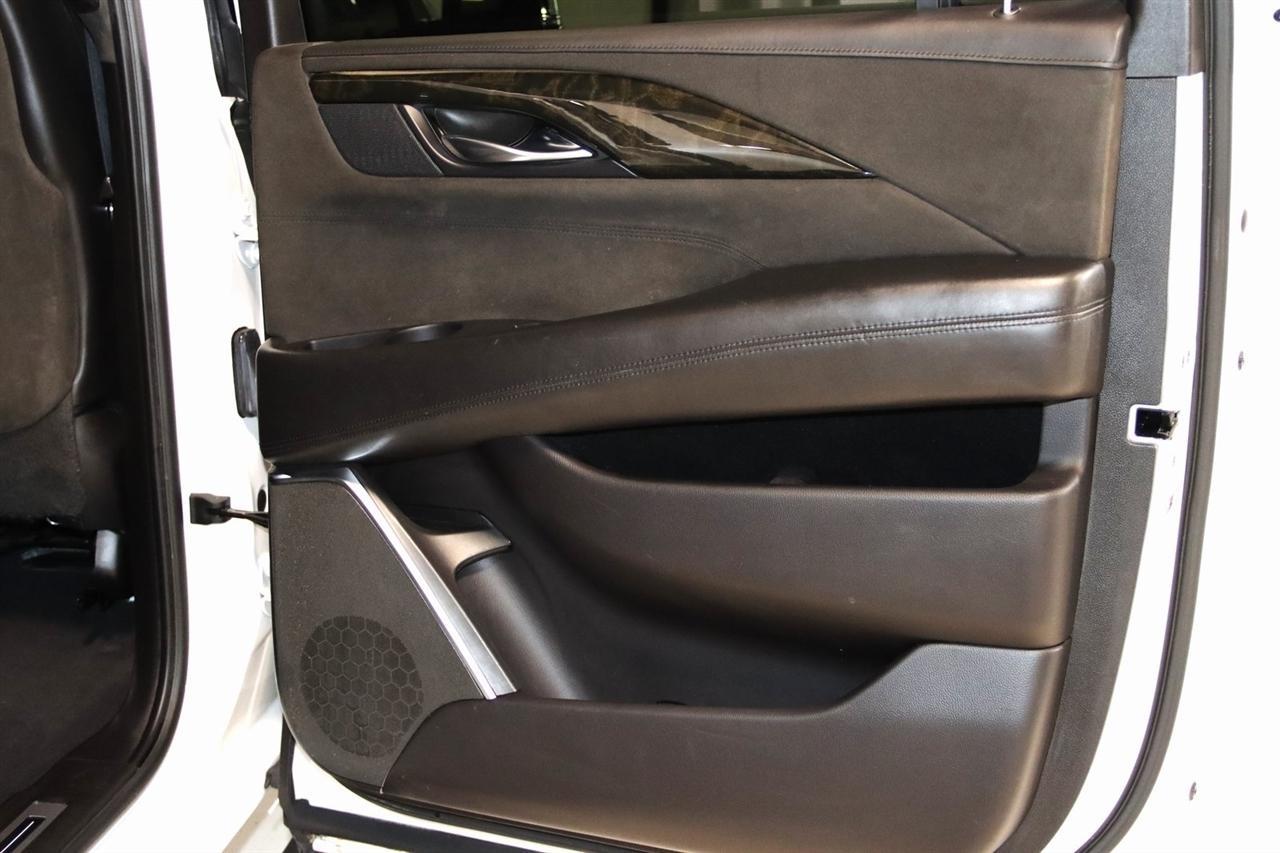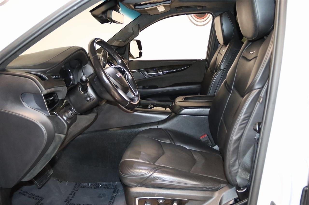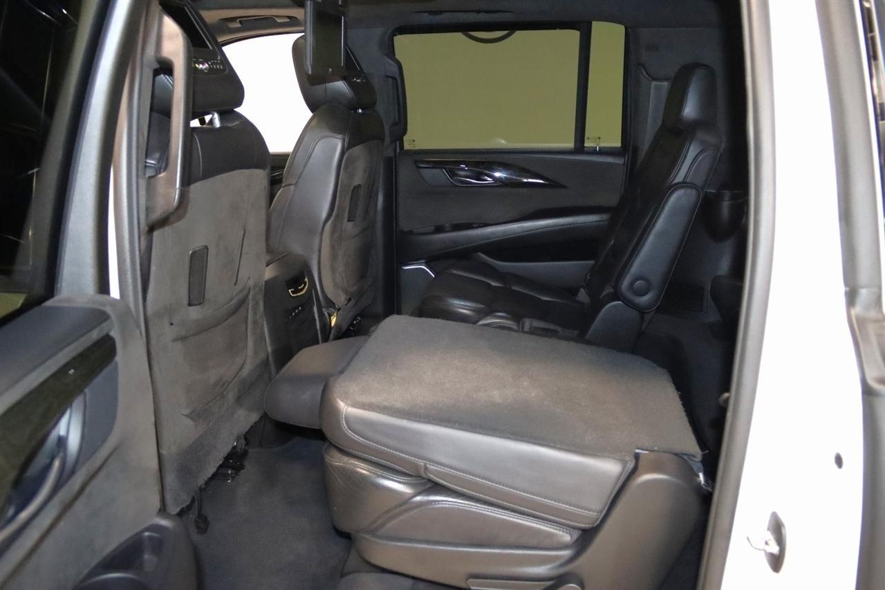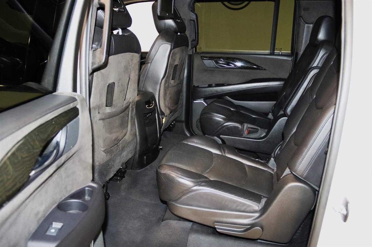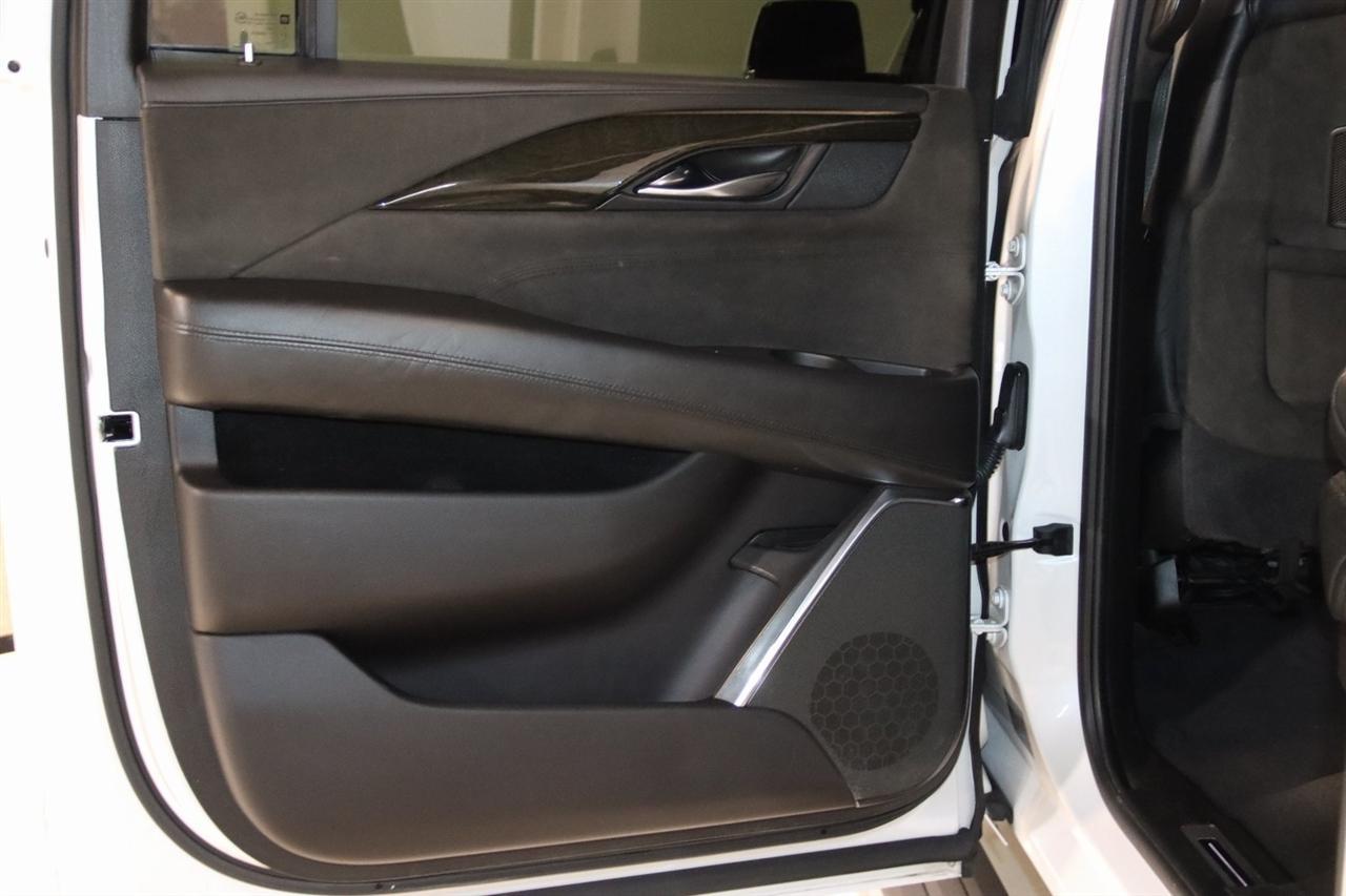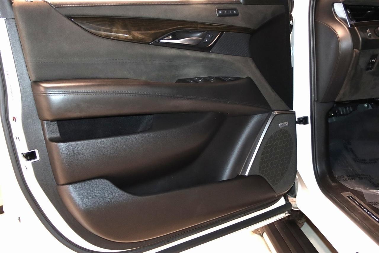 Navigation, Bluetooth, Back Up Camera, Entertainment, Sun/Moon Roof, 3rd Row, Towing, Heated Seats, Touch Screen, 16 Speakers, 3.23 Axle Ratio, 3rd Row DVD Screen, 3rd row seats: split-bench, 4-Wheel Disc Brakes, A/V remote, ABS brakes, Adaptive Full-Speed Range Cruise Control, Adaptive suspension, Adjustable pedals, Air Conditioning, All-Weather Floor Liner (LPO), Alloy wheels, AM/FM radio: SiriusXM, Apple CarPlay/Android Auto, Auto High-beam Headlights, Auto tilt-away steering wheel, Auto-dimming door mirrors, Auto-leveling suspension, Automatic Safety Belt Tightening, Automatic temperature control, Bodyside moldings, Bose Centerpoint 16 Speaker Surround Sound System, Brake assist, Bumpers: body-color, CD player, Compass, Cooled Console w/Covered Storage, Delay-off headlights, Digital Headphones (LPO), Driver Assist Package, Driver door bin, Driver vanity mirror, Dual DVD Screens, Dual front impact airbags, Dual front side impact airbags, DVD-Audio, Electronic Powered Parking Brake, Electronic Stability Control, Emergency communication system: OnStar and Cadillac connected services capable, Exterior Parking Camera Rear, Forward Collision Alert, Forward/Reverse Automatic Braking, Front anti-roll bar, Front Bucket Seats, Front Center Armrest w/Storage, Front Cornering Lamps, Front dual zone A/C, Front reading lights, Front wheel independent suspension, Fully automatic headlights, Garage door transmitter, Genuine wood dashboard insert, HD Radio, Headphones, Heads-Up Display, Heated & Cooled Front Seats, Heated door mirrors, Heated front seats, Heated rear seats, Heated steering wheel, Highway Safety Kit, Illuminated Door Handles, Illuminated entry, Inclination Sensor, IntelliBeam Automatic High Beam On/Off, Lane Change Alert w/Side Blind Zone Alert, Lane Keep Assist w/Lane Departure Warning, Leather Shift Knob, Leather steering wheel, Leather Wrapped IP/Console/Door, Low tire pressure warning, Magnetic Ride Control Suspension, Memory seat, Microfiber Sueded Headliner, Navigation System, Occupant sensing airbag, Outside temperature display, Overhead airbag, Overhead console, Panic alarm, Passenger door bin, Passenger vanity mirror, Pedal memory, Platinum Package, Platinum Sill Plates, Polished Exhaust Tip, Power Configurable Second Row Bucket Seats, Power door mirrors, Power driver seat, Power Liftgate, Power moonroof, Power passenger seat, Power steering, Power Tilt-Sliding Sunroof w/Express-Open/Close, Power windows, Preferred Equipment Group 1SD, Premium Floor Mats, Radio data system, Radio: AM/FM Cadillac User Experience w/Nav, Rain sensing wipers, Rear air conditioning, Rear anti-roll bar, Rear audio controls, Rear Camera Mirror, Rear Camera Washer, Rear Cross-Traffic Alert, Rear reading lights, Rear Seat Entertainment System, Rear window defroster, Rear window wiper, Reconfigurable 4-Color Head-Up Display, Remote keyless entry, Roof rack: rails only, Safety Alert Seat, Security system, Semi-Aniline Leather Seating Surfaces, SiriusXM NavTraffic, SiriusXM Satellite Radio, Speed control, Split folding rear seat, Spoiler, Steering wheel memory, Steering wheel mounted audio controls, Sumi Black Tamo Ash Unique Exotic Wood, Tachometer, Telescoping steering wheel, Theft-Deterrent Alarm System, Theft-Deterrent Package, Tilt steering wheel, Traction control, Trip computer, Turn signal indicator mirrors, Unique Grille Design, VAC Power 17 Disc Brakes w/Adaptive Cruise Control, Variably intermittent wipers, Vehicle Interior Movement Sensor, Ventilated front seats, Wheels: 22 x 9 Premium Painted w/Chrome Inserts. Odometer is 9506 miles below market average! Priced below KBB Fair Purchase Price!2018 Crystal White Tricoat Cadillac 4D Sport Utility Escalade ESV Platinum Edition 4WD 10-Speed Automatic with Overdrive 6.2L Variable Valve Timing V8 SIDIVisit our website www.iumotors.com to view 100s of newer vehicles, more pictures and info, or to apply for financing. Rates are incredibly low for approved credit. We of