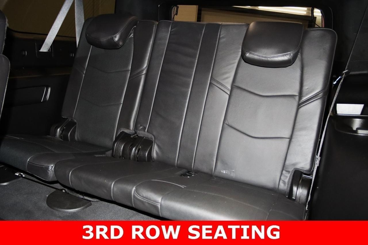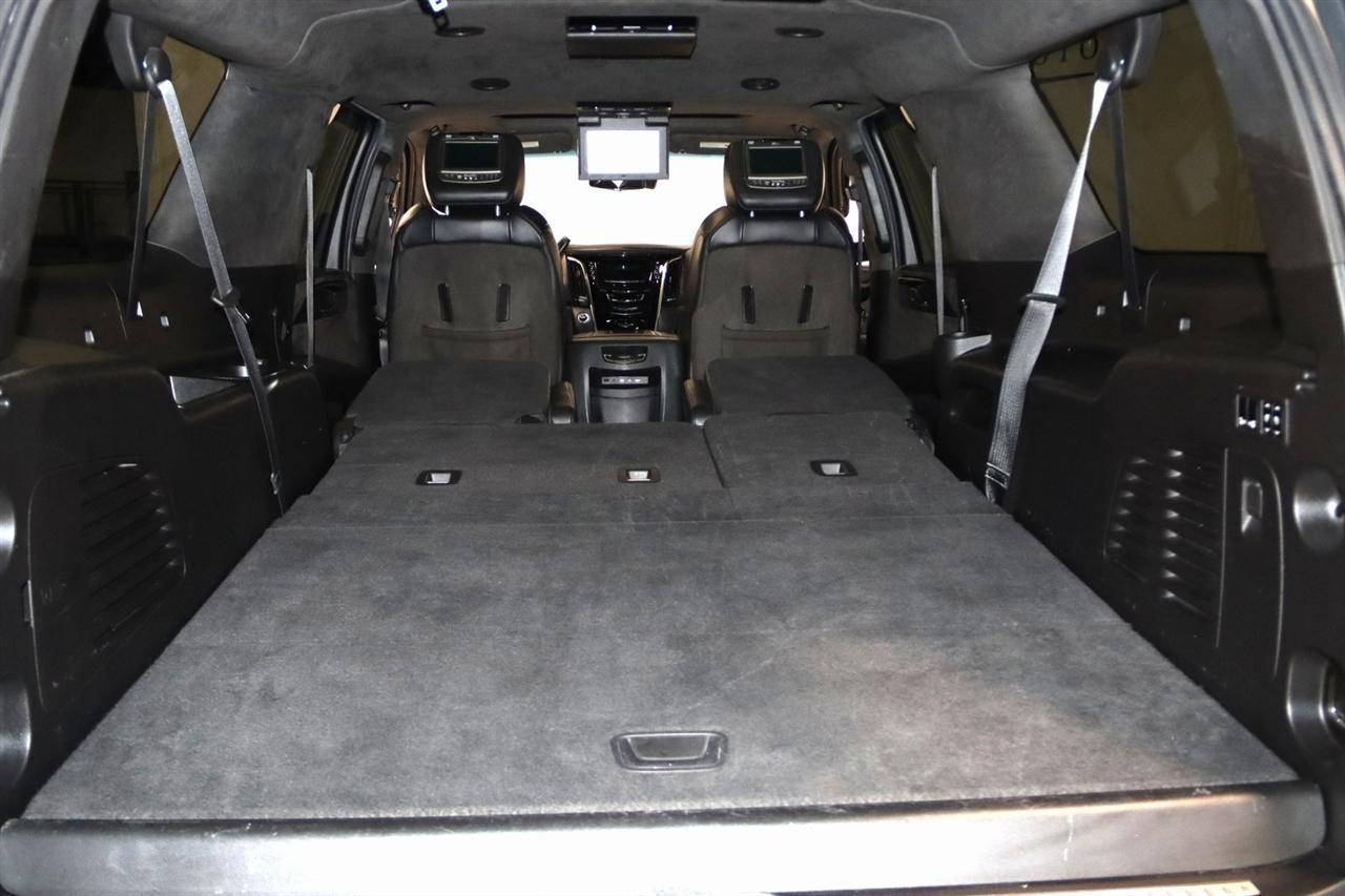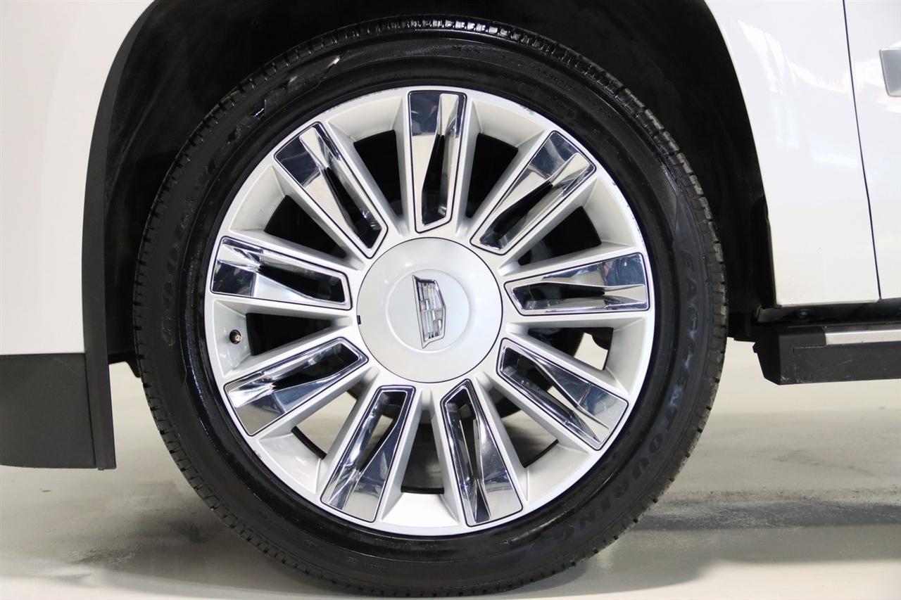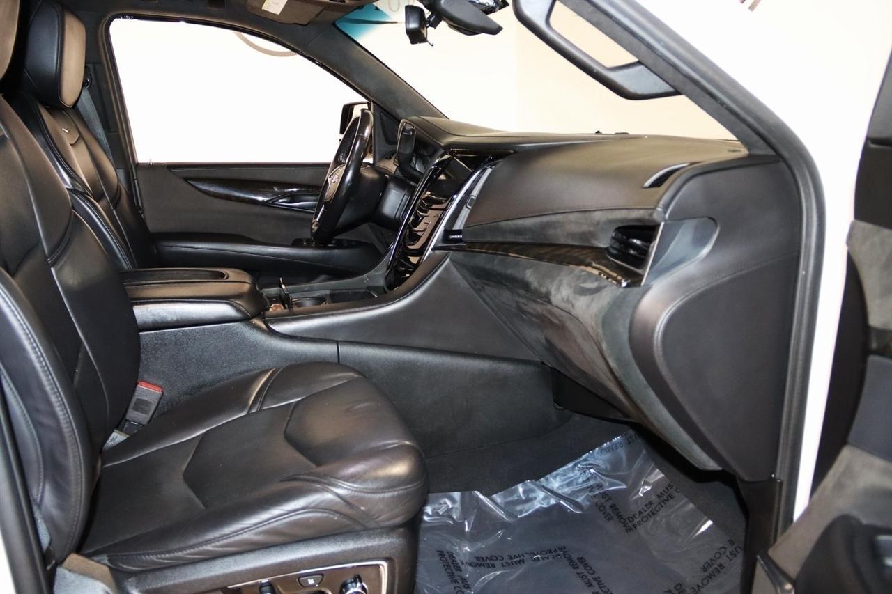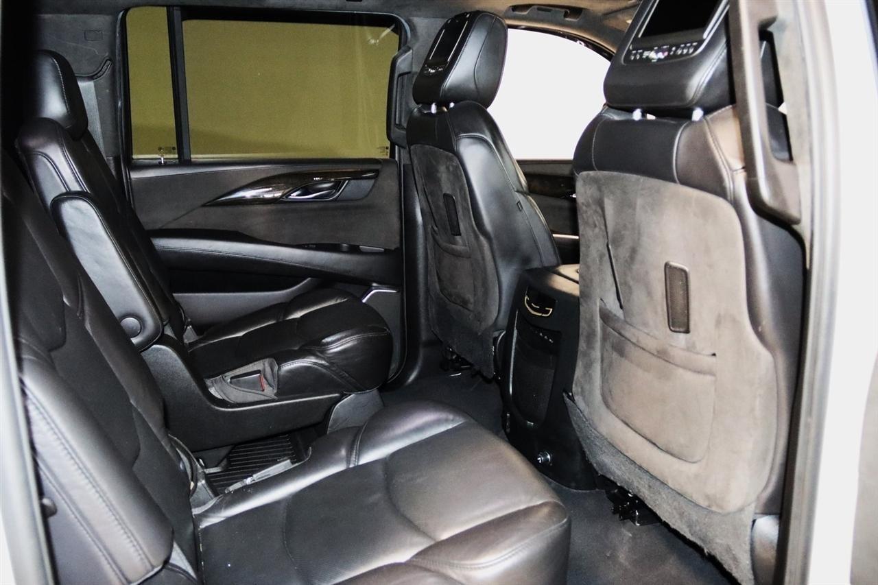 Navigation, Bluetooth, Back Up Camera, Entertainment, Sun/Moon Roof, 3rd Row, Towing, Heated Seats, Touch Screen, 16 Speakers, 3.23 Axle Ratio, 3rd Row DVD Screen, 3rd row seats: split-bench, 4-Wheel Disc Brakes, A/V remote, ABS brakes, Adaptive Full-Speed Range Cruise Control, Adaptive suspension, Adjustable pedals, Air Conditioning, All-Weather Floor Liner (LPO), Alloy wheels, AM/FM radio: SiriusXM, Apple CarPlay/Android Auto, Auto High-beam Headlights, Auto tilt-away steering wheel, Auto-dimming door mirrors, Auto-leveling suspension, Automatic Safety Belt Tightening, Automatic temperature control, Bodyside moldings, Bose Centerpoint 16 Speaker Surround Sound System, Brake assist, Bumpers: body-color, CD player, Compass, Cooled Console w/Covered Storage, Delay-off headlights, Digital Headphones (LPO), Driver Assist Package, Driver door bin, Driver vanity mirror, Dual DVD Screens, Dual front impact airbags, Dual front side impact airbags, DVD-Audio, Electronic Powered Parking Brake, Electronic Stability Control, Emergency communication system: OnStar and Cadillac connected services capable, Exterior Parking Camera Rear, Forward Collision Alert, Forward/Reverse Automatic Braking, Front anti-roll bar, Front Bucket Seats, Front Center Armrest w/Storage, Front Cornering Lamps, Front dual zone A/C, Front reading lights, Front wheel independent suspension, Fully automatic headlights, Garage door transmitter, Genuine wood dashboard insert, HD Radio, Headphones, Heads-Up Display, Heated & Cooled Front Seats, Heated door mirrors, Heated front seats, Heated rear seats, Heated steering wheel, Highway Safety Kit, Illuminated Door Handles, Illuminated entry, Inclination Sensor, IntelliBeam Automatic High Beam On/Off, Lane Change Alert w/Side Blind Zone Alert, Lane Keep Assist w/Lane Departure Warning, Leather Shift Knob, Leather steering wheel, Leather Wrapped IP/Console/Door, Low tire pressure warning, Magnetic Ride Control Suspension, Memory seat, Microfiber Sueded Headliner, Navigation System, Occupant sensing airbag, Outside temperature display, Overhead airbag, Overhead console, Panic alarm, Passenger door bin, Passenger vanity mirror, Pedal memory, Platinum Package, Platinum Sill Plates, Polished Exhaust Tip, Power Configurable Second Row Bucket Seats, Power door mirrors, Power driver seat, Power Liftgate, Power moonroof, Power passenger seat, Power steering, Power Tilt-Sliding Sunroof w/Express-Open/Close, Power windows, Preferred Equipment Group 1SD, Premium Floor Mats, Radio data system, Radio: AM/FM Cadillac User Experience w/Nav, Rain sensing wipers, Rear air conditioning, Rear anti-roll bar, Rear audio controls, Rear Camera Mirror, Rear Camera Washer, Rear Cross-Traffic Alert, Rear reading lights, Rear Seat Entertainment System, Rear window defroster, Rear window wiper, Reconfigurable 4-Color Head-Up Display, Remote keyless entry, Roof rack: rails only, Safety Alert Seat, Security system, Semi-Aniline Leather Seating Surfaces, SiriusXM NavTraffic, SiriusXM Satellite Radio, Speed control, Split folding rear seat, Spoiler, Steering wheel memory, Steering wheel mounted audio controls, Sumi Black Tamo Ash Unique Exotic Wood, Tachometer, Telescoping steering wheel, Theft-Deterrent Alarm System, Theft-Deterrent Package, Tilt steering wheel, Traction control, Trip computer, Turn signal indicator mirrors, Unique Grille Design, VAC Power 17 Disc Brakes w/Adaptive Cruise Control, Variably intermittent wipers, Vehicle Interior Movement Sensor, Ventilated front seats, Wheels: 22 x 9 Premium Painted w/Chrome Inserts. Odometer is 9506 miles below market average! Priced below KBB Fair Purchase Price!2018 Crystal White Tricoat Cadillac 4D Sport Utility Escalade ESV Platinum Edition 4WD 10-Speed Automatic with Overdrive 6.2L Variable Valve Timing V8 SIDIVisit our website www.iumotors.com to view 100s of newer vehicles, more pictures and info, or to apply for financing. Rates are incredibly low for approved credit. We of