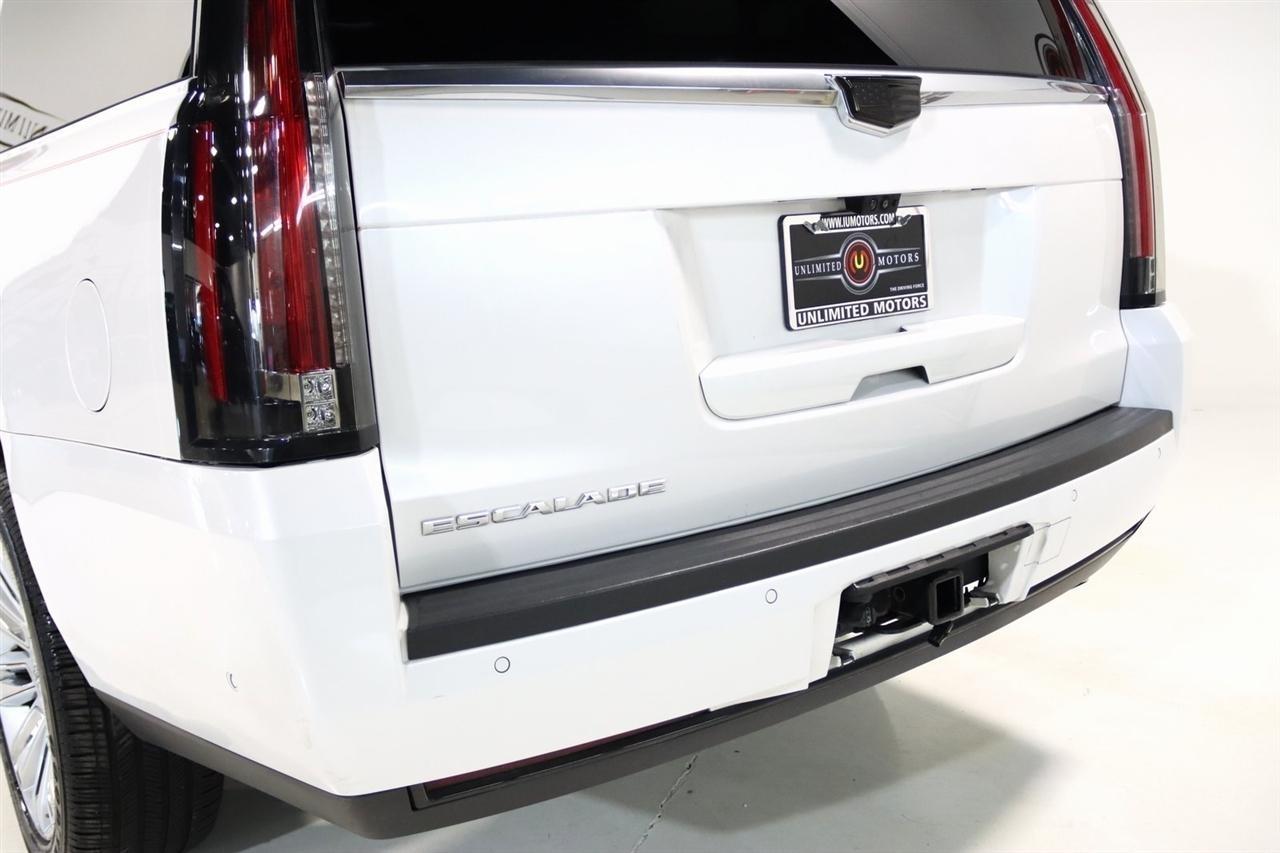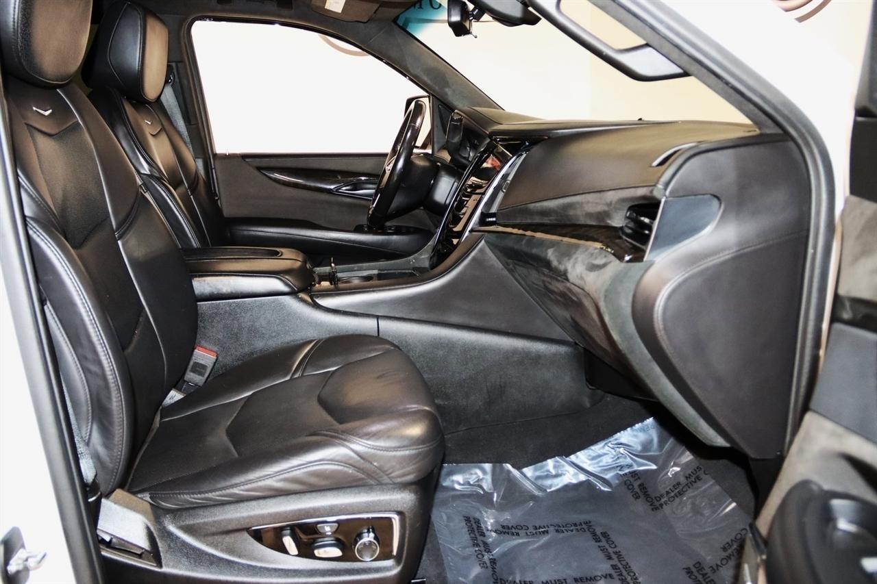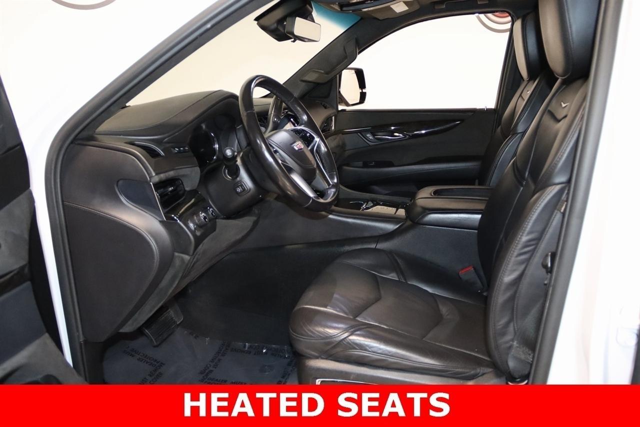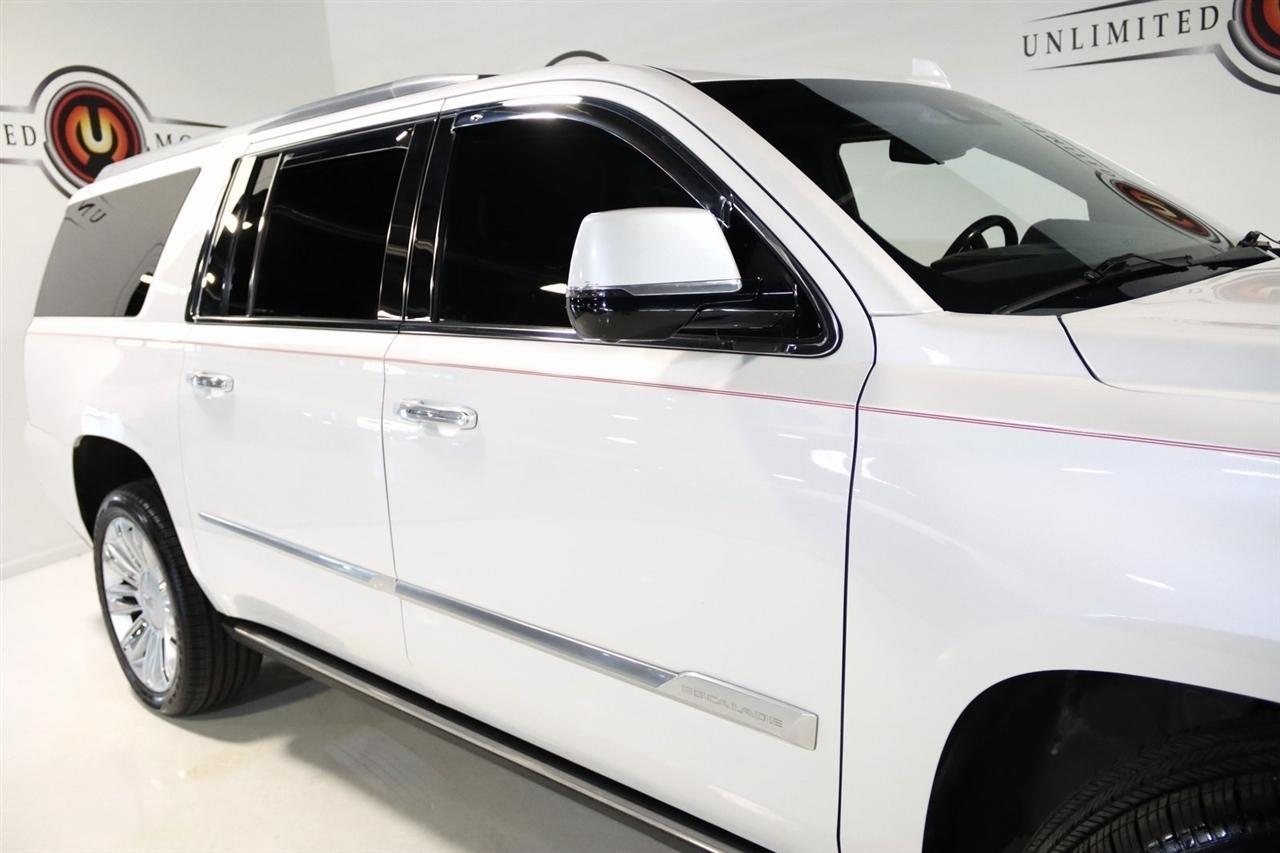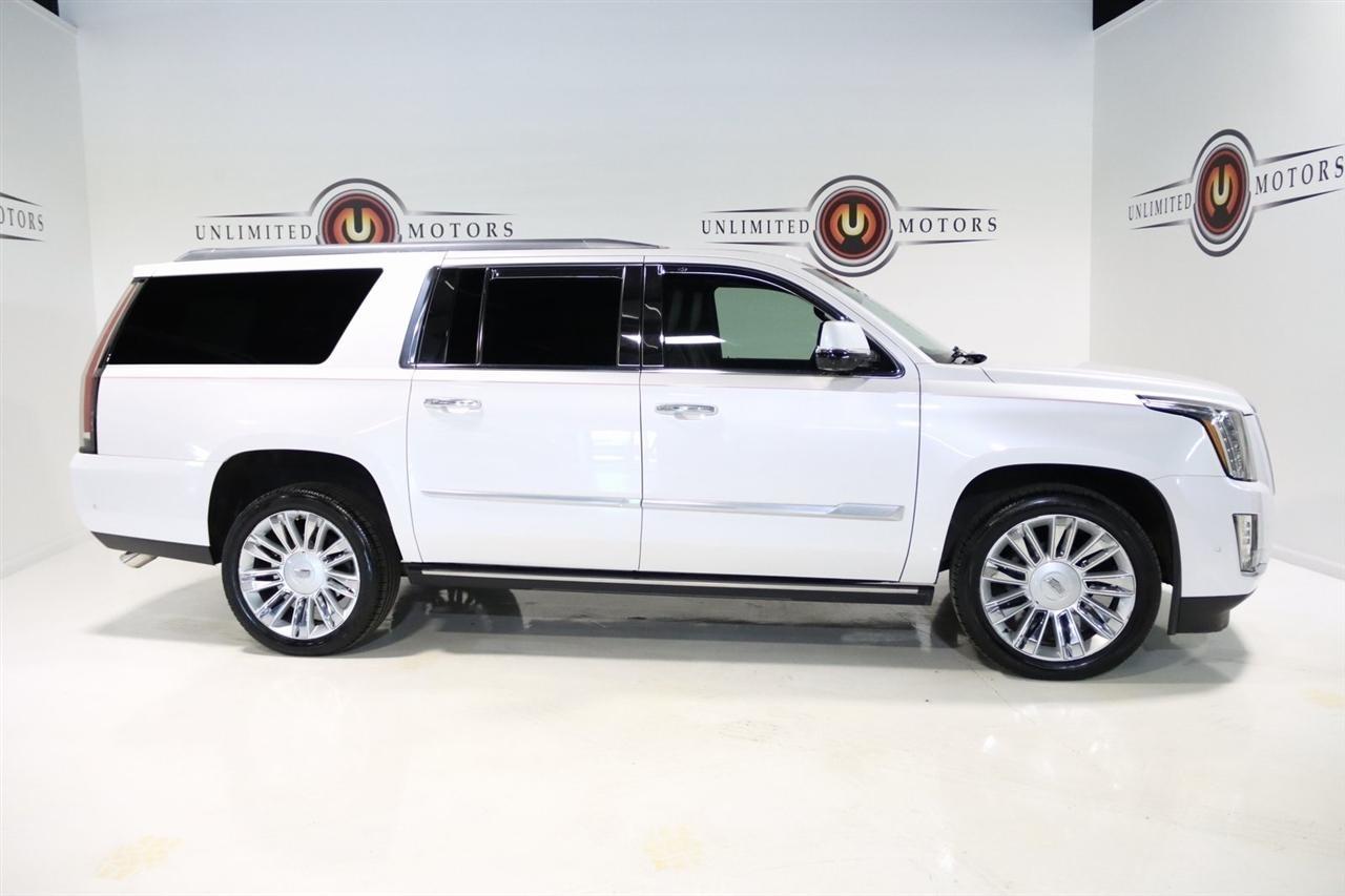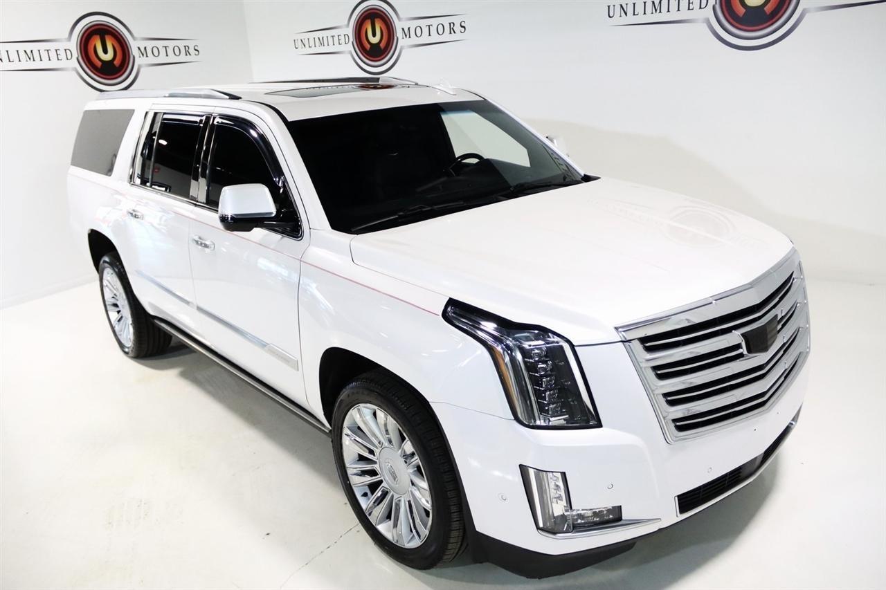 Navigation, Bluetooth, Back Up Camera, Entertainment, Sun/Moon Roof, 3rd Row, Towing, Heated Seats, Touch Screen, 16 Speakers, 3.23 Axle Ratio, 3rd Row DVD Screen, 3rd row seats: split-bench, 4-Wheel Disc Brakes, A/V remote, ABS brakes, Adaptive Full-Speed Range Cruise Control, Adaptive suspension, Adjustable pedals, Air Conditioning, All-Weather Floor Liner (LPO), Alloy wheels, AM/FM radio: SiriusXM, Apple CarPlay/Android Auto, Auto High-beam Headlights, Auto tilt-away steering wheel, Auto-dimming door mirrors, Auto-leveling suspension, Automatic Safety Belt Tightening, Automatic temperature control, Bodyside moldings, Bose Centerpoint 16 Speaker Surround Sound System, Brake assist, Bumpers: body-color, CD player, Compass, Cooled Console w/Covered Storage, Delay-off headlights, Digital Headphones (LPO), Driver Assist Package, Driver door bin, Driver vanity mirror, Dual DVD Screens, Dual front impact airbags, Dual front side impact airbags, DVD-Audio, Electronic Powered Parking Brake, Electronic Stability Control, Emergency communication system: OnStar and Cadillac connected services capable, Exterior Parking Camera Rear, Forward Collision Alert, Forward/Reverse Automatic Braking, Front anti-roll bar, Front Bucket Seats, Front Center Armrest w/Storage, Front Cornering Lamps, Front dual zone A/C, Front reading lights, Front wheel independent suspension, Fully automatic headlights, Garage door transmitter, Genuine wood dashboard insert, HD Radio, Headphones, Heads-Up Display, Heated & Cooled Front Seats, Heated door mirrors, Heated front seats, Heated rear seats, Heated steering wheel, Highway Safety Kit, Illuminated Door Handles, Illuminated entry, Inclination Sensor, IntelliBeam Automatic High Beam On/Off, Lane Change Alert w/Side Blind Zone Alert, Lane Keep Assist w/Lane Departure Warning, Leather Shift Knob, Leather steering wheel, Leather Wrapped IP/Console/Door, Low tire pressure warning, Magnetic Ride Control Suspension, Memory seat, Microfiber Sueded Headliner, Navigation System, Occupant sensing airbag, Outside temperature display, Overhead airbag, Overhead console, Panic alarm, Passenger door bin, Passenger vanity mirror, Pedal memory, Platinum Package, Platinum Sill Plates, Polished Exhaust Tip, Power Configurable Second Row Bucket Seats, Power door mirrors, Power driver seat, Power Liftgate, Power moonroof, Power passenger seat, Power steering, Power Tilt-Sliding Sunroof w/Express-Open/Close, Power windows, Preferred Equipment Group 1SD, Premium Floor Mats, Radio data system, Radio: AM/FM Cadillac User Experience w/Nav, Rain sensing wipers, Rear air conditioning, Rear anti-roll bar, Rear audio controls, Rear Camera Mirror, Rear Camera Washer, Rear Cross-Traffic Alert, Rear reading lights, Rear Seat Entertainment System, Rear window defroster, Rear window wiper, Reconfigurable 4-Color Head-Up Display, Remote keyless entry, Roof rack: rails only, Safety Alert Seat, Security system, Semi-Aniline Leather Seating Surfaces, SiriusXM NavTraffic, SiriusXM Satellite Radio, Speed control, Split folding rear seat, Spoiler, Steering wheel memory, Steering wheel mounted audio controls, Sumi Black Tamo Ash Unique Exotic Wood, Tachometer, Telescoping steering wheel, Theft-Deterrent Alarm System, Theft-Deterrent Package, Tilt steering wheel, Traction control, Trip computer, Turn signal indicator mirrors, Unique Grille Design, VAC Power 17 Disc Brakes w/Adaptive Cruise Control, Variably intermittent wipers, Vehicle Interior Movement Sensor, Ventilated front seats, Wheels: 22 x 9 Premium Painted w/Chrome Inserts. Odometer is 9506 miles below market average! Priced below KBB Fair Purchase Price!2018 Crystal White Tricoat Cadillac 4D Sport Utility Escalade ESV Platinum Edition 4WD 10-Speed Automatic with Overdrive 6.2L Variable Valve Timing V8 SIDIVisit our website www.iumotors.com to view 100s of newer vehicles, more pictures and info, or to apply for financing. Rates are incredibly low for approved credit. We of