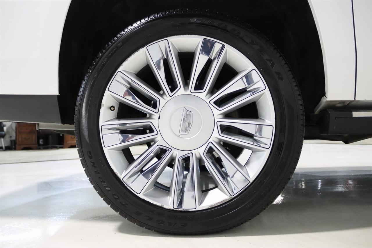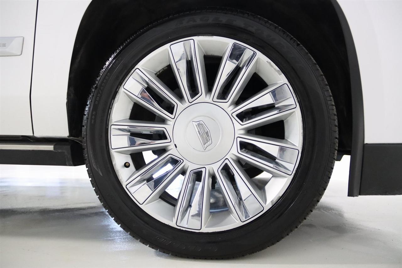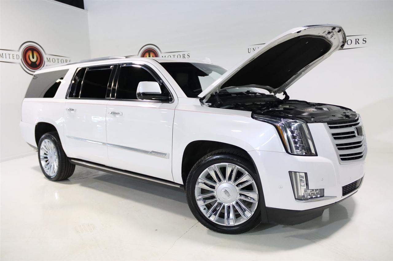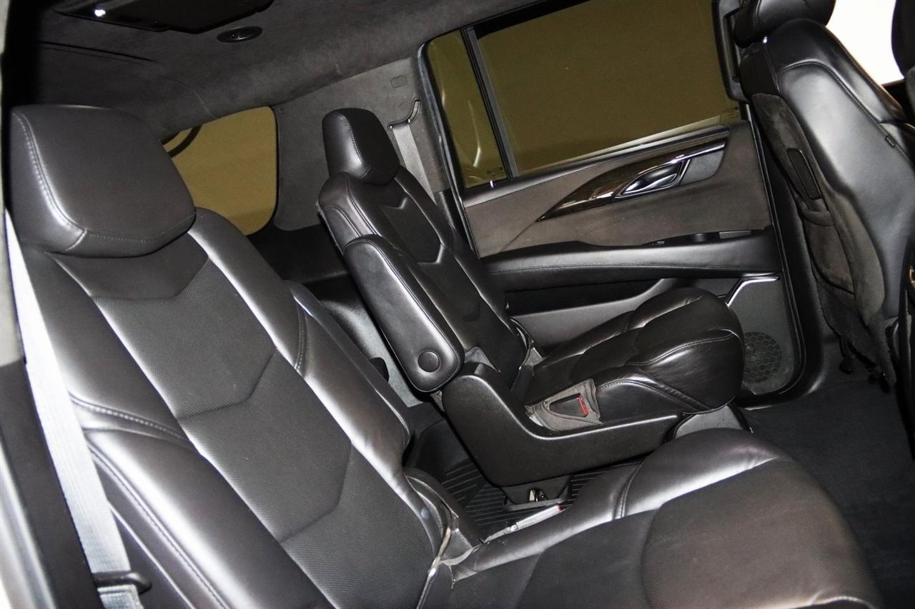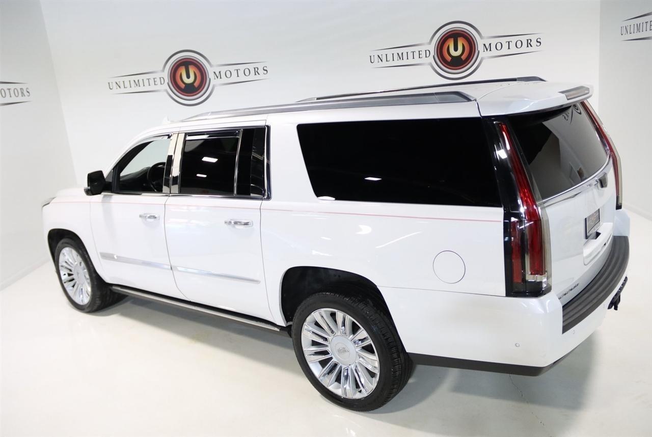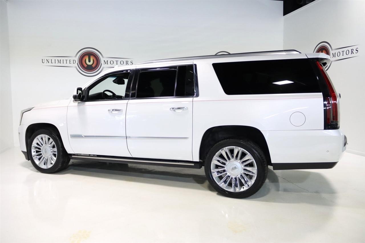 Navigation, Bluetooth, Back Up Camera, Entertainment, Sun/Moon Roof, 3rd Row, Towing, Heated Seats, Touch Screen, 16 Speakers, 3.23 Axle Ratio, 3rd Row DVD Screen, 3rd row seats: split-bench, 4-Wheel Disc Brakes, A/V remote, ABS brakes, Adaptive Full-Speed Range Cruise Control, Adaptive suspension, Adjustable pedals, Air Conditioning, All-Weather Floor Liner (LPO), Alloy wheels, AM/FM radio: SiriusXM, Apple CarPlay/Android Auto, Auto High-beam Headlights, Auto tilt-away steering wheel, Auto-dimming door mirrors, Auto-leveling suspension, Automatic Safety Belt Tightening, Automatic temperature control, Bodyside moldings, Bose Centerpoint 16 Speaker Surround Sound System, Brake assist, Bumpers: body-color, CD player, Compass, Cooled Console w/Covered Storage, Delay-off headlights, Digital Headphones (LPO), Driver Assist Package, Driver door bin, Driver vanity mirror, Dual DVD Screens, Dual front impact airbags, Dual front side impact airbags, DVD-Audio, Electronic Powered Parking Brake, Electronic Stability Control, Emergency communication system: OnStar and Cadillac connected services capable, Exterior Parking Camera Rear, Forward Collision Alert, Forward/Reverse Automatic Braking, Front anti-roll bar, Front Bucket Seats, Front Center Armrest w/Storage, Front Cornering Lamps, Front dual zone A/C, Front reading lights, Front wheel independent suspension, Fully automatic headlights, Garage door transmitter, Genuine wood dashboard insert, HD Radio, Headphones, Heads-Up Display, Heated & Cooled Front Seats, Heated door mirrors, Heated front seats, Heated rear seats, Heated steering wheel, Highway Safety Kit, Illuminated Door Handles, Illuminated entry, Inclination Sensor, IntelliBeam Automatic High Beam On/Off, Lane Change Alert w/Side Blind Zone Alert, Lane Keep Assist w/Lane Departure Warning, Leather Shift Knob, Leather steering wheel, Leather Wrapped IP/Console/Door, Low tire pressure warning, Magnetic Ride Control Suspension, Memory seat, Microfiber Sueded Headliner, Navigation System, Occupant sensing airbag, Outside temperature display, Overhead airbag, Overhead console, Panic alarm, Passenger door bin, Passenger vanity mirror, Pedal memory, Platinum Package, Platinum Sill Plates, Polished Exhaust Tip, Power Configurable Second Row Bucket Seats, Power door mirrors, Power driver seat, Power Liftgate, Power moonroof, Power passenger seat, Power steering, Power Tilt-Sliding Sunroof w/Express-Open/Close, Power windows, Preferred Equipment Group 1SD, Premium Floor Mats, Radio data system, Radio: AM/FM Cadillac User Experience w/Nav, Rain sensing wipers, Rear air conditioning, Rear anti-roll bar, Rear audio controls, Rear Camera Mirror, Rear Camera Washer, Rear Cross-Traffic Alert, Rear reading lights, Rear Seat Entertainment System, Rear window defroster, Rear window wiper, Reconfigurable 4-Color Head-Up Display, Remote keyless entry, Roof rack: rails only, Safety Alert Seat, Security system, Semi-Aniline Leather Seating Surfaces, SiriusXM NavTraffic, SiriusXM Satellite Radio, Speed control, Split folding rear seat, Spoiler, Steering wheel memory, Steering wheel mounted audio controls, Sumi Black Tamo Ash Unique Exotic Wood, Tachometer, Telescoping steering wheel, Theft-Deterrent Alarm System, Theft-Deterrent Package, Tilt steering wheel, Traction control, Trip computer, Turn signal indicator mirrors, Unique Grille Design, VAC Power 17 Disc Brakes w/Adaptive Cruise Control, Variably intermittent wipers, Vehicle Interior Movement Sensor, Ventilated front seats, Wheels: 22 x 9 Premium Painted w/Chrome Inserts. Odometer is 9506 miles below market average! Priced below KBB Fair Purchase Price!2018 Crystal White Tricoat Cadillac 4D Sport Utility Escalade ESV Platinum Edition 4WD 10-Speed Automatic with Overdrive 6.2L Variable Valve Timing V8 SIDIVisit our website www.iumotors.com to view 100s of newer vehicles, more pictures and info, or to apply for financing. Rates are incredibly low for approved credit. We of