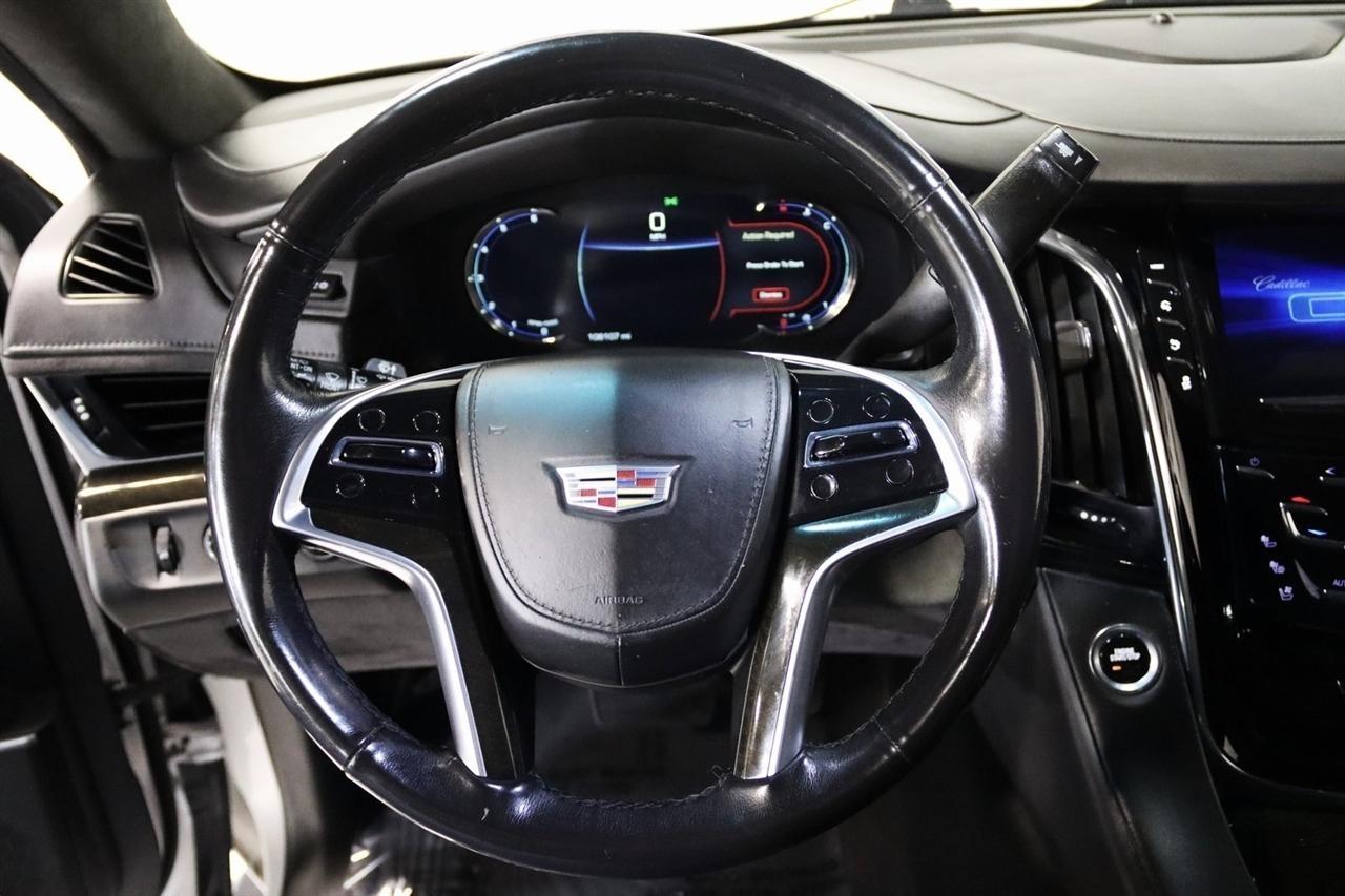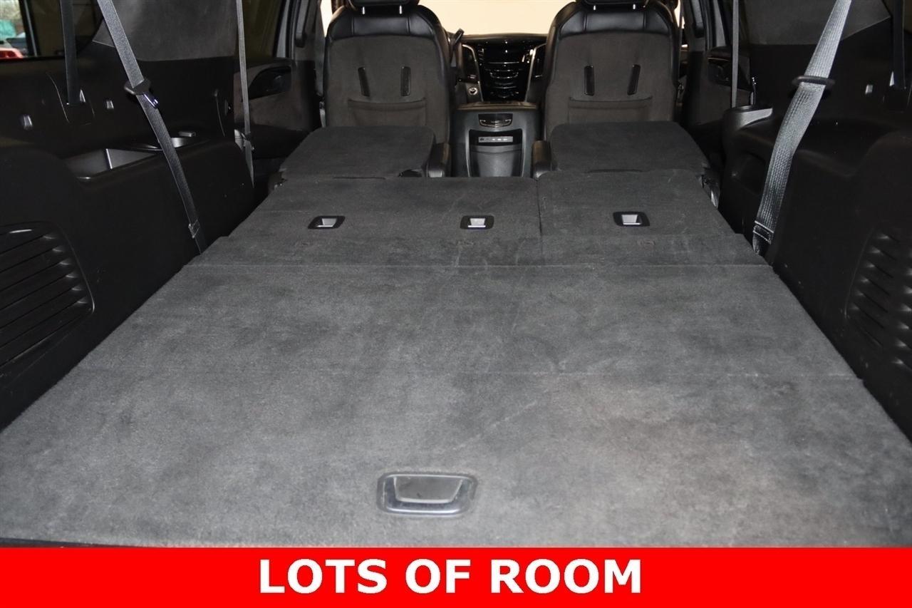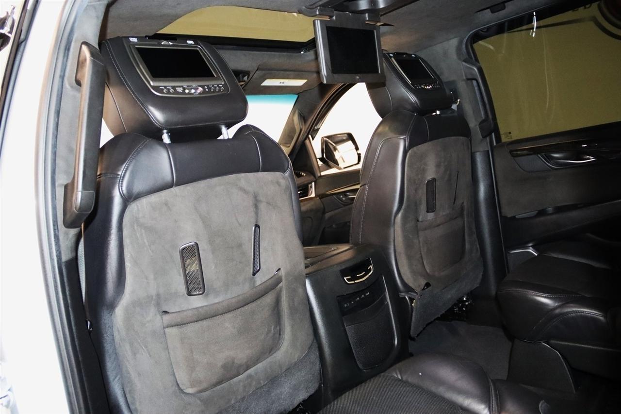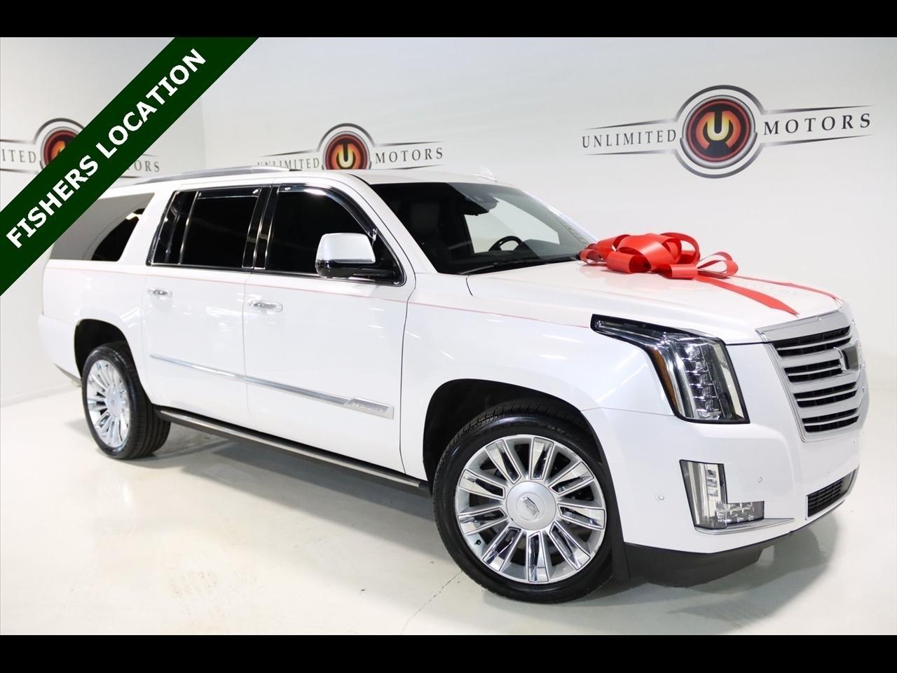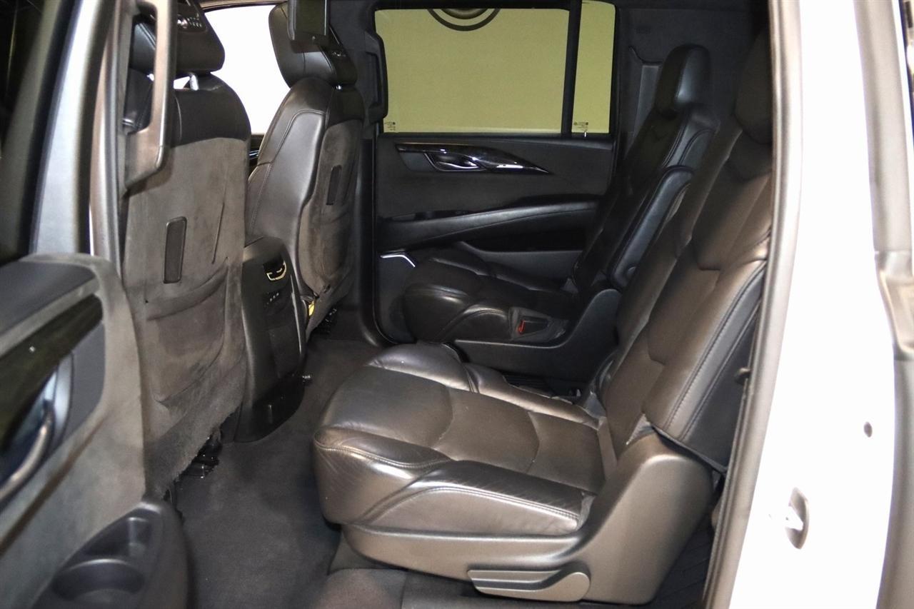 Navigation, Bluetooth, Back Up Camera, Entertainment, Sun/Moon Roof, 3rd Row, Towing, Heated Seats, Touch Screen, 16 Speakers, 3.23 Axle Ratio, 3rd Row DVD Screen, 3rd row seats: split-bench, 4-Wheel Disc Brakes, A/V remote, ABS brakes, Adaptive Full-Speed Range Cruise Control, Adaptive suspension, Adjustable pedals, Air Conditioning, All-Weather Floor Liner (LPO), Alloy wheels, AM/FM radio: SiriusXM, Apple CarPlay/Android Auto, Auto High-beam Headlights, Auto tilt-away steering wheel, Auto-dimming door mirrors, Auto-leveling suspension, Automatic Safety Belt Tightening, Automatic temperature control, Bodyside moldings, Bose Centerpoint 16 Speaker Surround Sound System, Brake assist, Bumpers: body-color, CD player, Compass, Cooled Console w/Covered Storage, Delay-off headlights, Digital Headphones (LPO), Driver Assist Package, Driver door bin, Driver vanity mirror, Dual DVD Screens, Dual front impact airbags, Dual front side impact airbags, DVD-Audio, Electronic Powered Parking Brake, Electronic Stability Control, Emergency communication system: OnStar and Cadillac connected services capable, Exterior Parking Camera Rear, Forward Collision Alert, Forward/Reverse Automatic Braking, Front anti-roll bar, Front Bucket Seats, Front Center Armrest w/Storage, Front Cornering Lamps, Front dual zone A/C, Front reading lights, Front wheel independent suspension, Fully automatic headlights, Garage door transmitter, Genuine wood dashboard insert, HD Radio, Headphones, Heads-Up Display, Heated & Cooled Front Seats, Heated door mirrors, Heated front seats, Heated rear seats, Heated steering wheel, Highway Safety Kit, Illuminated Door Handles, Illuminated entry, Inclination Sensor, IntelliBeam Automatic High Beam On/Off, Lane Change Alert w/Side Blind Zone Alert, Lane Keep Assist w/Lane Departure Warning, Leather Shift Knob, Leather steering wheel, Leather Wrapped IP/Console/Door, Low tire pressure warning, Magnetic Ride Control Suspension, Memory seat, Microfiber Sueded Headliner, Navigation System, Occupant sensing airbag, Outside temperature display, Overhead airbag, Overhead console, Panic alarm, Passenger door bin, Passenger vanity mirror, Pedal memory, Platinum Package, Platinum Sill Plates, Polished Exhaust Tip, Power Configurable Second Row Bucket Seats, Power door mirrors, Power driver seat, Power Liftgate, Power moonroof, Power passenger seat, Power steering, Power Tilt-Sliding Sunroof w/Express-Open/Close, Power windows, Preferred Equipment Group 1SD, Premium Floor Mats, Radio data system, Radio: AM/FM Cadillac User Experience w/Nav, Rain sensing wipers, Rear air conditioning, Rear anti-roll bar, Rear audio controls, Rear Camera Mirror, Rear Camera Washer, Rear Cross-Traffic Alert, Rear reading lights, Rear Seat Entertainment System, Rear window defroster, Rear window wiper, Reconfigurable 4-Color Head-Up Display, Remote keyless entry, Roof rack: rails only, Safety Alert Seat, Security system, Semi-Aniline Leather Seating Surfaces, SiriusXM NavTraffic, SiriusXM Satellite Radio, Speed control, Split folding rear seat, Spoiler, Steering wheel memory, Steering wheel mounted audio controls, Sumi Black Tamo Ash Unique Exotic Wood, Tachometer, Telescoping steering wheel, Theft-Deterrent Alarm System, Theft-Deterrent Package, Tilt steering wheel, Traction control, Trip computer, Turn signal indicator mirrors, Unique Grille Design, VAC Power 17 Disc Brakes w/Adaptive Cruise Control, Variably intermittent wipers, Vehicle Interior Movement Sensor, Ventilated front seats, Wheels: 22 x 9 Premium Painted w/Chrome Inserts. Odometer is 9506 miles below market average! Priced below KBB Fair Purchase Price!2018 Crystal White Tricoat Cadillac 4D Sport Utility Escalade ESV Platinum Edition 4WD 10-Speed Automatic with Overdrive 6.2L Variable Valve Timing V8 SIDIVisit our website www.iumotors.com to view 100s of newer vehicles, more pictures and info, or to apply for financing. Rates are incredibly low for approved credit. We of