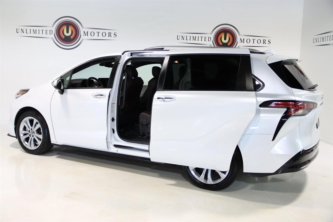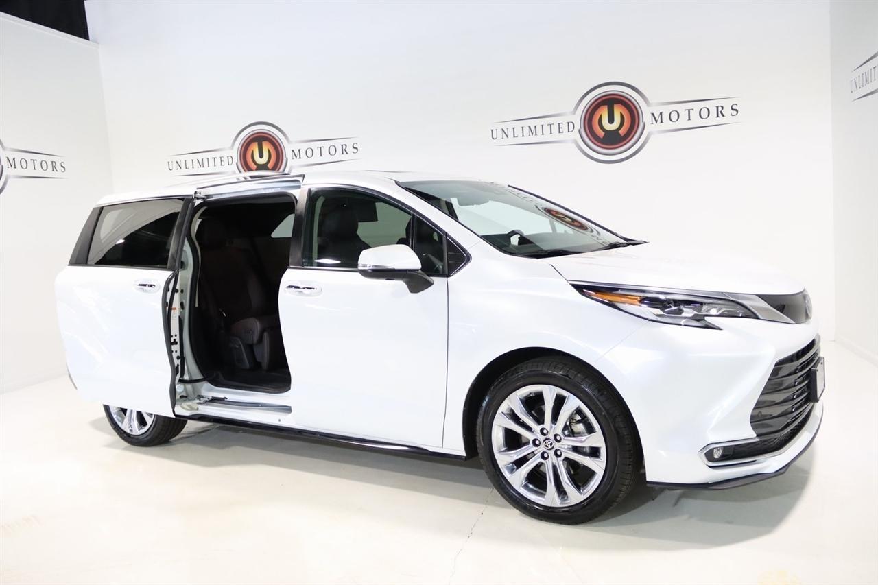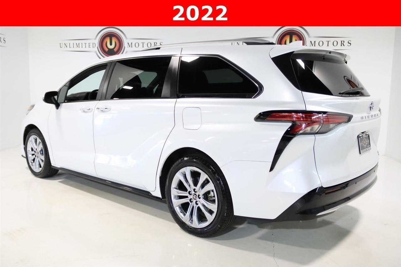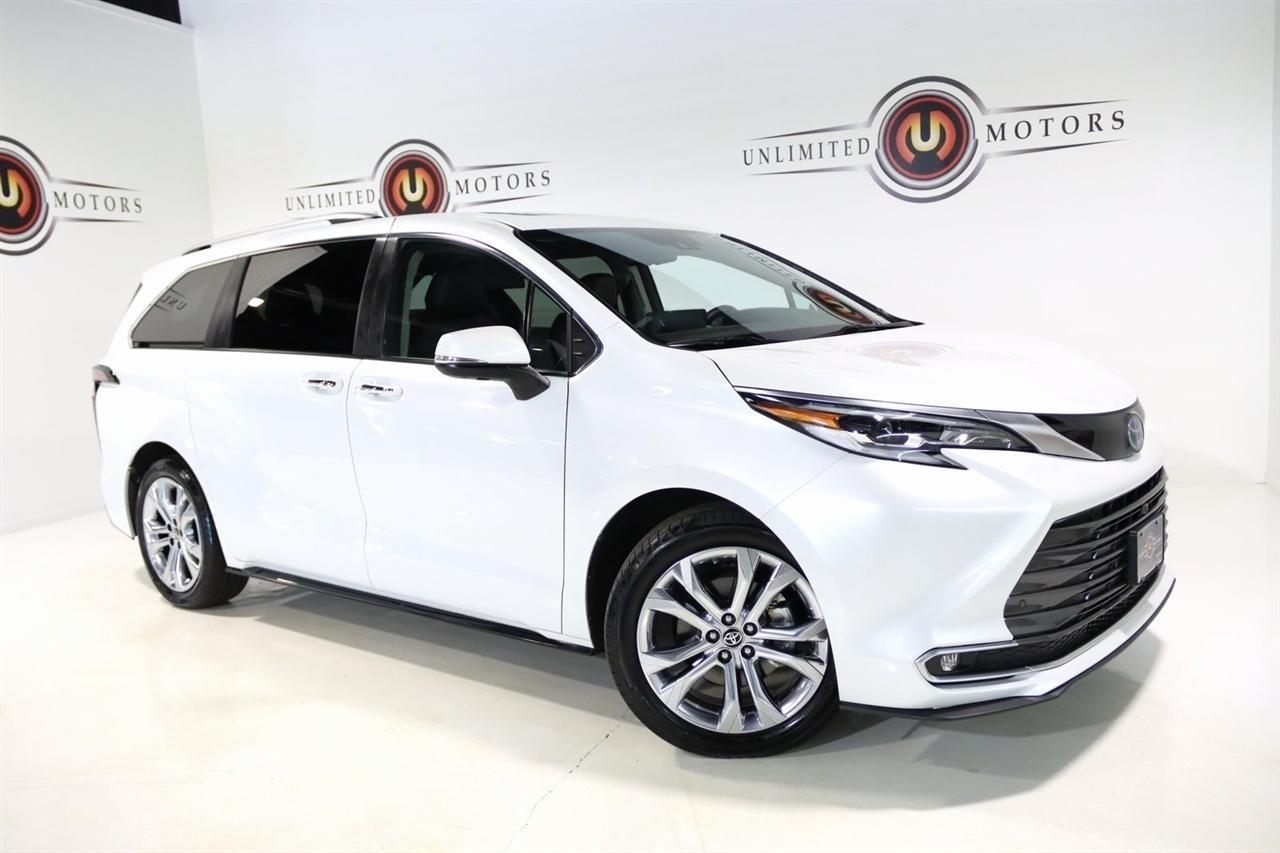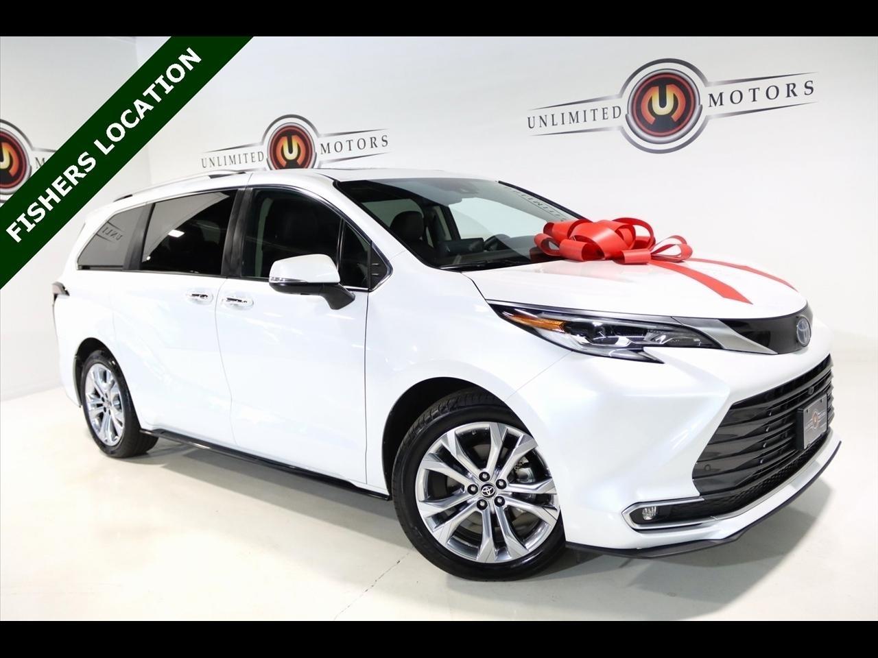 Navigation, Bluetooth, Back Up Camera, Entertainment, 3rd Row, Heated Seats, Touch Screen, 12 Speakers, 3-Spoke Leather-Wrapped Heated Steering Wheel, 3rd row seats: split-bench, 4-Wheel Disc Brakes, ABS brakes, Air Conditioning, Alloy wheels, AM/FM radio: SiriusXM, Apple CarPlay/Android Auto, Auto High-beam Headlights, Auto-dimming door mirrors, Auto-dimming Rear-View mirror, Automatic temperature control, Axle Ratio: TBA, Brake assist, Bumpers: body-color, Chrome wheels, Compass, Delay-off headlights, Door auto-latch, Driver door bin, Driver vanity mirror, Driver's Seat Mounted Armrest, Dual front impact airbags, Dual front side impact airbags, Electronic Stability Control, Emergency communication system: Safety Connect with 3-year trial, Four wheel independent suspension, Front anti-roll bar, Front Bucket Seats, Front dual zone A/C, Front fog lights, Front Heated/Ventilated Bucket Seats, Front reading lights, Fully automatic headlights, Garage door transmitter: HomeLink, Head-Up Display, Heads-Up Display, Heated door mirrors, Heated front seats, Heated rear seats, Heated steering wheel, Illuminated entry, Knee airbag, Lane Departure Warning System, Leather Seat Material, Leather Shift Knob, Leather steering wheel, Low tire pressure warning, Memory seat, Navigation System, Occupant sensing airbag, Outside temperature display, Overhead airbag, Overhead console, Panic alarm, Parking Camera, Passenger door bin, Passenger seat mounted armrest, Passenger vanity mirror, Power door mirrors, Power driver seat, Power Liftgate, Power moonroof, Power passenger seat, Power steering, Power windows, Radio data system, Radio: Premium JBL Audio w/Navigation, Rain sensing wipers, Rear air conditioning, Rear anti-roll bar, Rear dual zone A/C, Rear reading lights, Rear side impact airbag, Rear window defroster, Rear window wiper, Reclining 3rd row seat, Remote keyless entry, Roof rack: rails only, Second Row Heated Seats, Speed control, Speed-sensing steering, Split folding rear seat, Spoiler, Steering wheel memory, Steering wheel mounted audio controls, Tachometer, Telescoping steering wheel, Tilt steering wheel, Traction control, Trip computer, Turn signal indicator mirrors, Variably intermittent wipers, Ventilated front seats, Wheels: 20 Metallic Alloy, Wide Angle Backup Monitor. CARFAX One-Owner. Clean CARFAX. 36/36 City/Highway MPG2022 Wind Chill Pearl Toyota 4D Passenger Van Sienna Platinum 7 Passenger FWD CVT 2.5L I4Visit our website www.iumotors.com to view 100s of newer vehicles, more pictures and info, or to apply for financing. Rates are incredibly low for approved credit. We offer extended warranties, protection packages, and insurance. We assure you the best experience at any of our 4 locations and unbeatable prices and quality. At Unlimited Motors we believe in MARKET VALUE PRICING. We use real-time Internet price comparisons to constantly adjust prices to provide ALL BUYERS The BEST PRICE possible. We do not mark them up, to mark them down! Our entire team is committed to helping you buy a car the way we would want to buy a car! We utilize state-of-the-art technology to constantly monitor pricing trends to offer our shoppers the best competitive pricing, value, and experience. We sell and service all makes and models of Pre-owned / Used Vehicles Used Cars, Used Trucks, Used Sport Utility, Lamborghini, Ferrari, Bentley, Rolls Royce, McLaren, Maserati, Ford, Chevrolet/Chevy, Honda, Toyota, Porsche, Land Rover, Jaguar, INFINITI, Audi, Nissan, Mazda, Hyundai, Chrysler, Jeep, Dodge, Ram, SRT, Mitsubishi, Lexus, Kia, Volkswagen, Mini, BMW, Mercedes, Fiat, Volvo, GMC, Cadillac, Lincoln as well as other brands. Proudly serving these areas of Indianapolis, Fishers, Carmel, Noblesville, Greenwood, Avon, Plainfield, Zionsville, & Brownsburg, Indiana, Midwest. We also serve the entire nation with our seamless and easy online purchasing process, and offer shipping nationwide.Advertised prices DO NOT includ